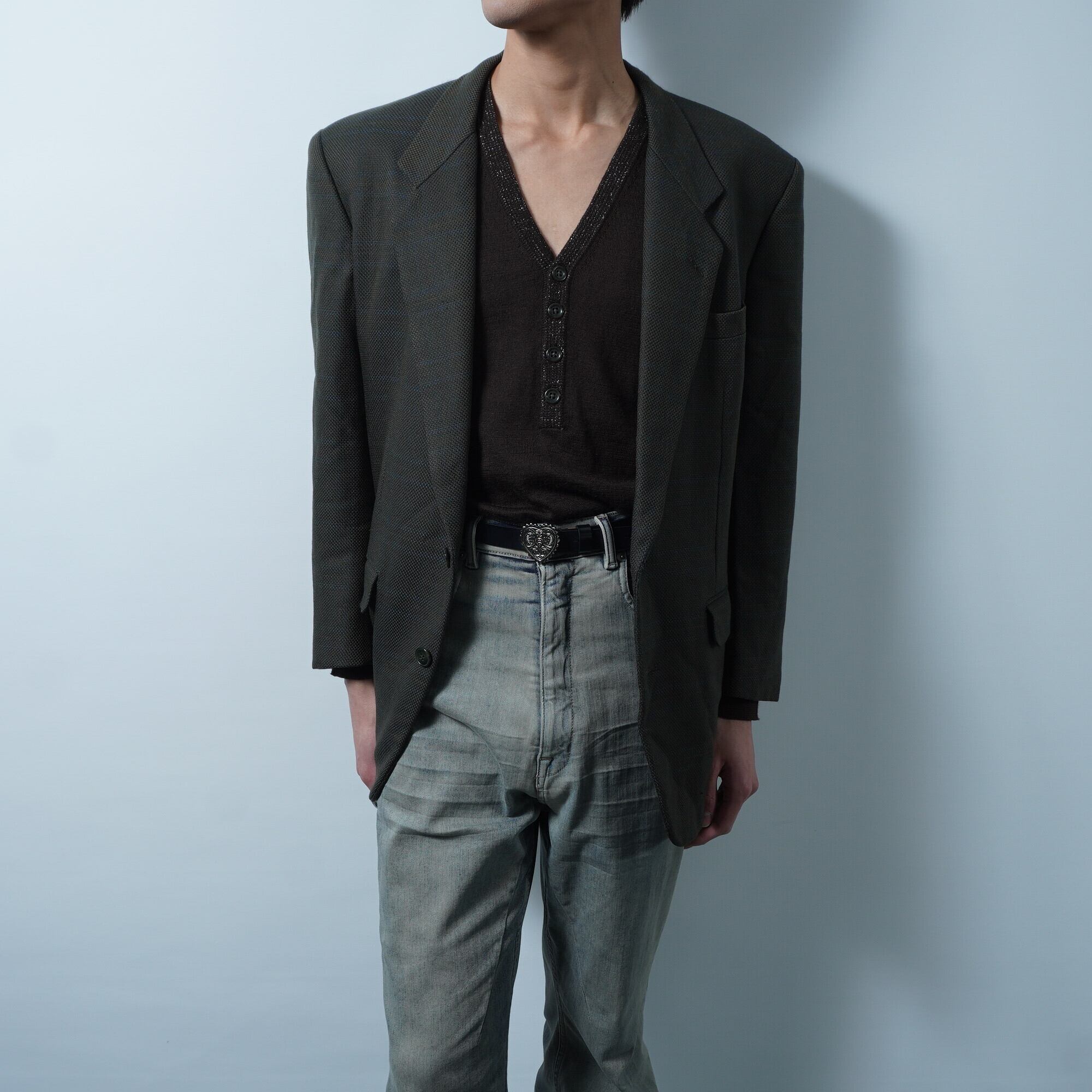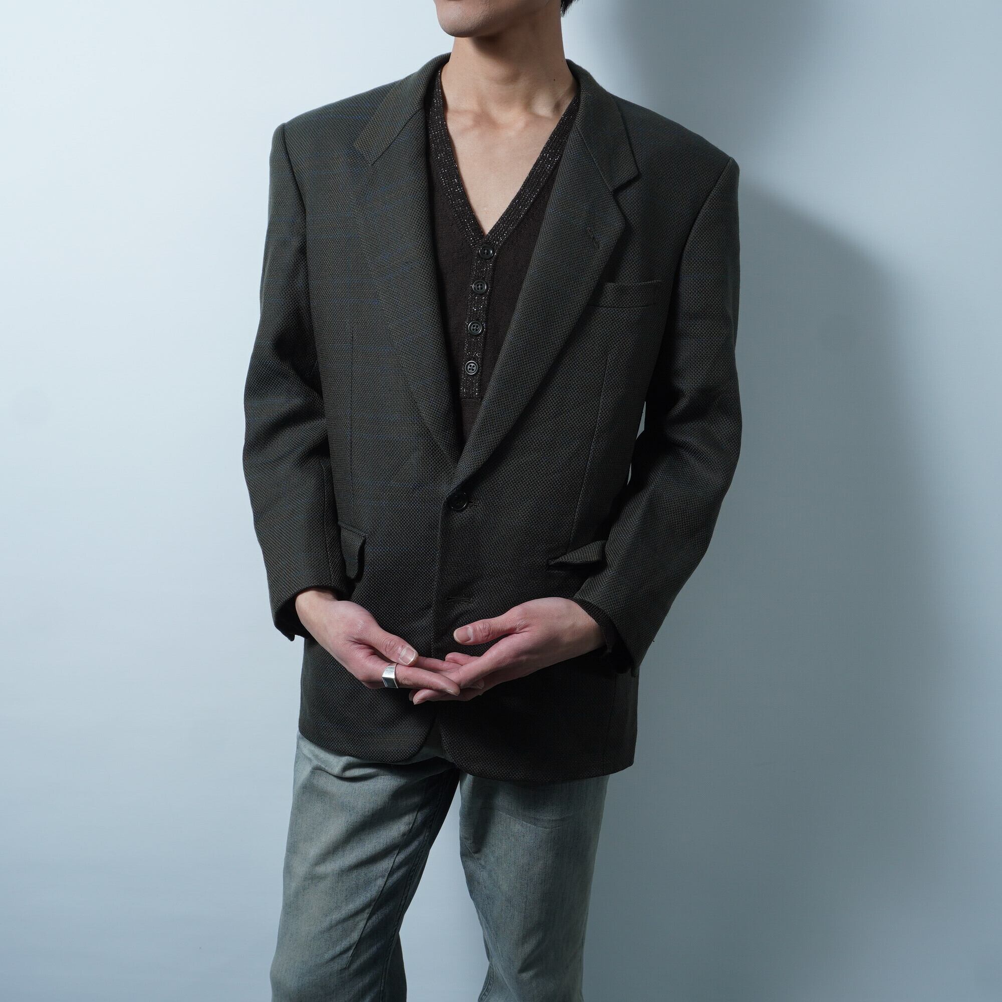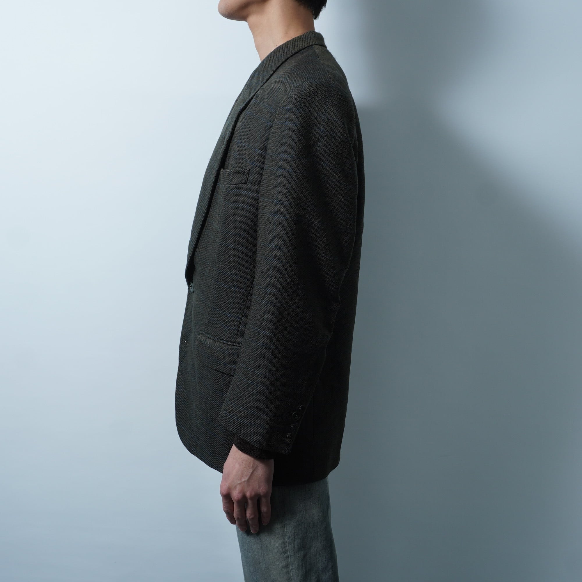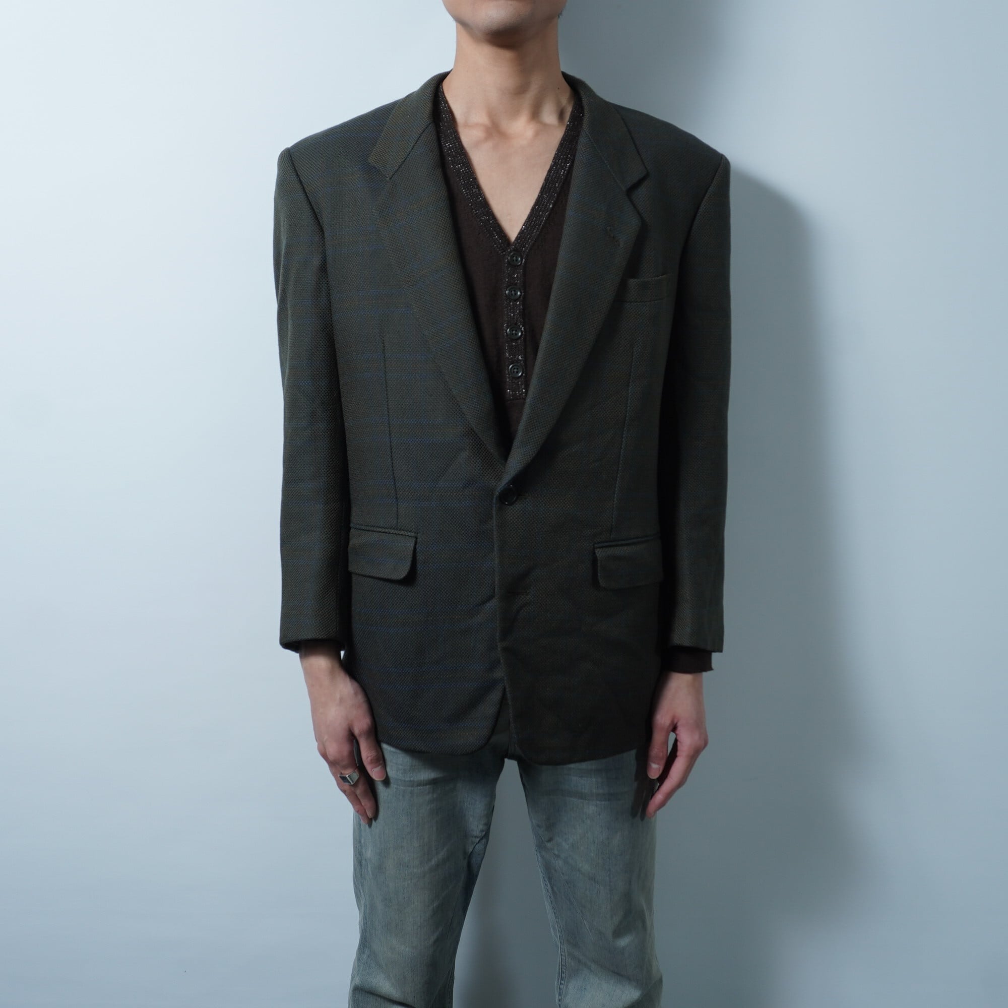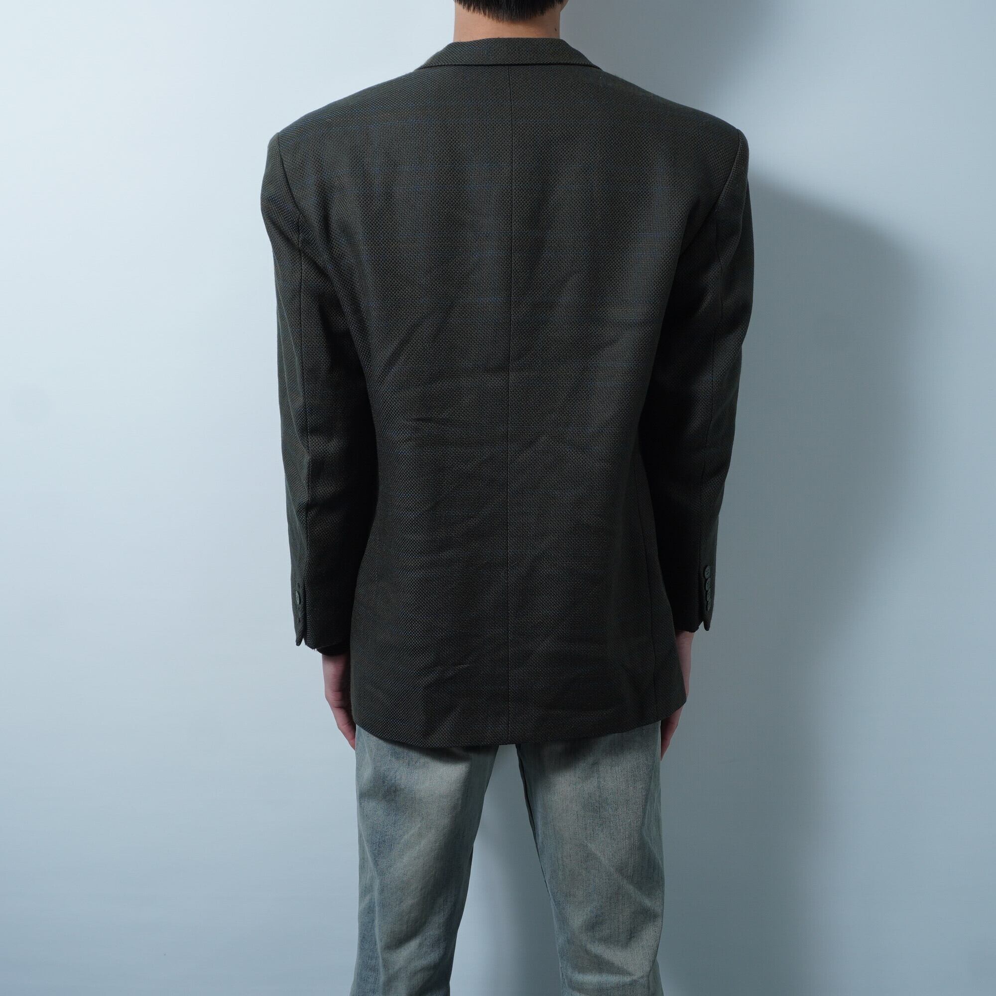 【Christian Dior】クリスチャンディオール 総裏2Bシングルシャドーチェックセットアップスーツジャケット khaki