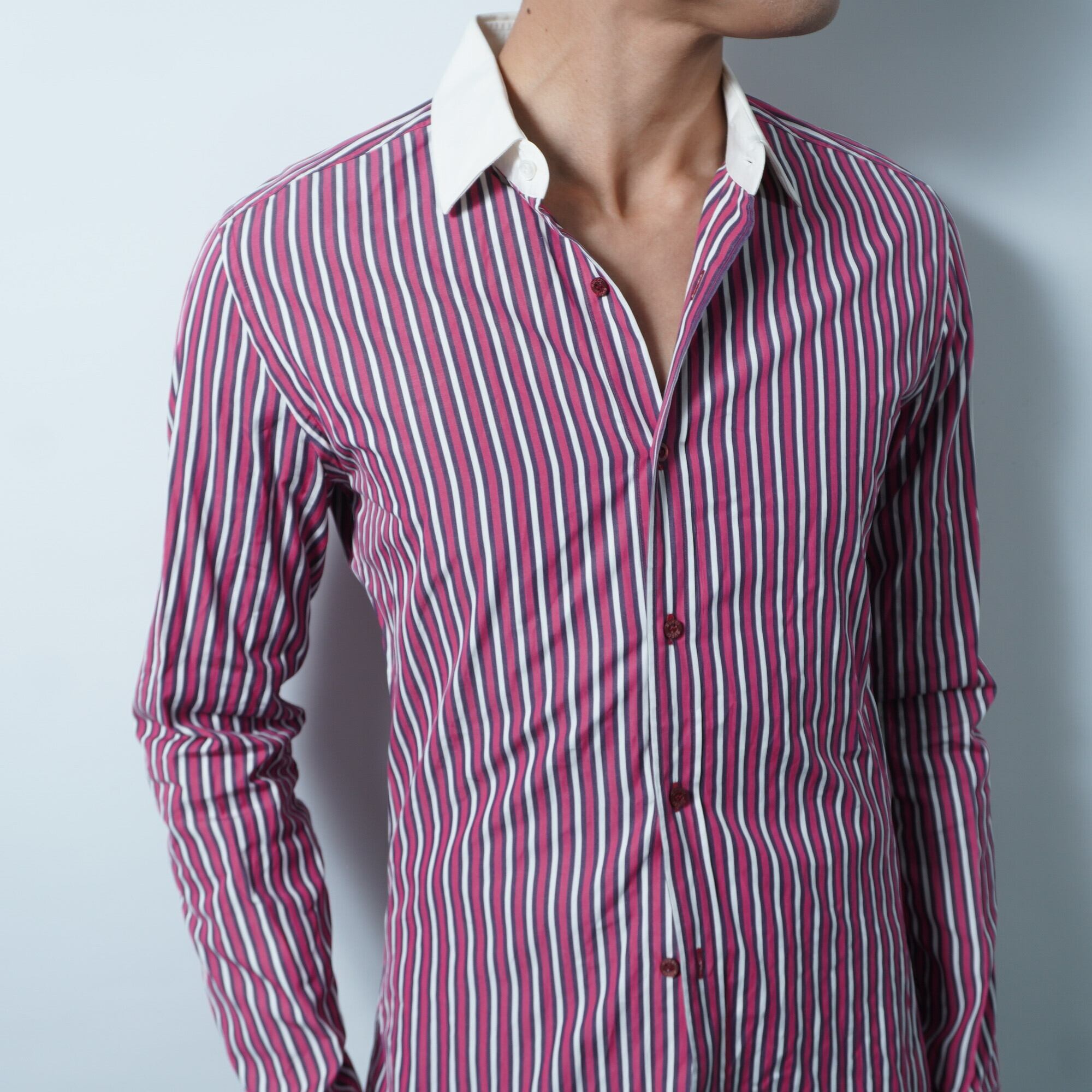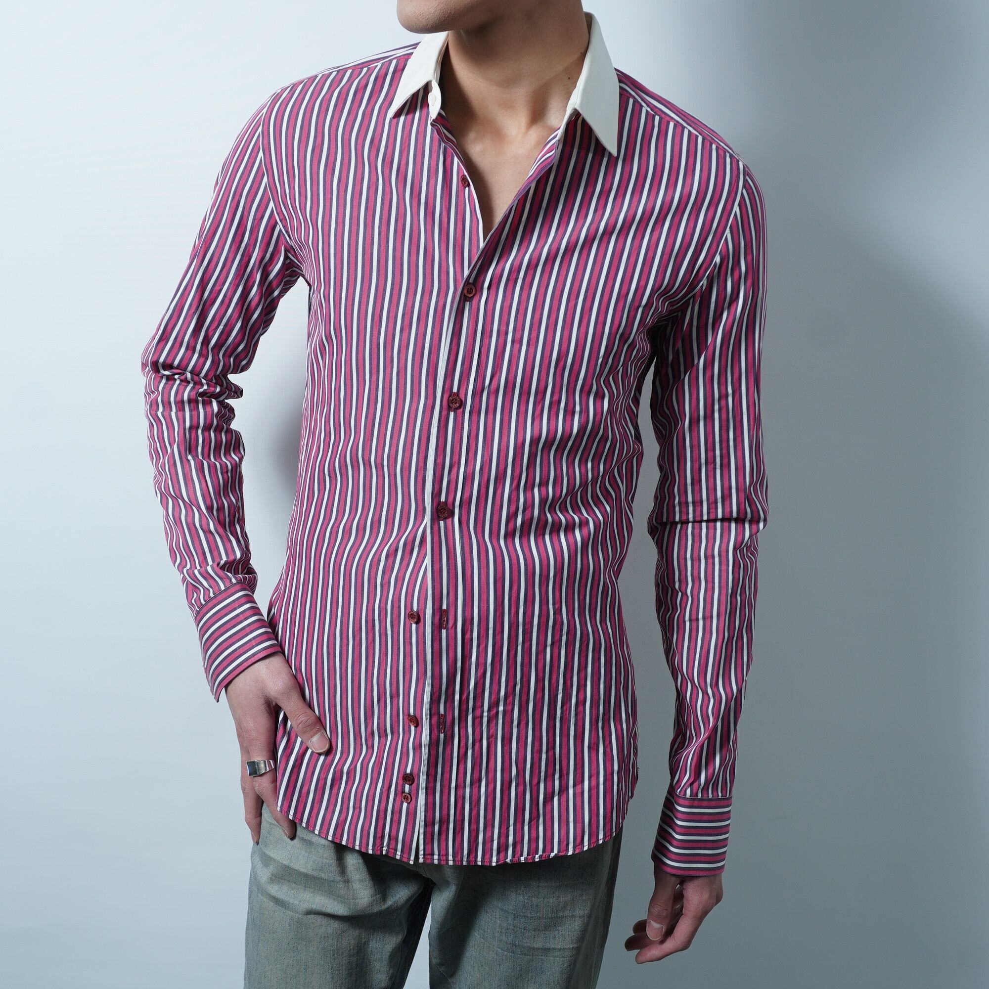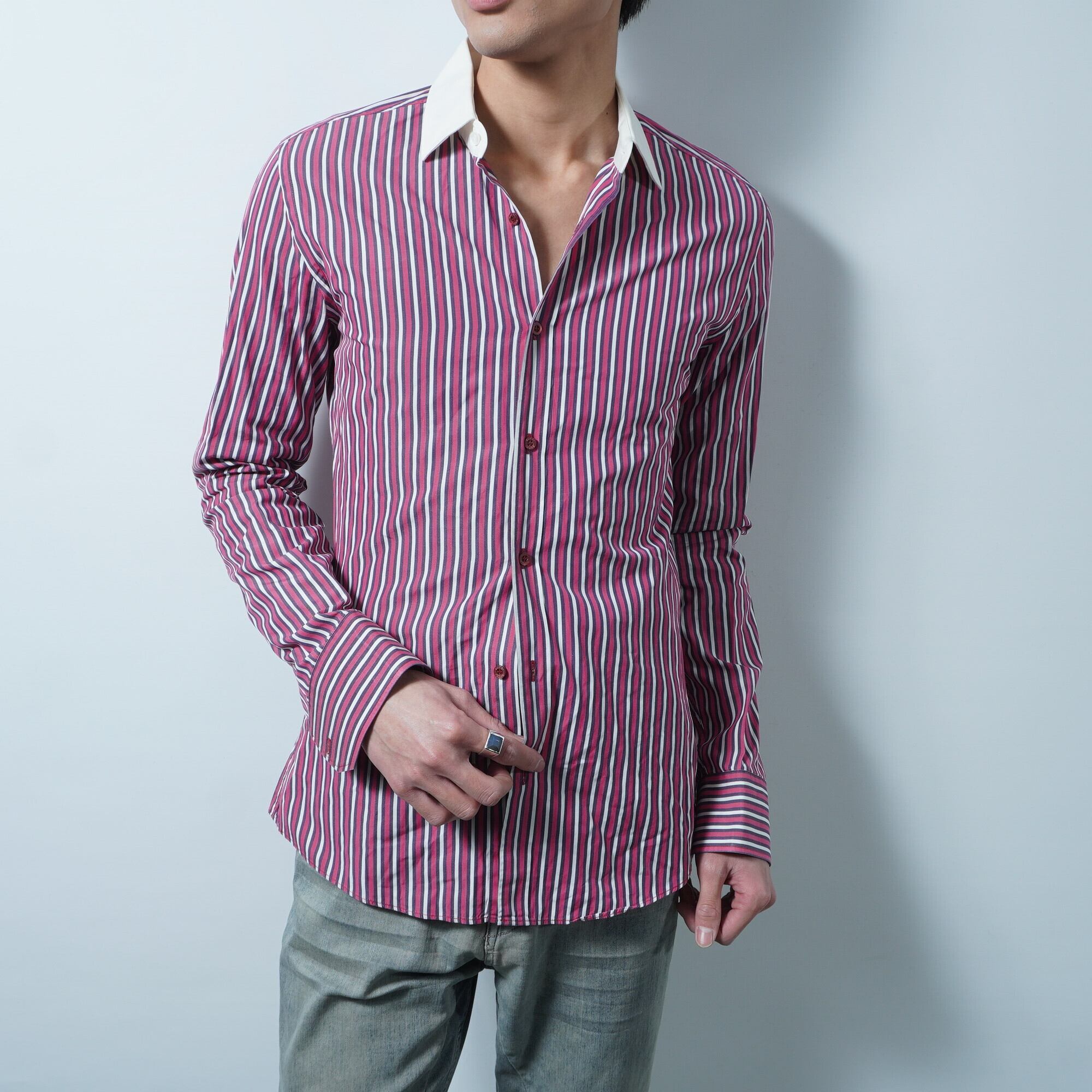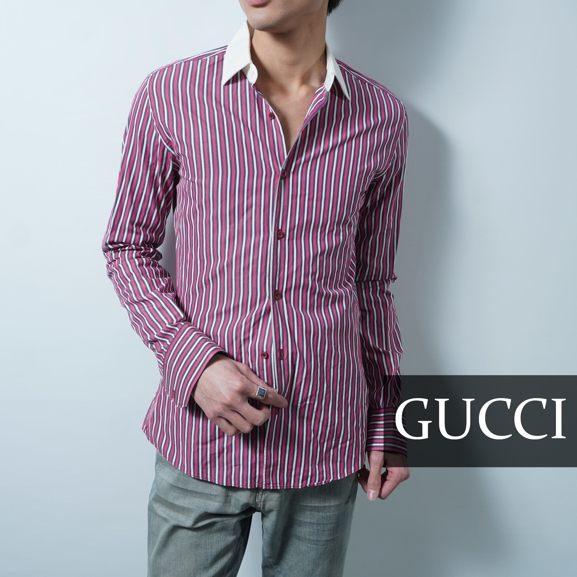 【GUCCI】ストライプコットンシャツ red