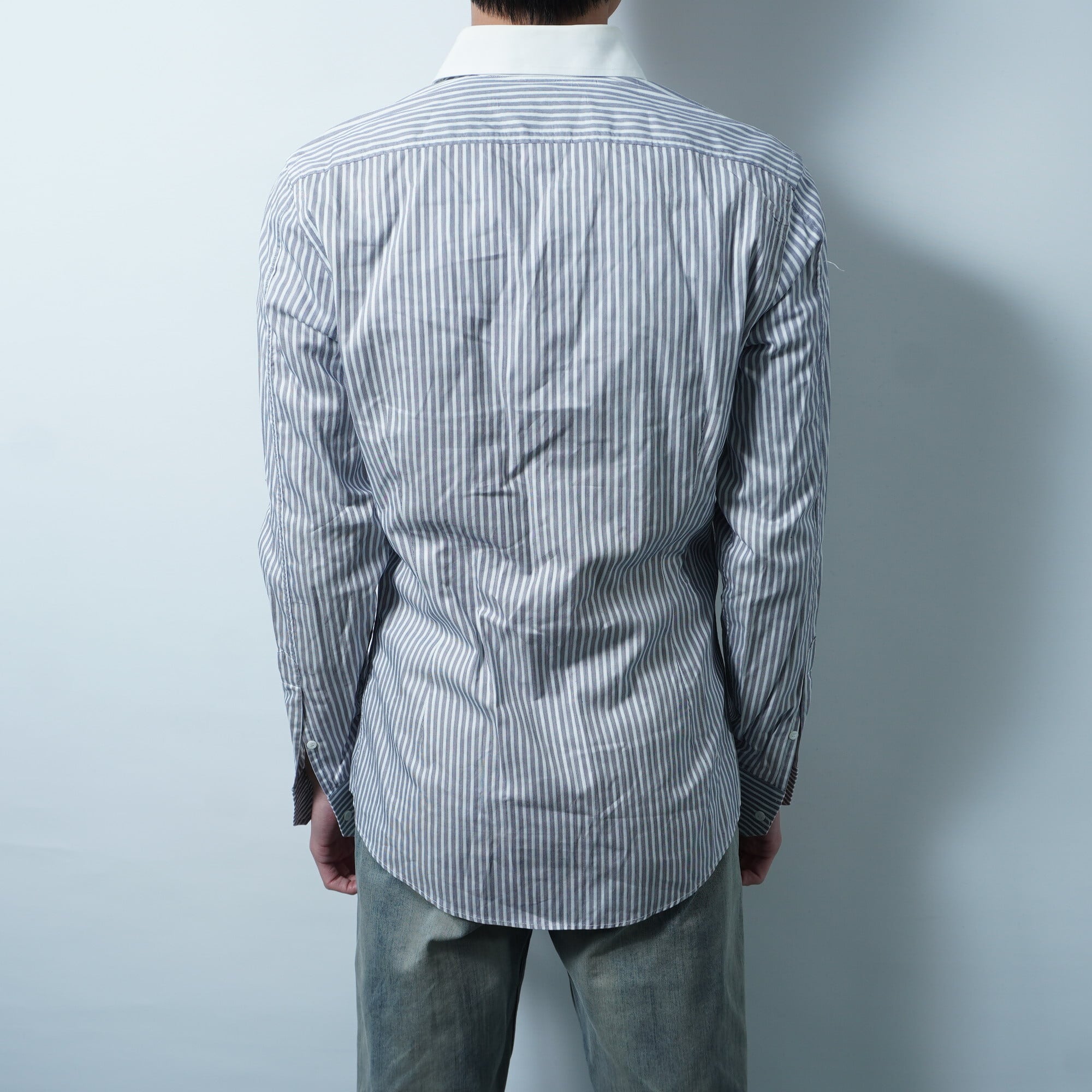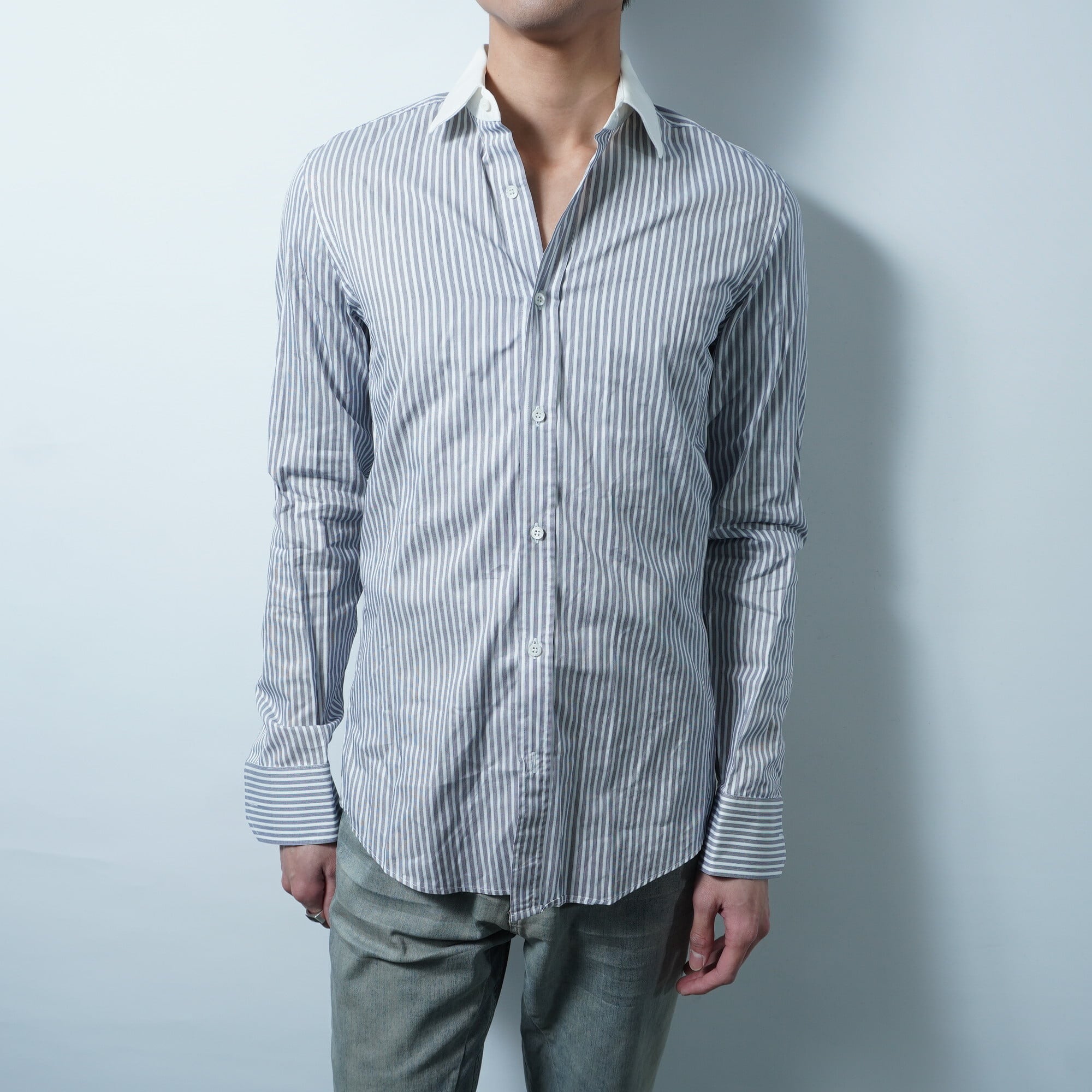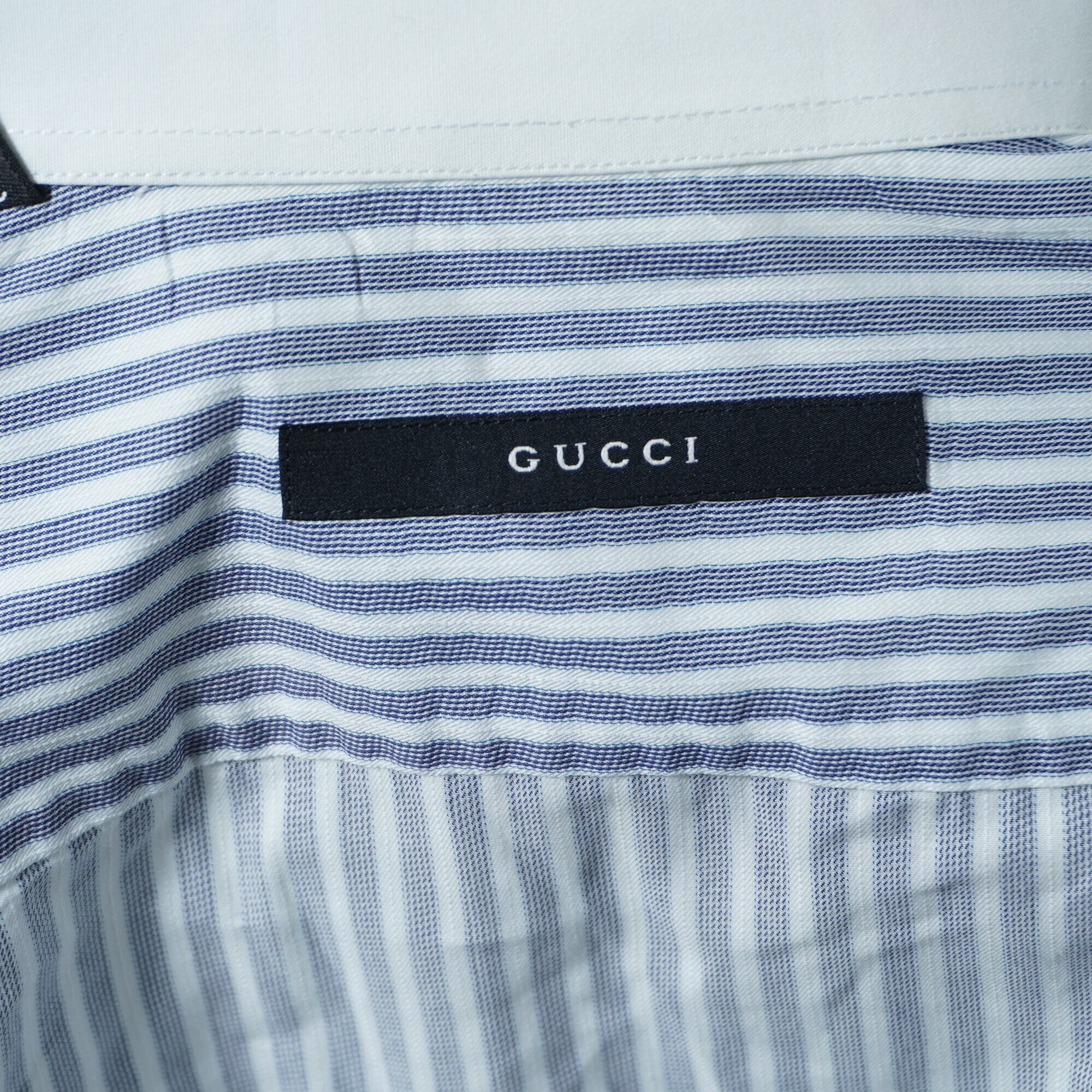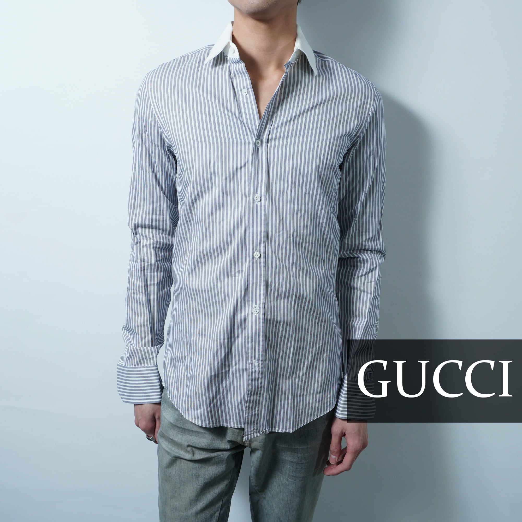 【GUCCI】グッチ ストライプコットンシャツ blue