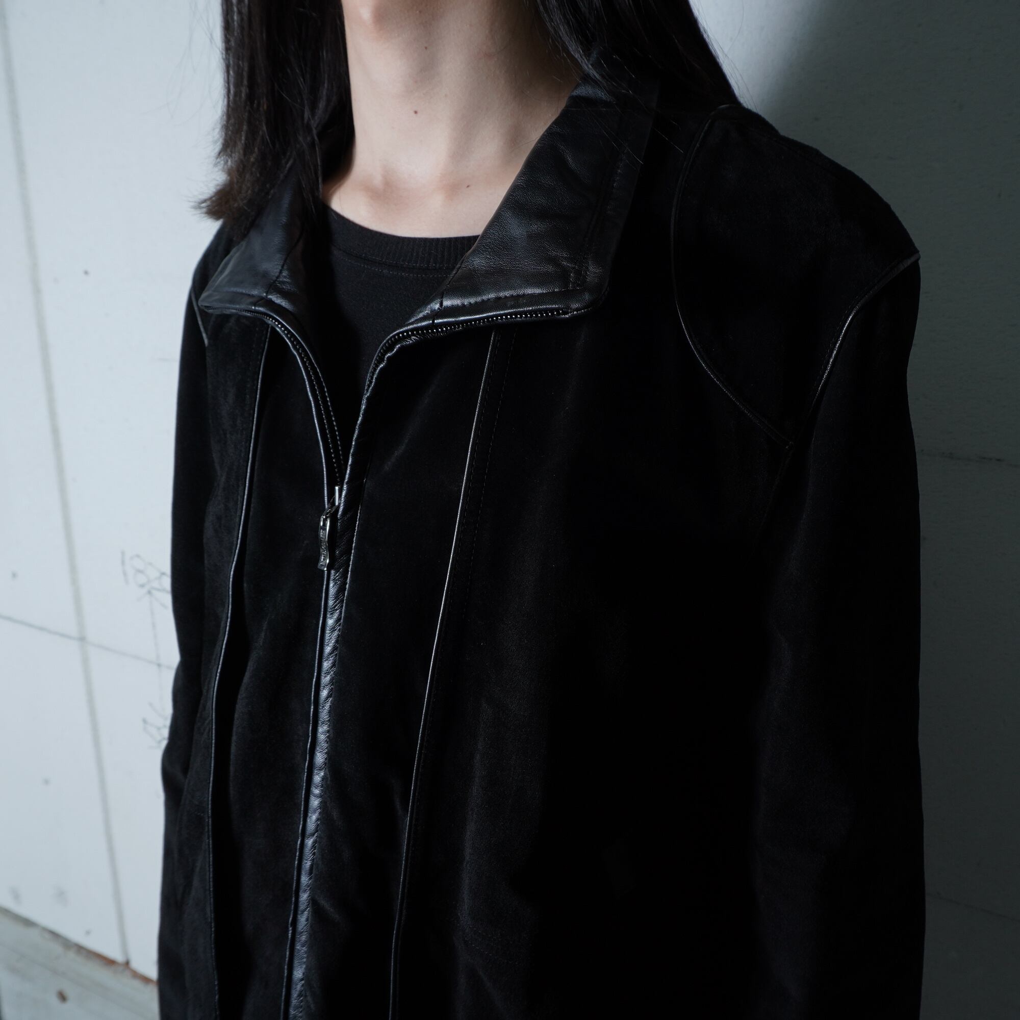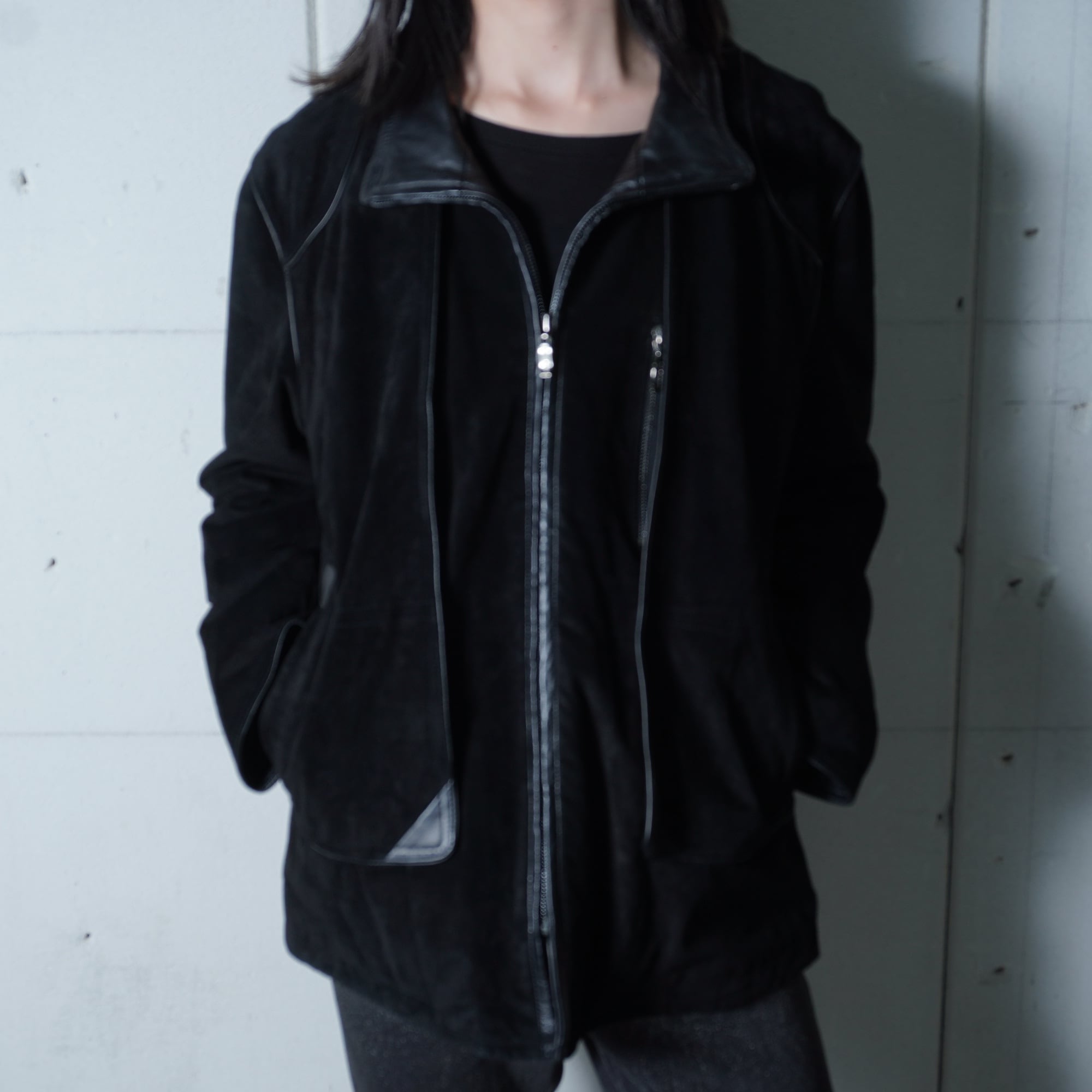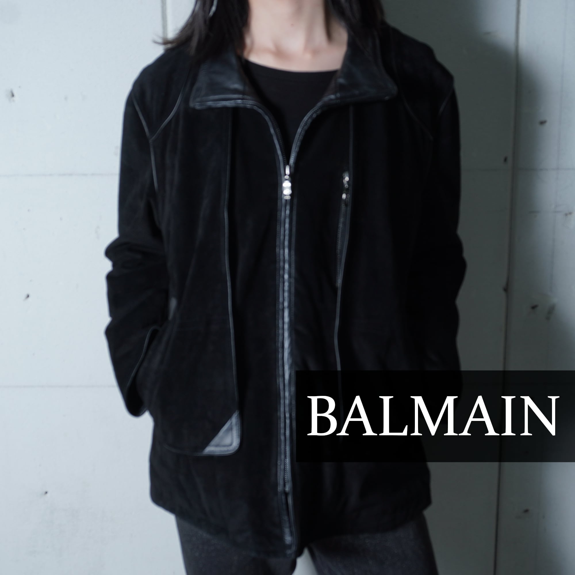 【BALMAIN】バルマン "dark wear" ロゴジップ スエードレザージップジャケット black