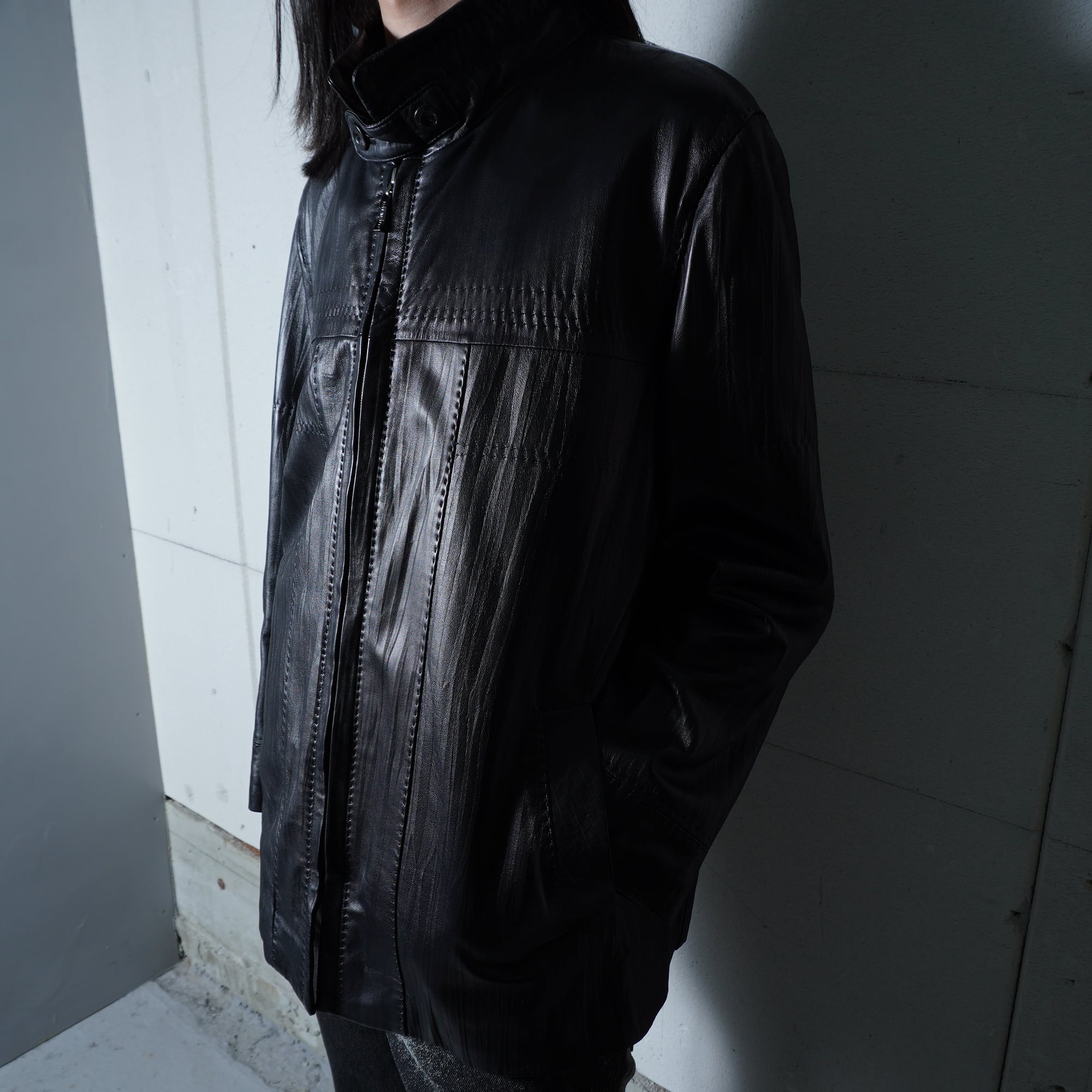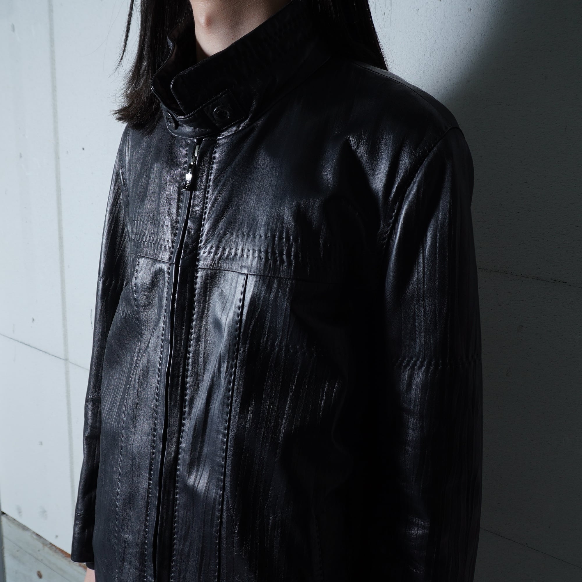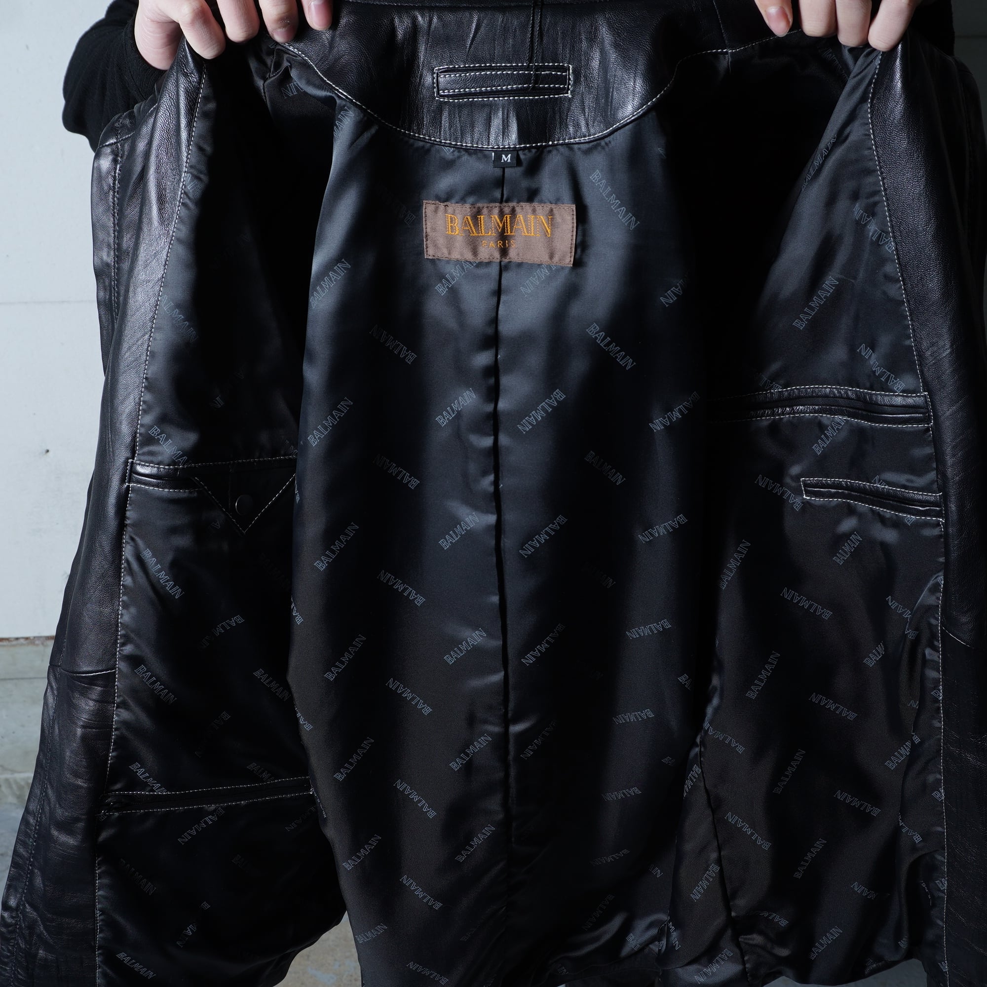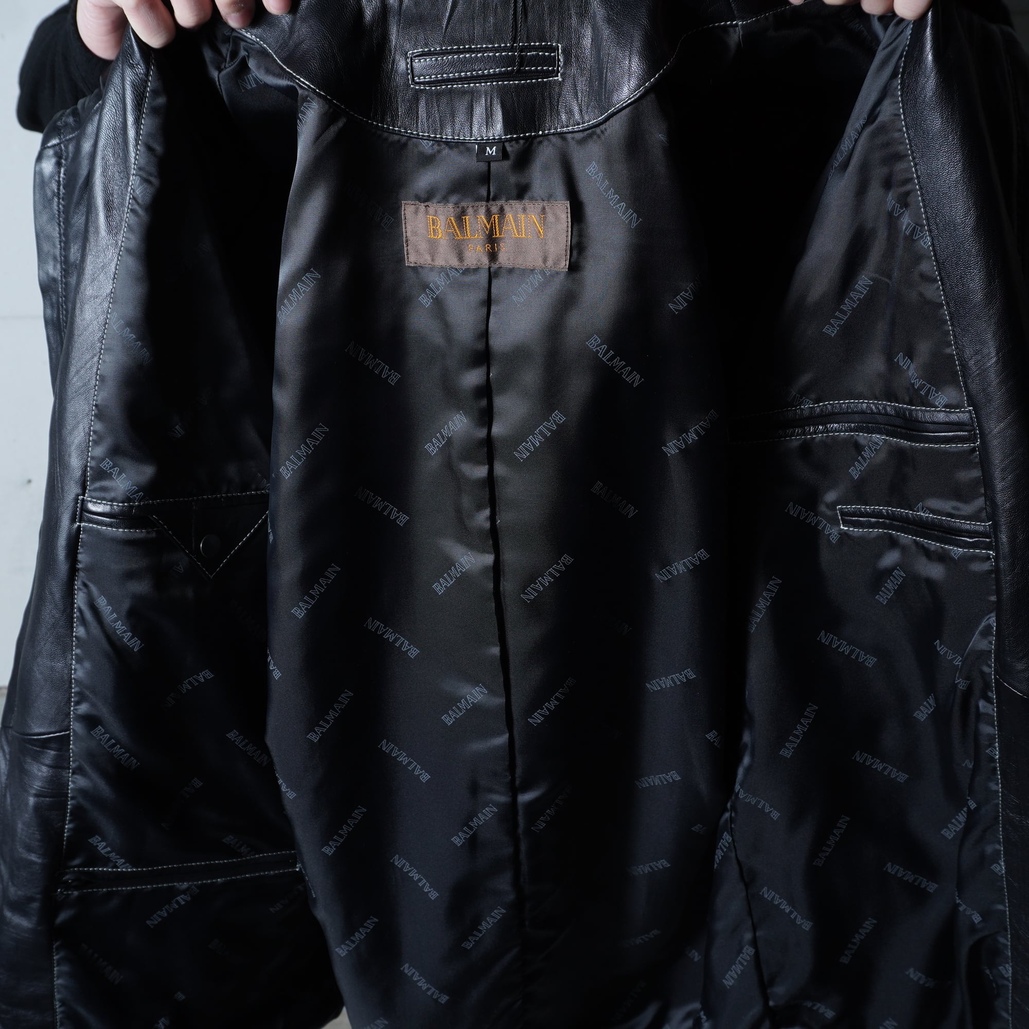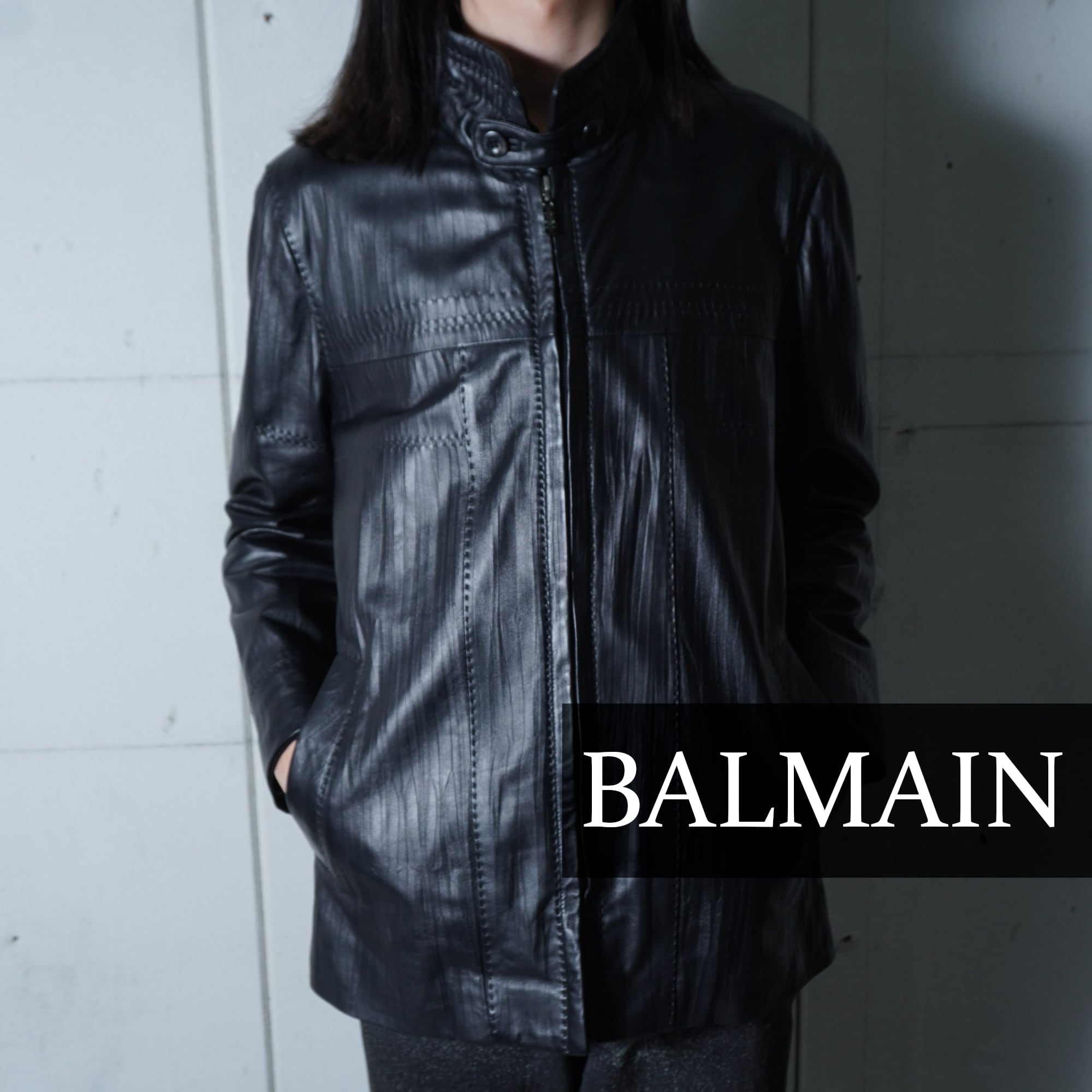【BALMAIN】バルマン "dark wear" "ロゴジップ" ラムレザースタンドカラージャケット black