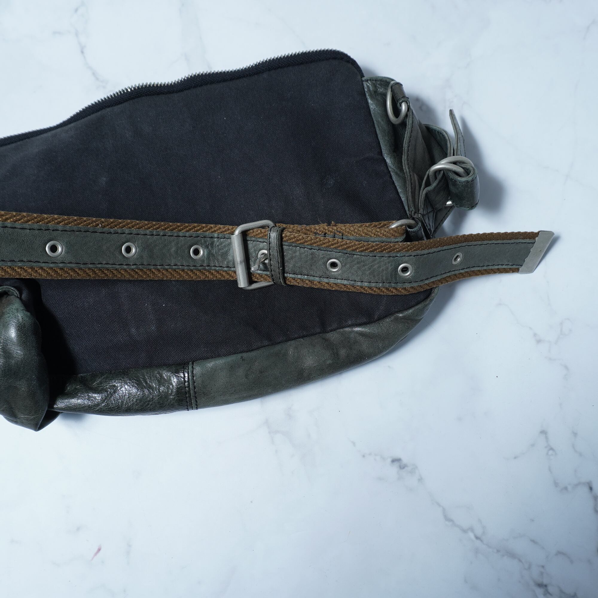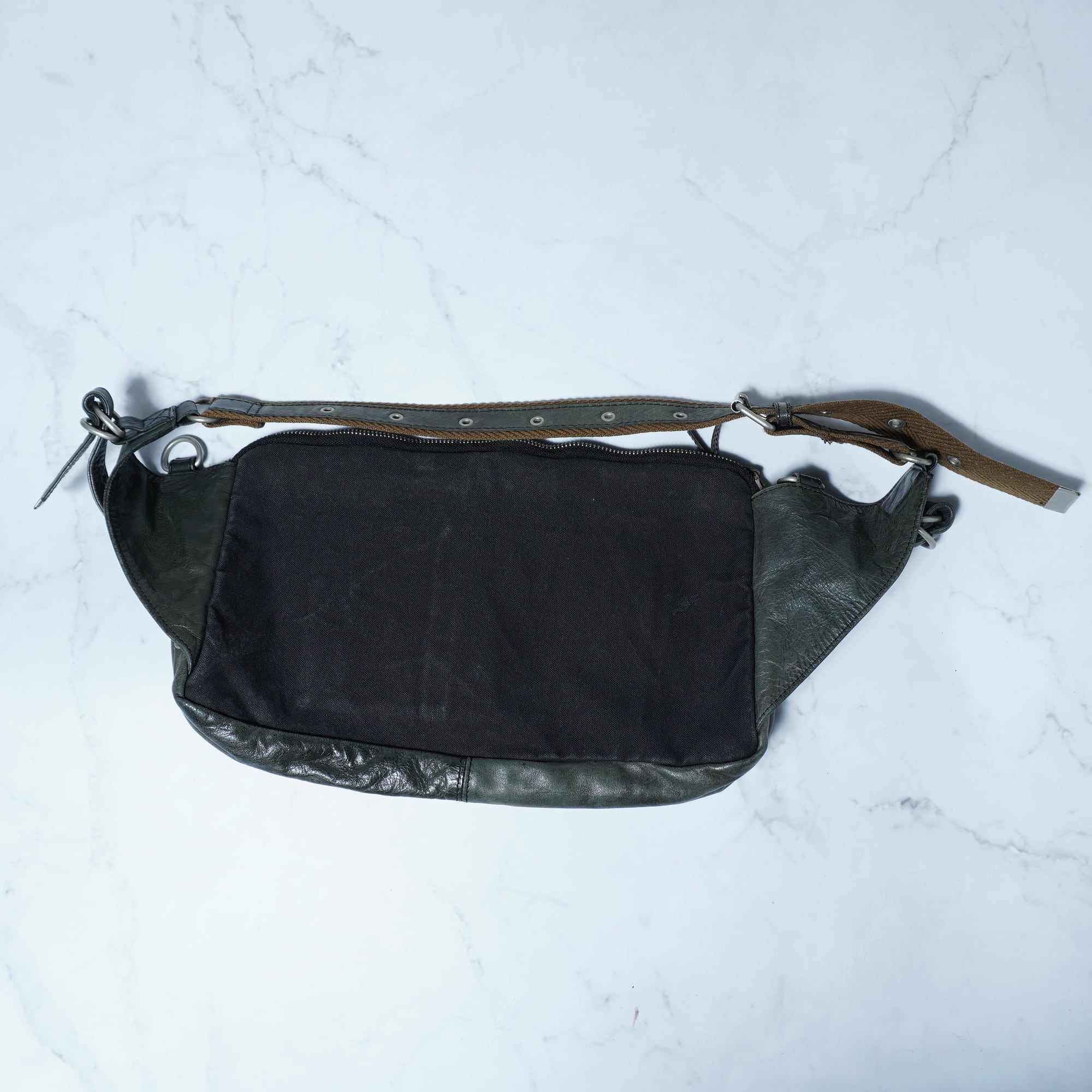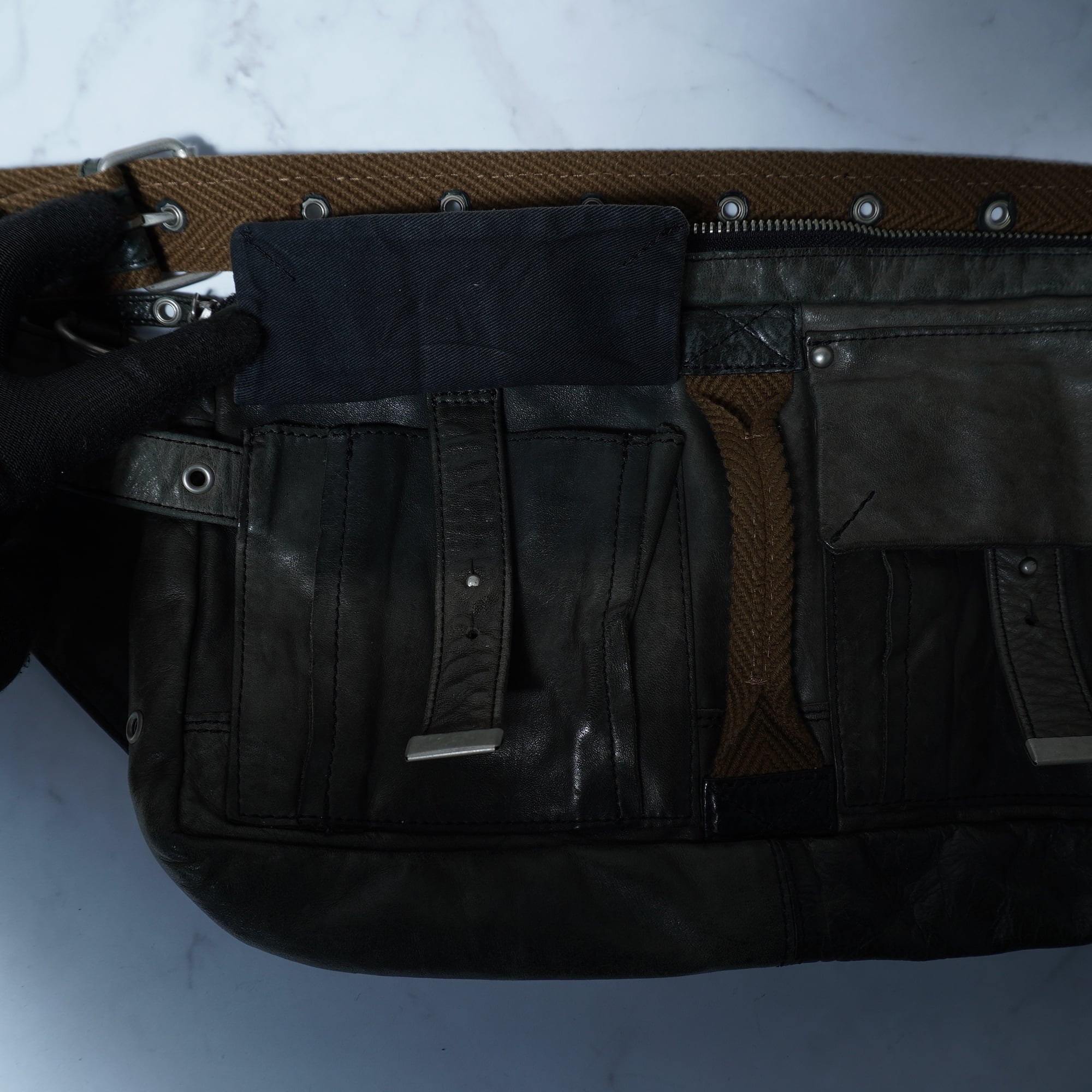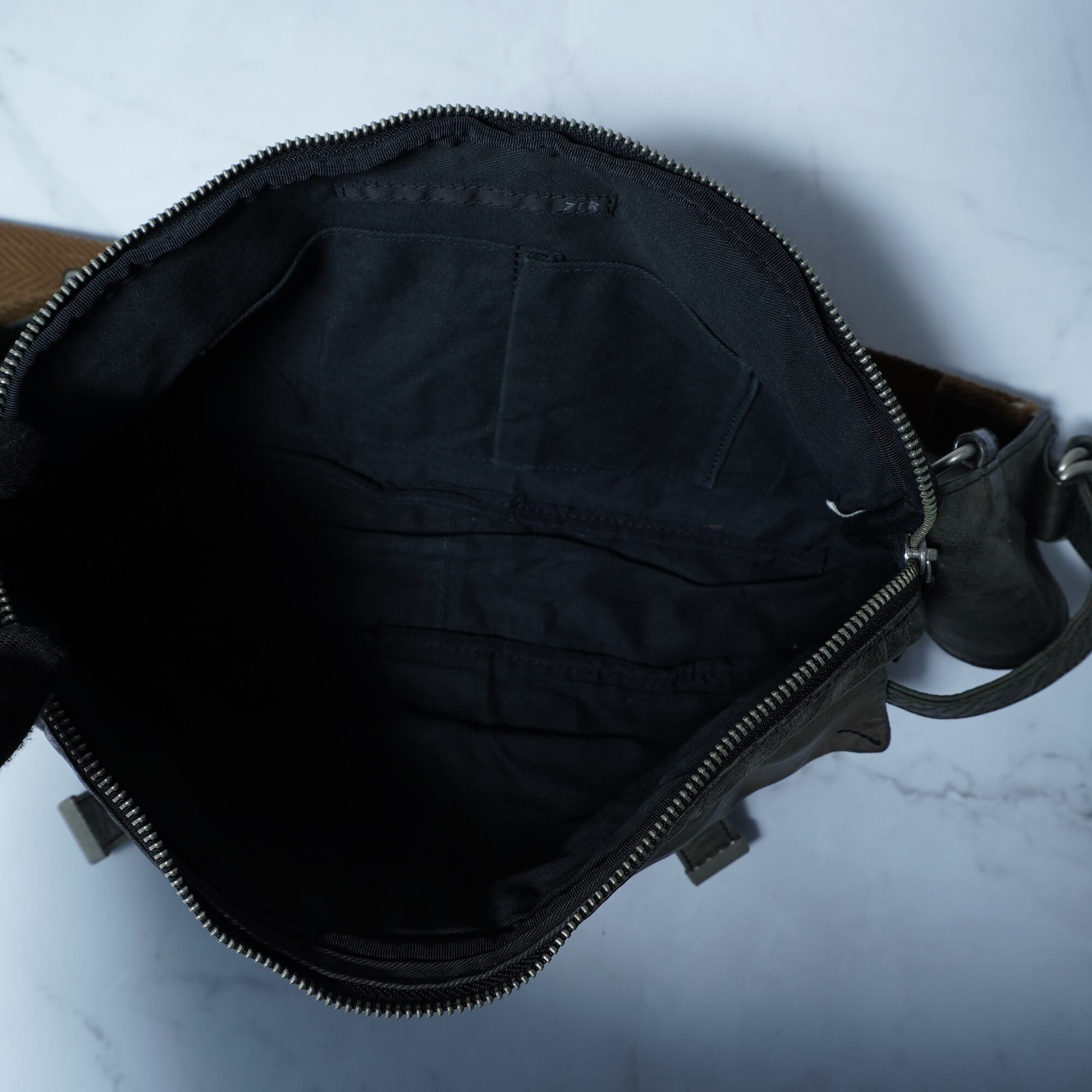 【ZER】ゼットイーアール”dark wear"フロントポケットレザーボディバッグ khaki navy