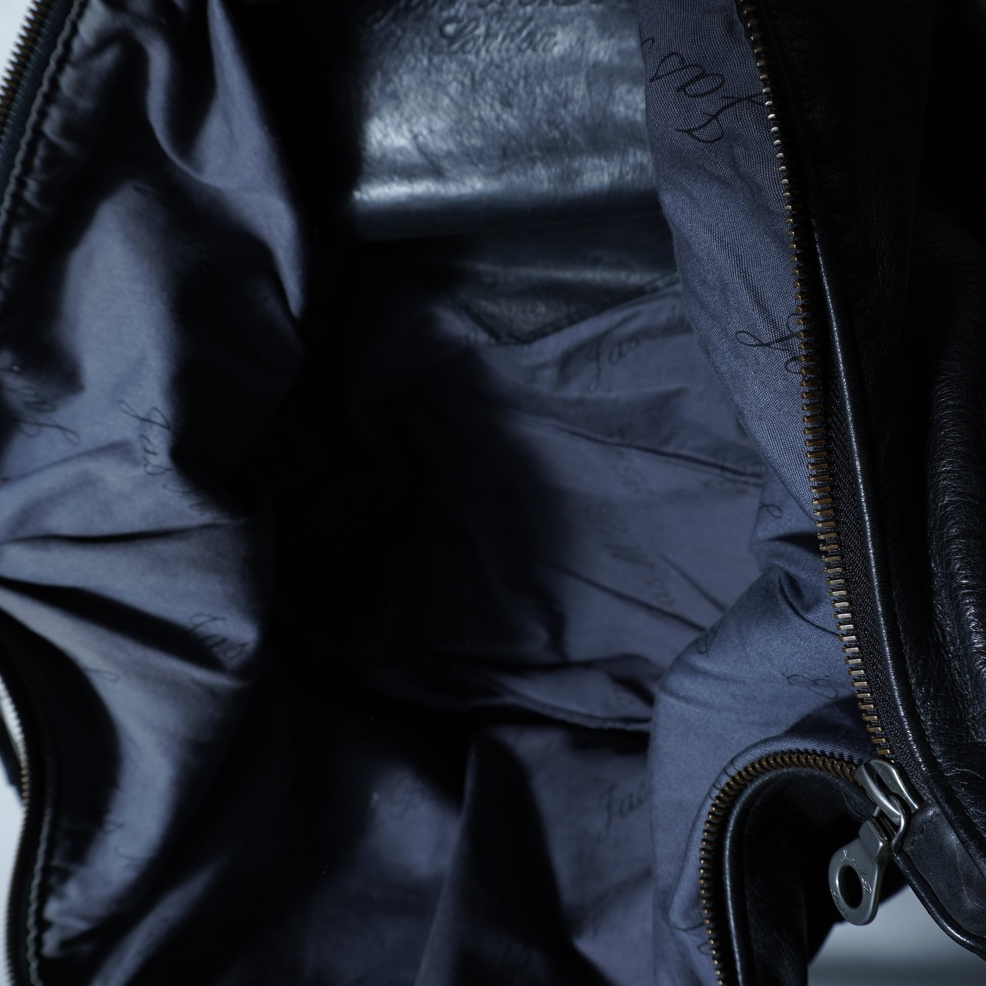 ・秀逸な加工が施されたブラックレザー