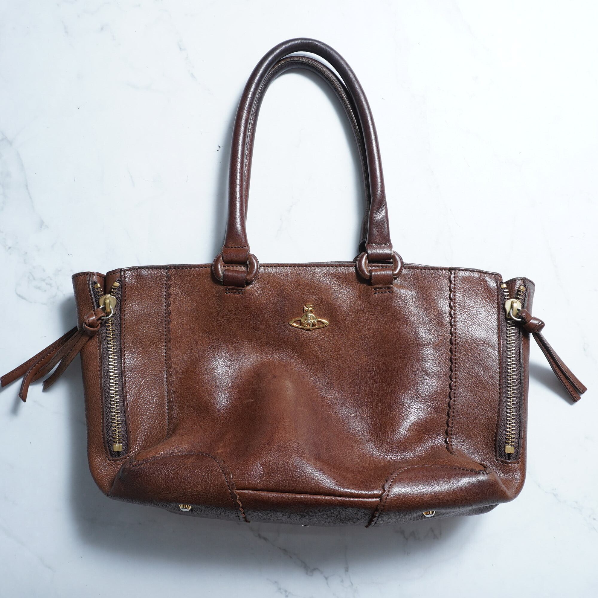 【Vivienne Westwood】ヴィヴィアンウエストウッド オーブモチーフレザーハンドバッグ brown