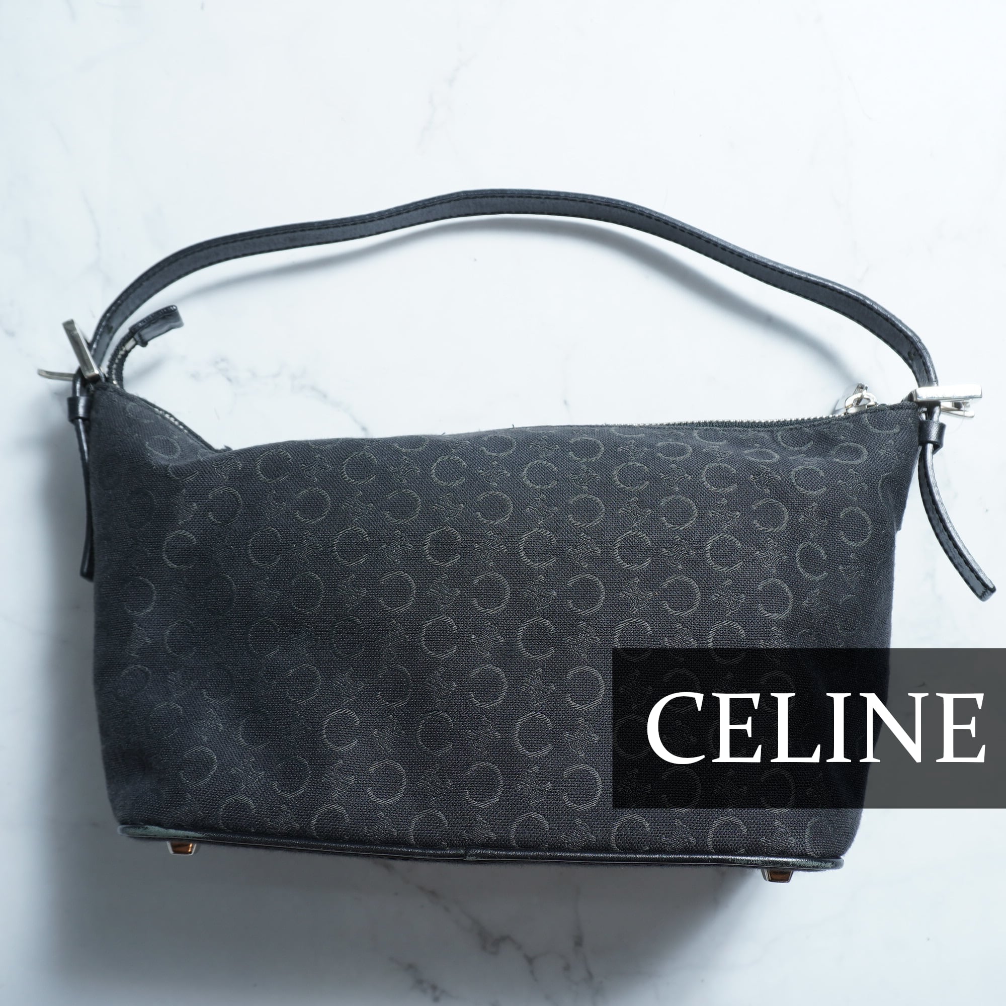 【CELINE】セリーヌ 総柄キャンバスレザーポーチバッグ black