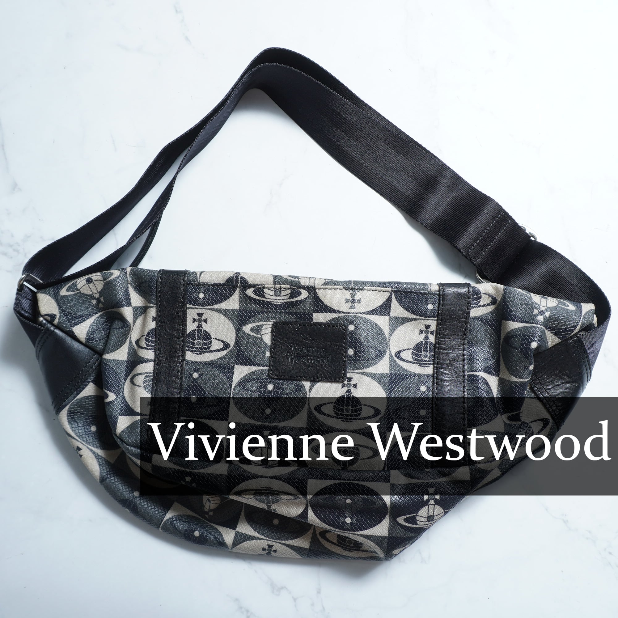 【Vivienne Westwood】ヴィヴィアンウエストウッド MAN オーブ総柄PVCレザー切替ショルダーバッグ