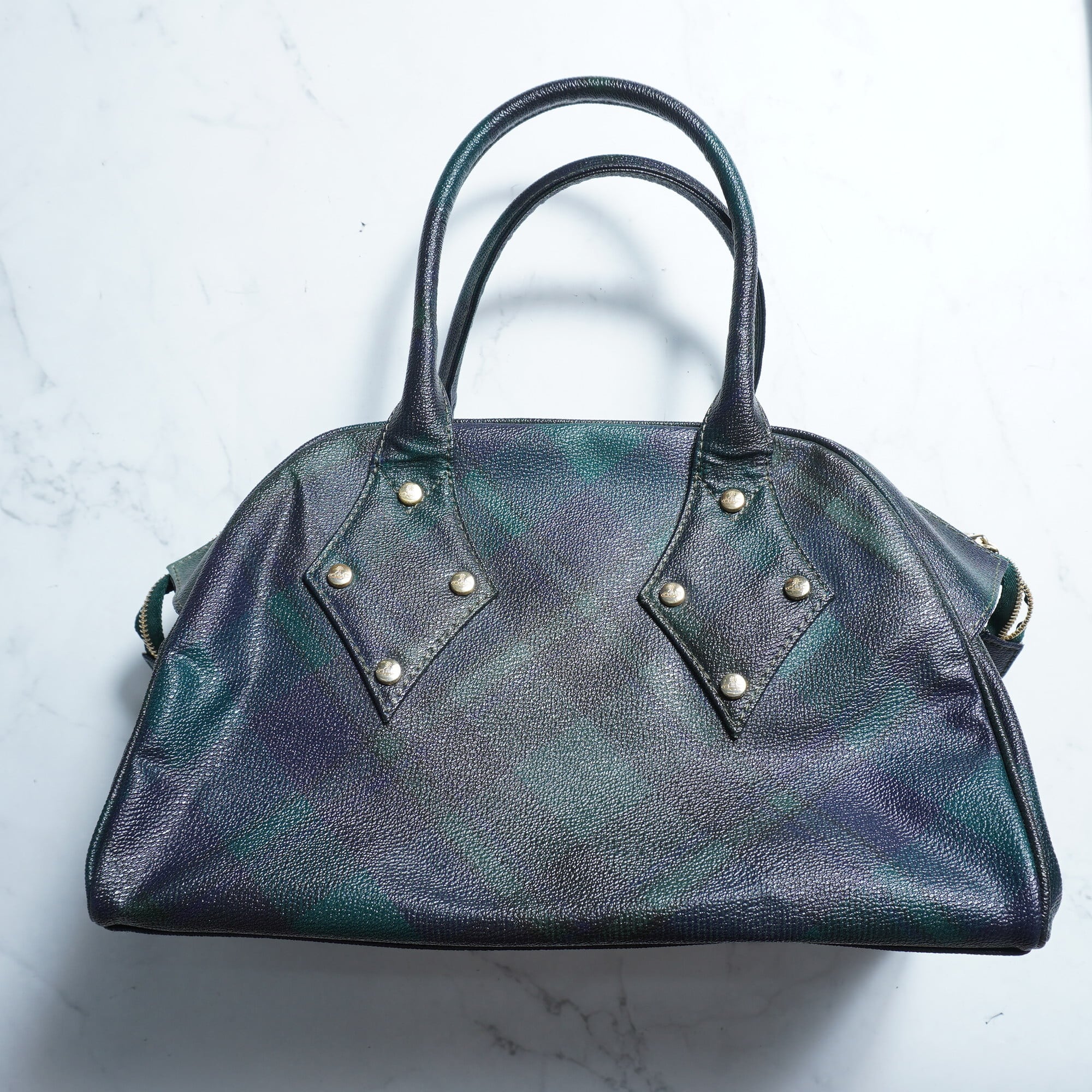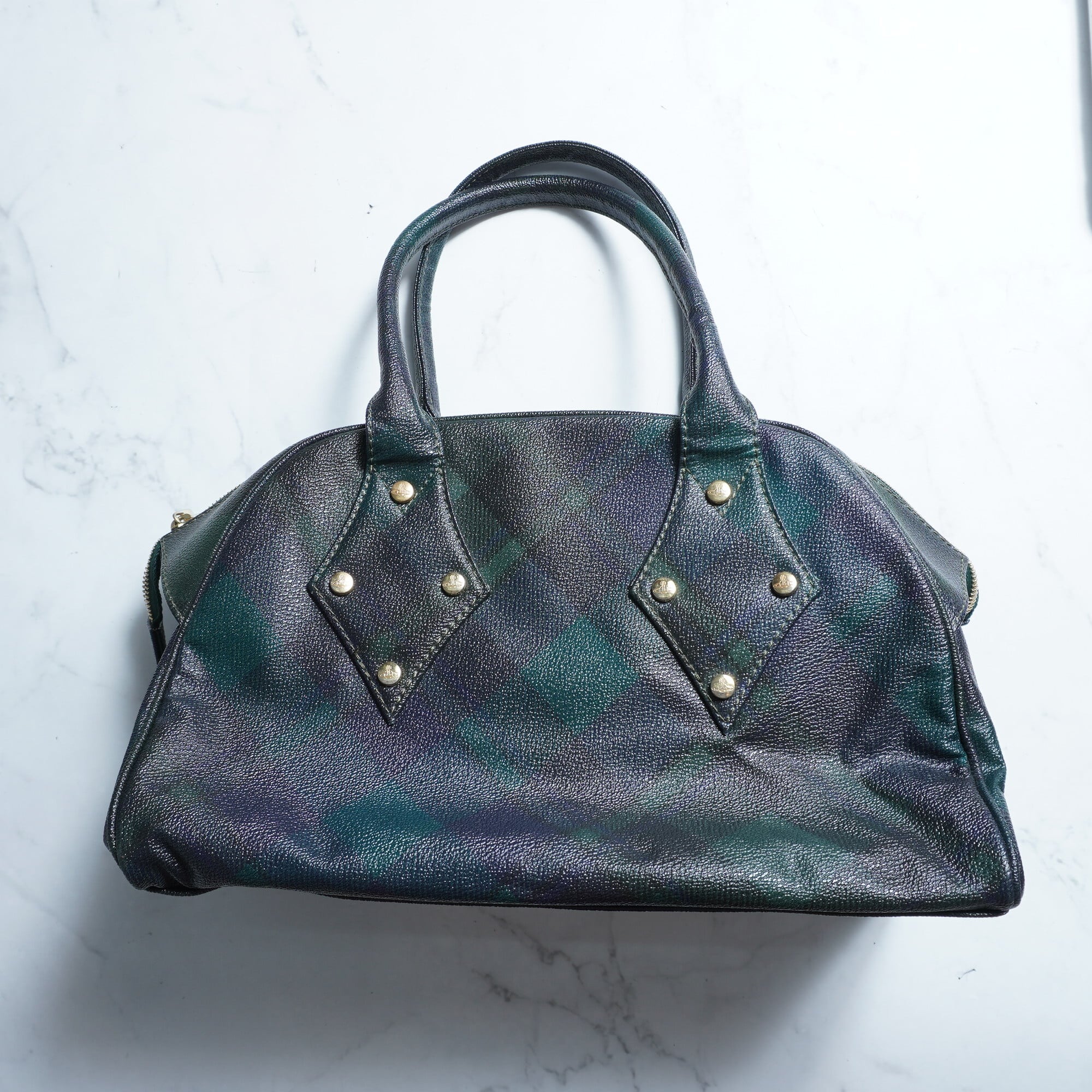 【Vivienne Westwood】ヴィヴィアンウエストウッド チェック柄PVCボストンバッグ green