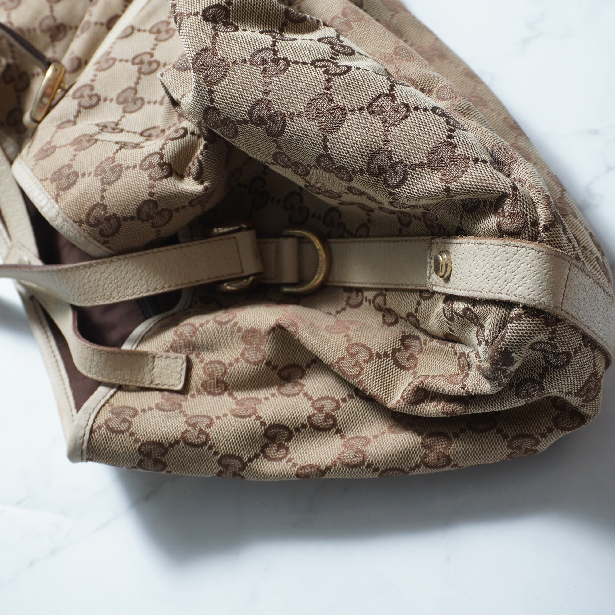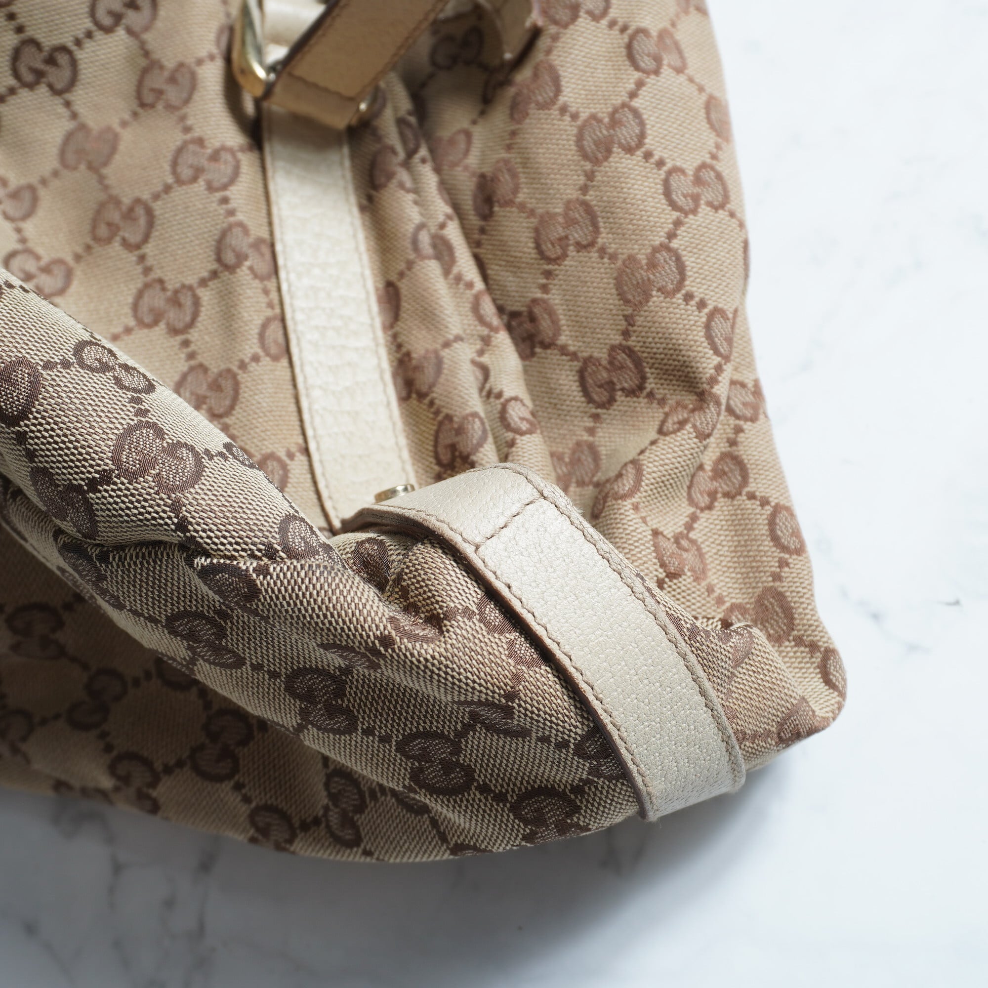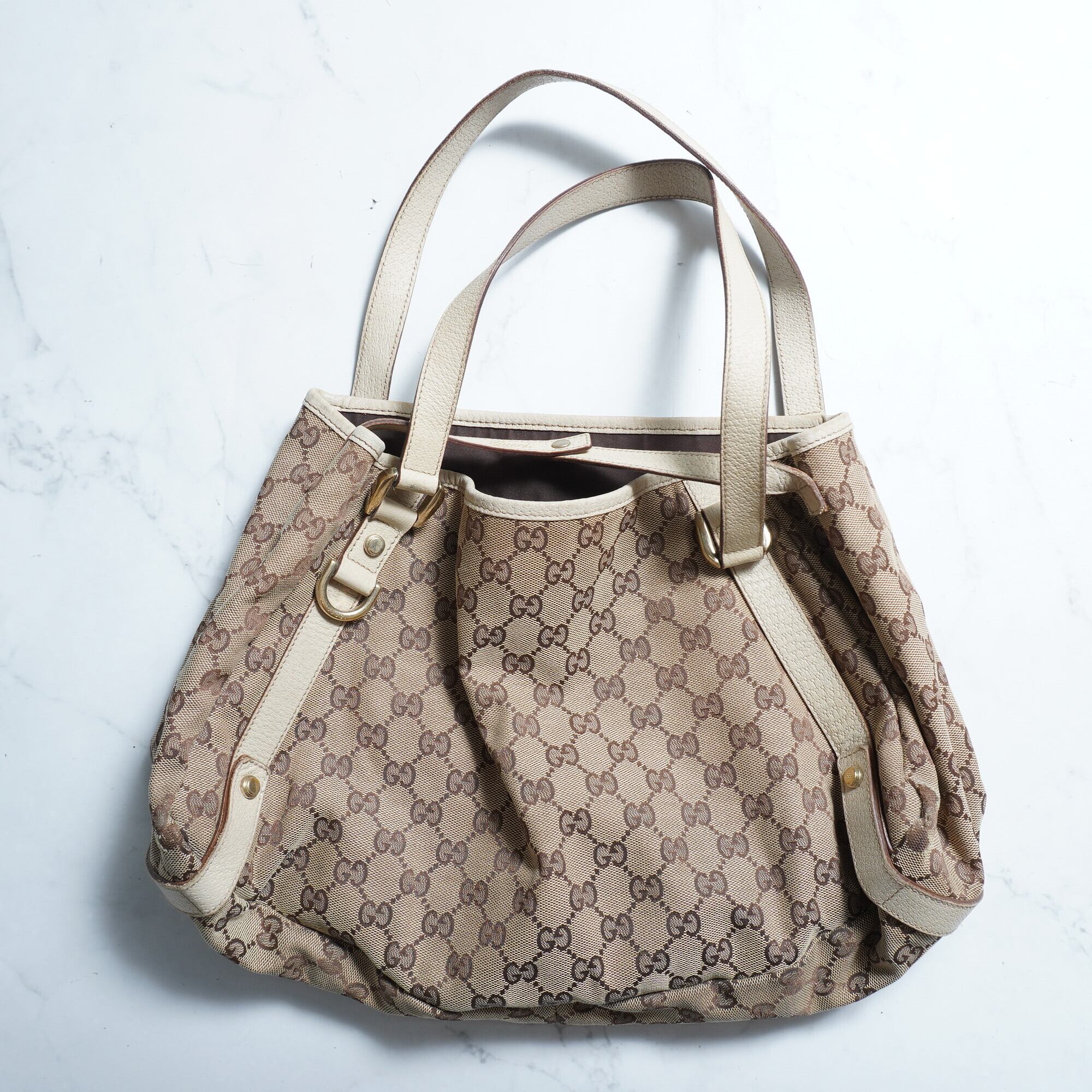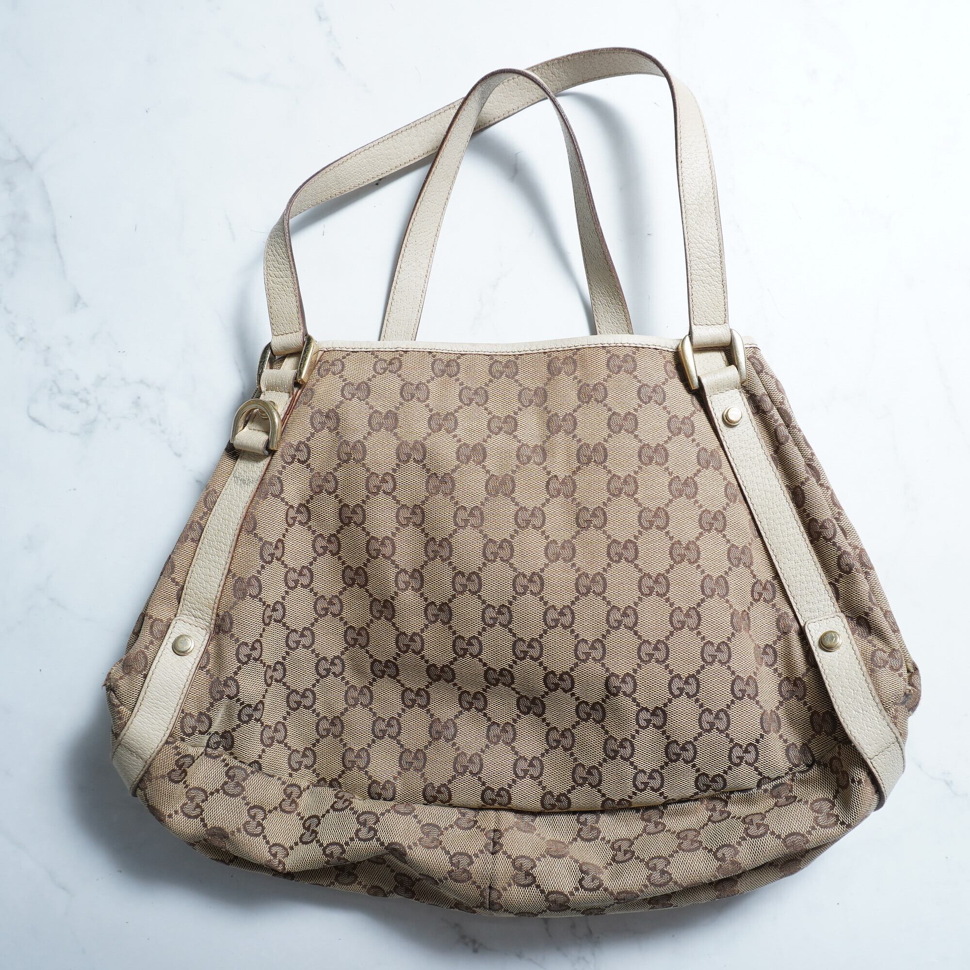 【GUCCI】GGキャンバスレザー切替ショルダーバッグ beige