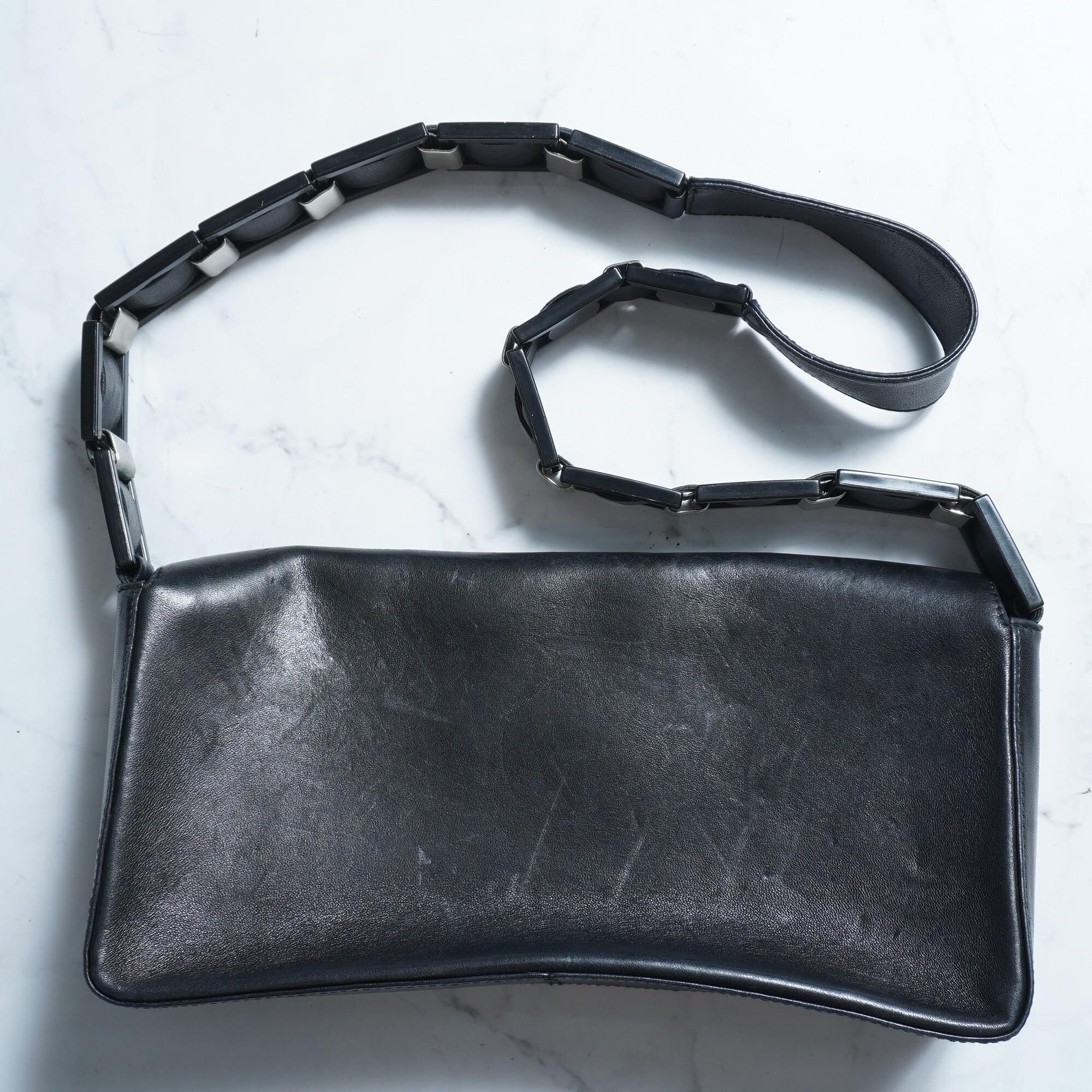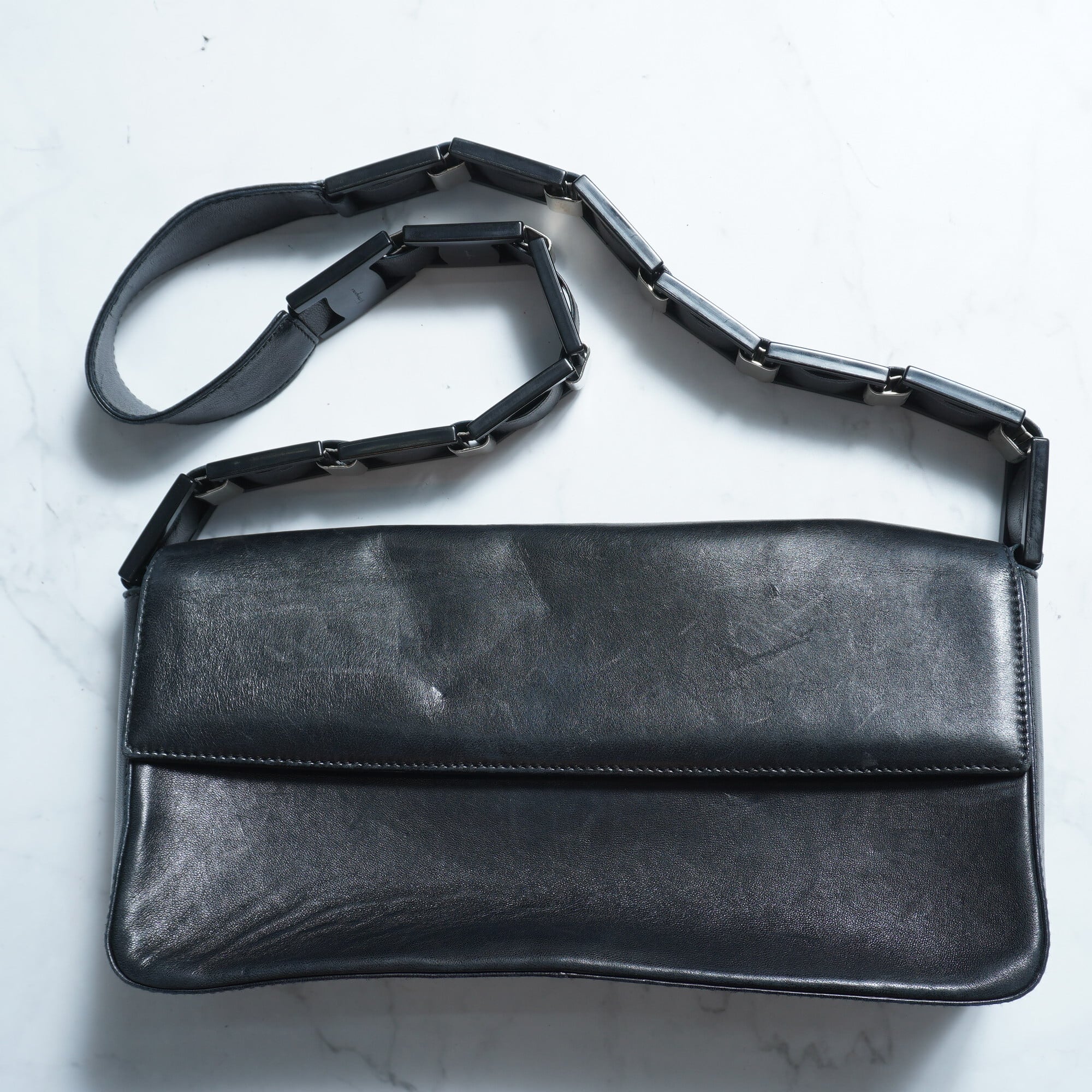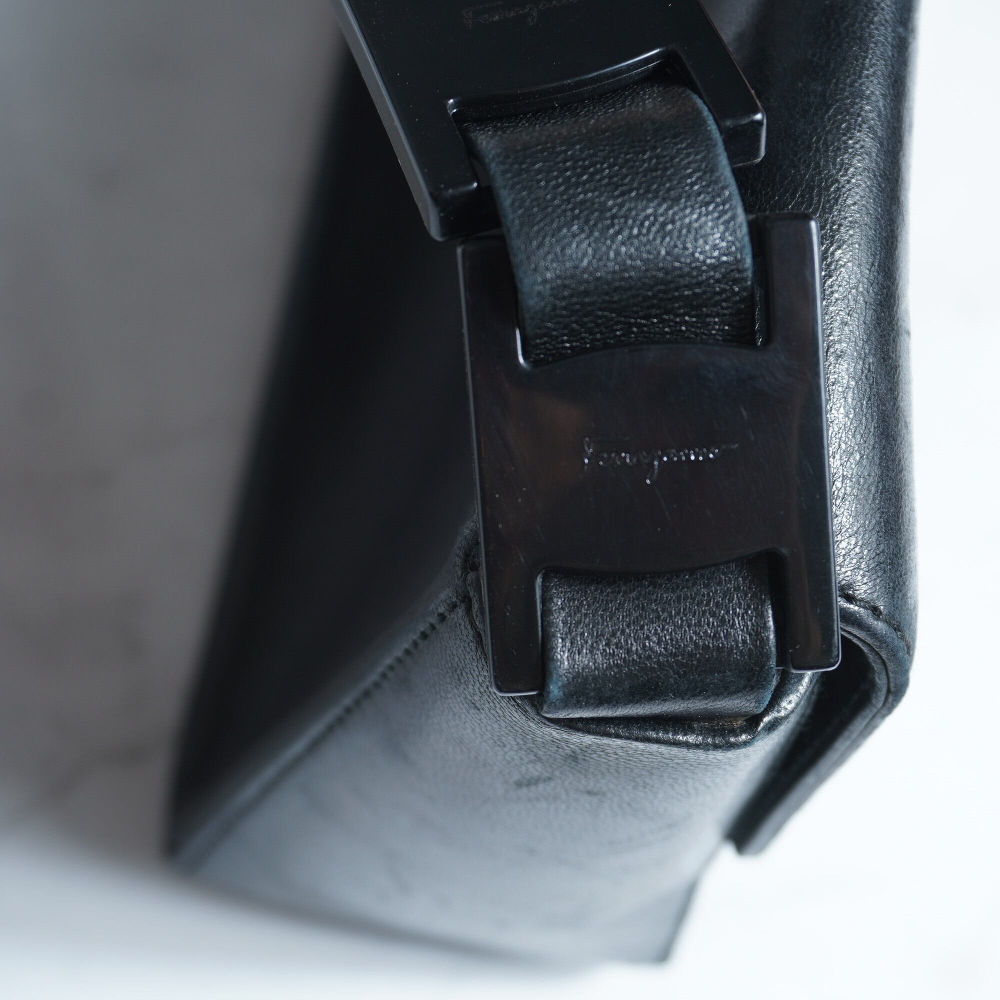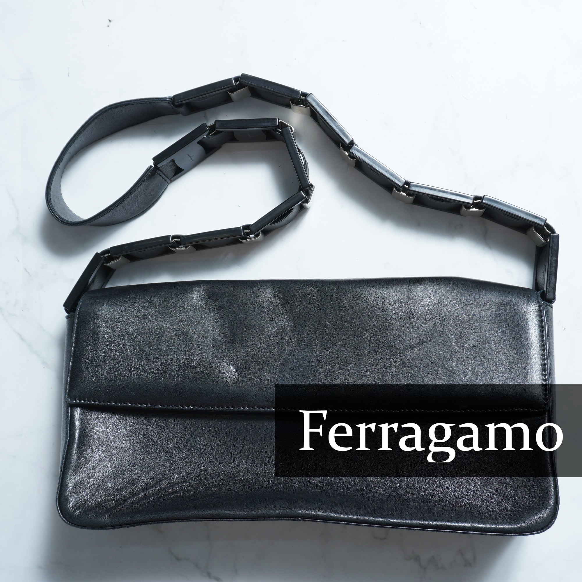 【Salvatore Ferragamo】サルバトーレフェラガモ アクリル切替ベルトレザーショルダーバッグ black