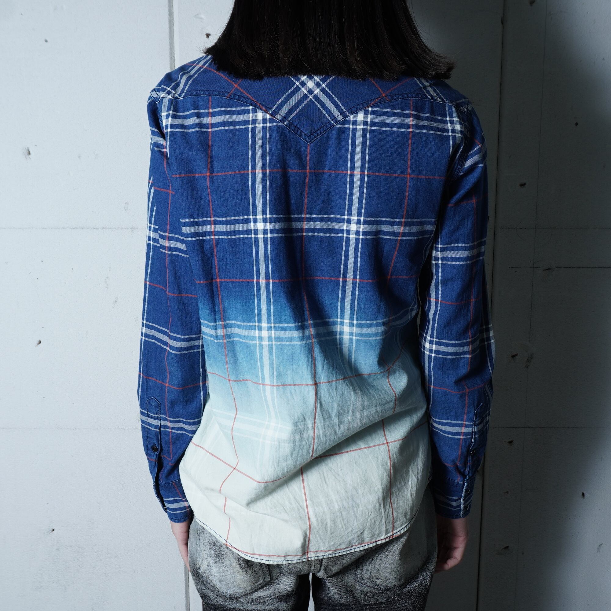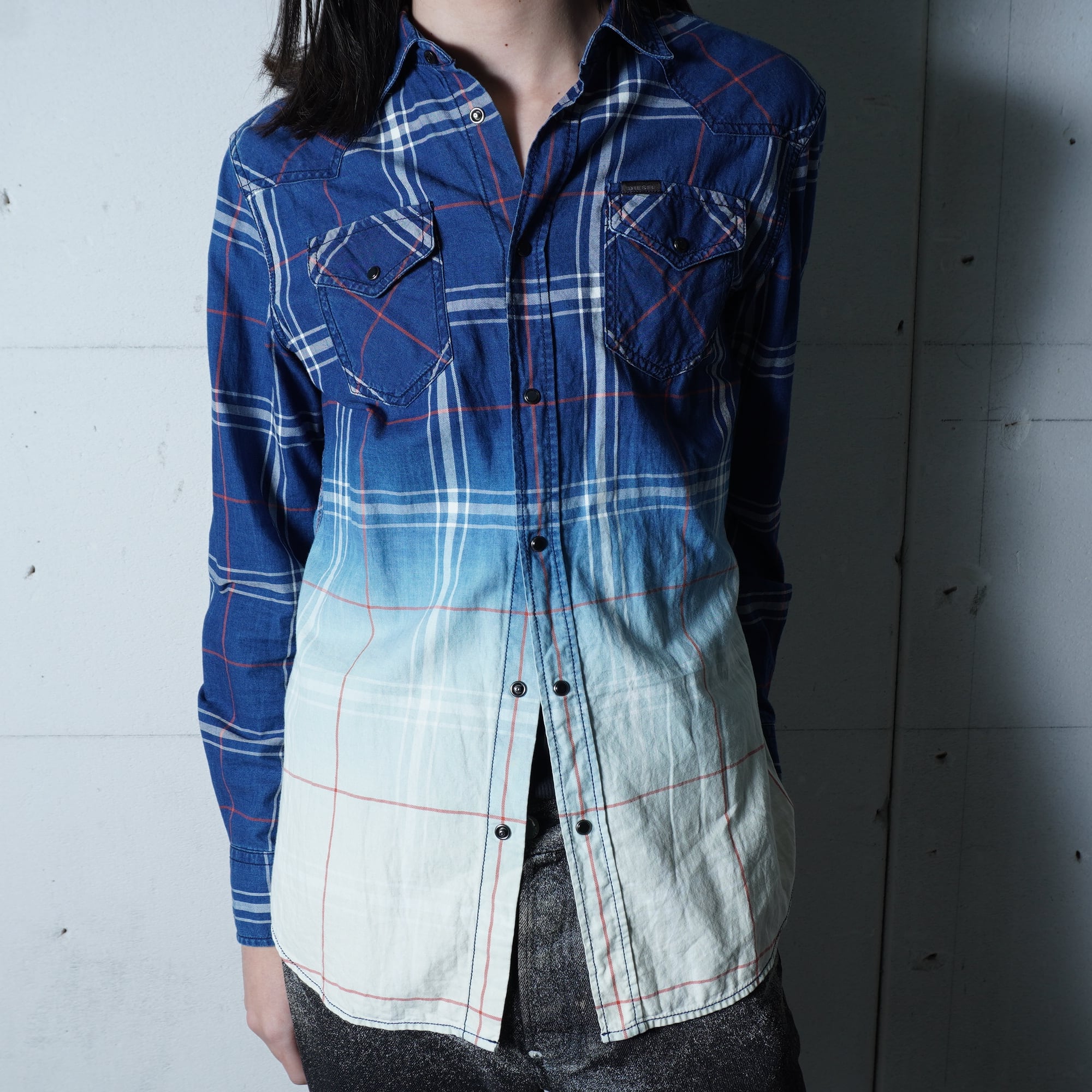 【DIESEL】ディーゼル "ダークウェア"Y2Kグラデーションチェックシャツ blue&white&red