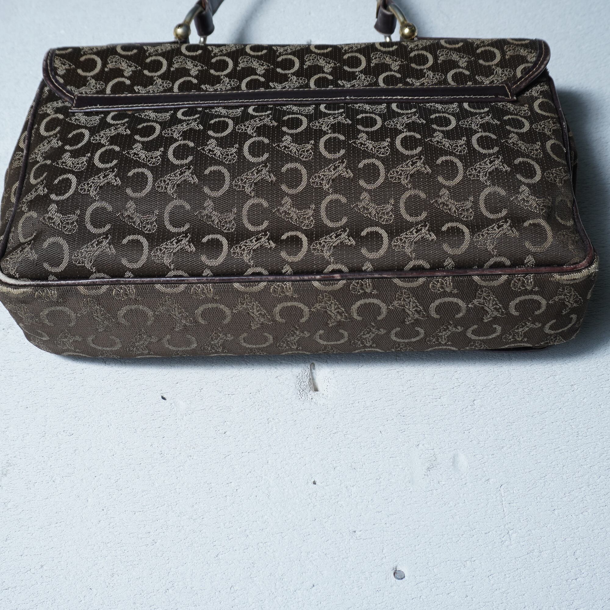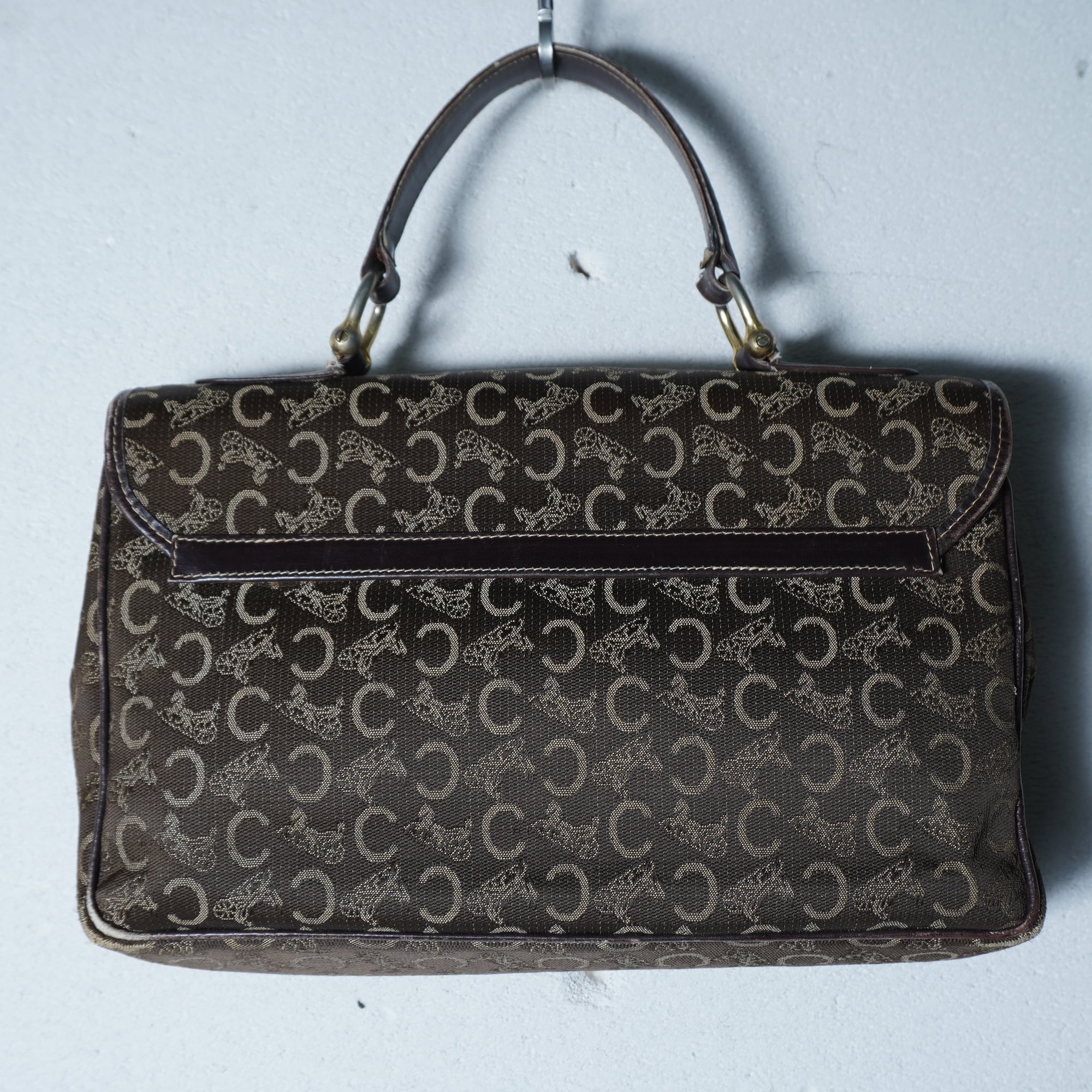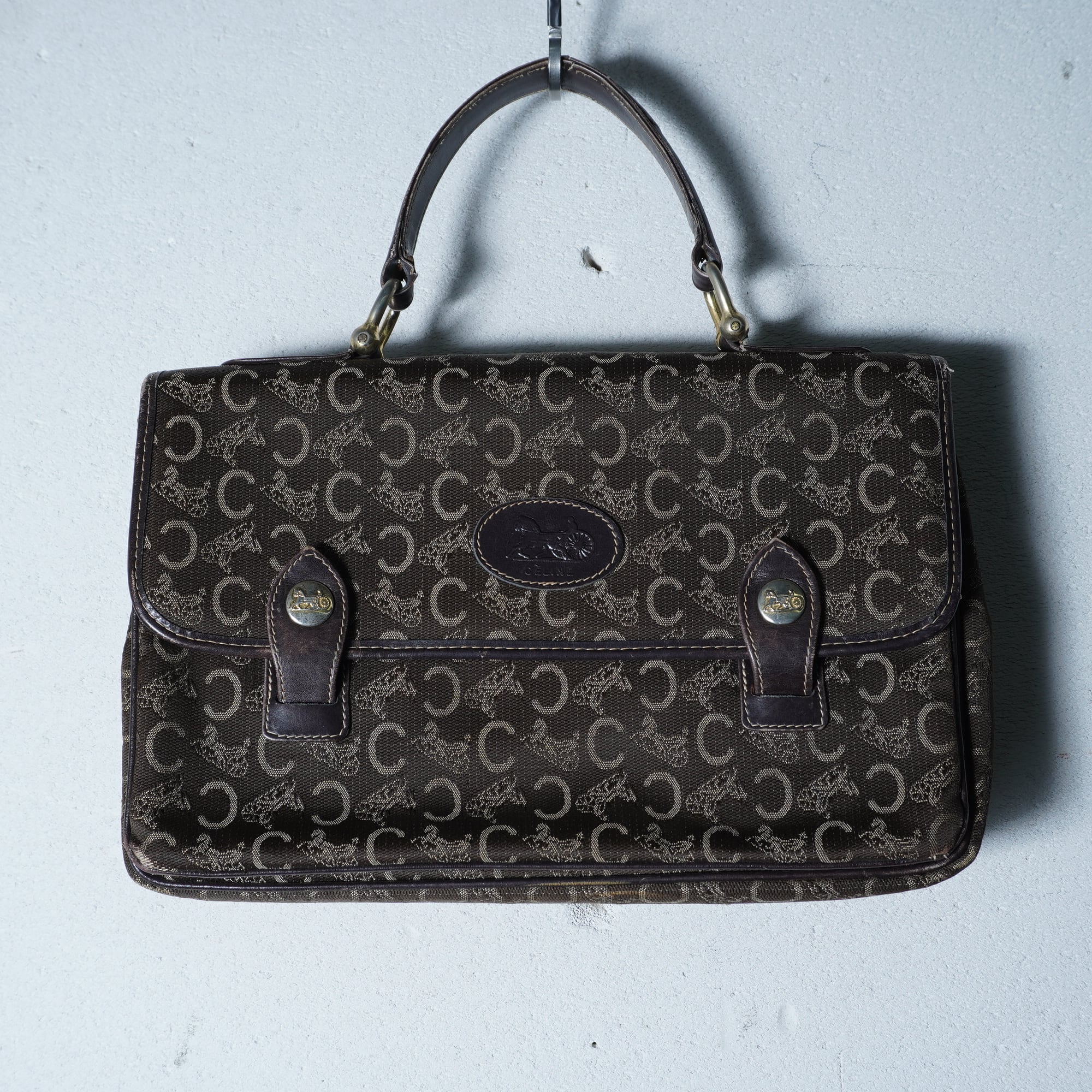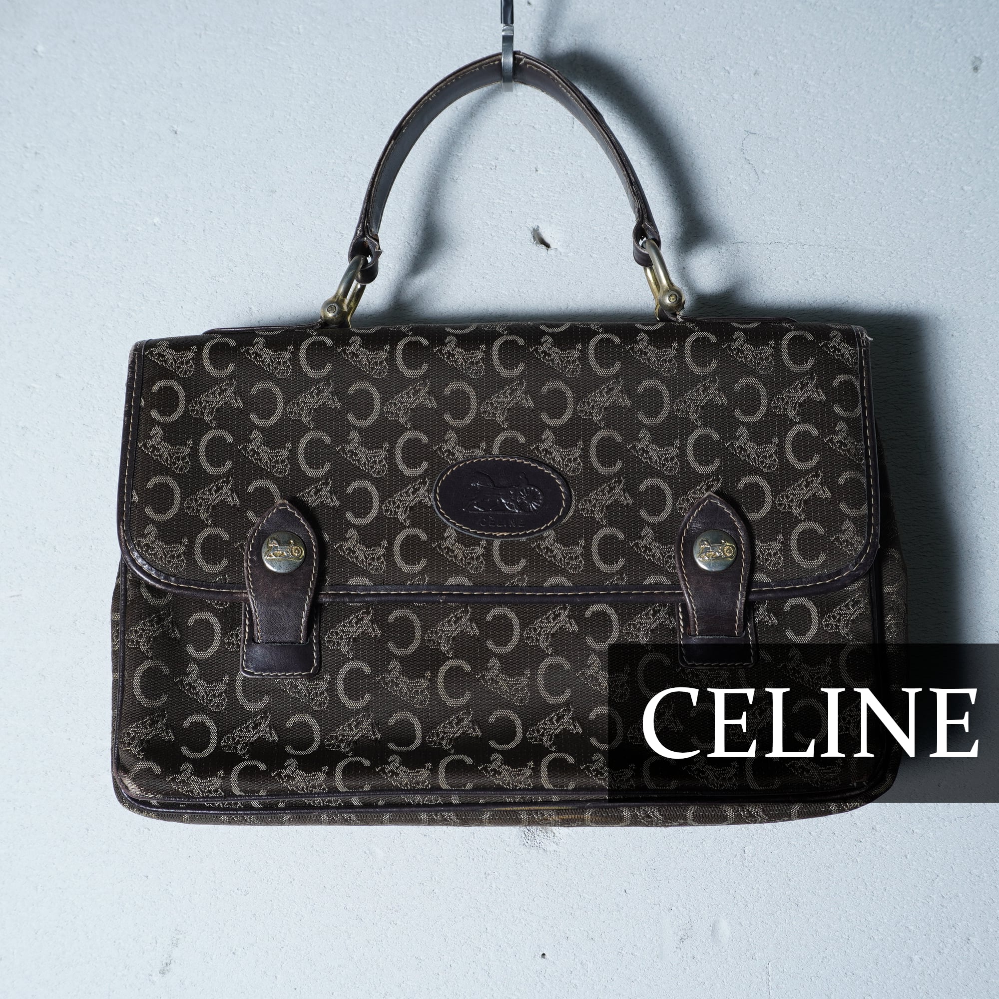 【CELINE】セリーヌ 馬車・Cロゴ総柄レザー切替ハンドバッグ brown