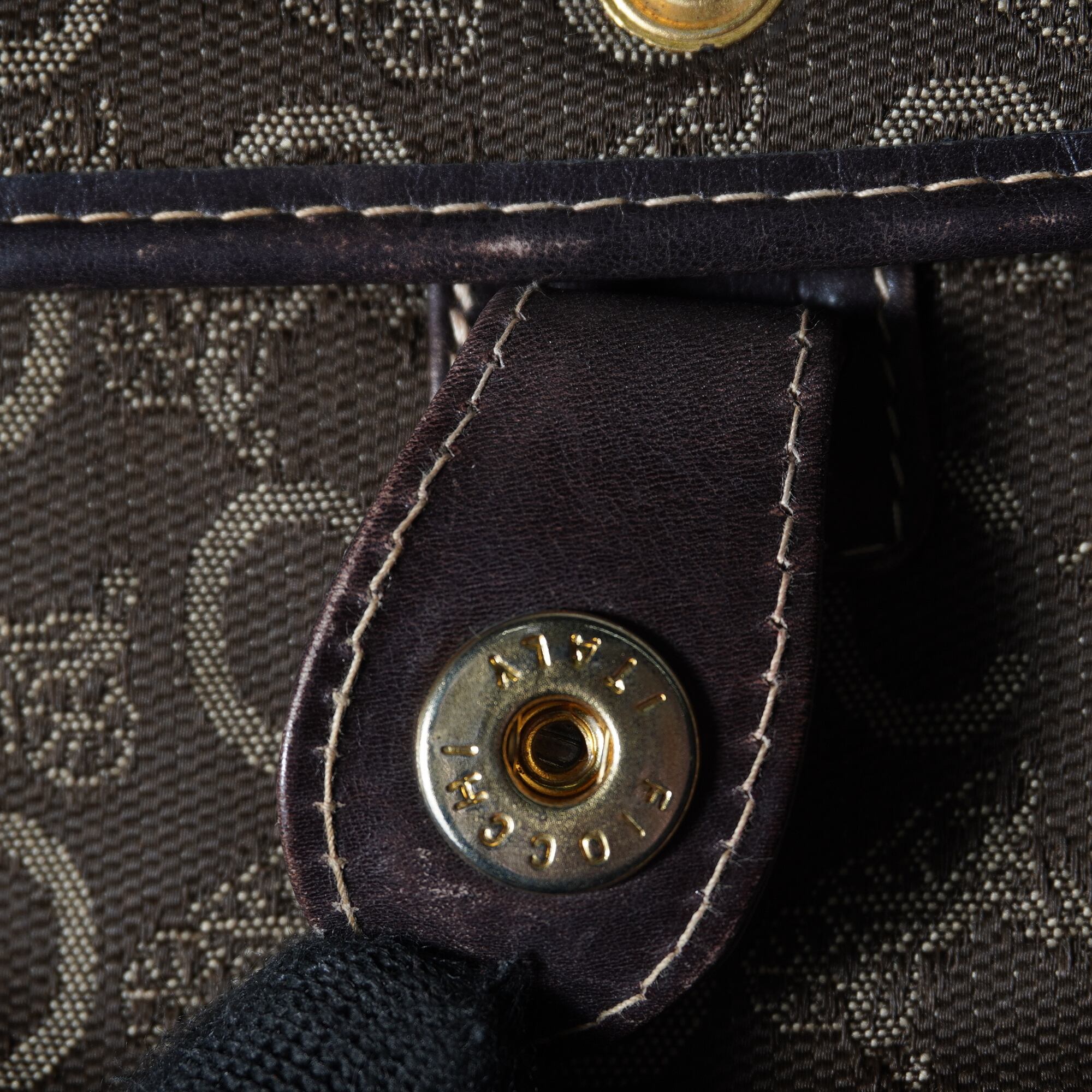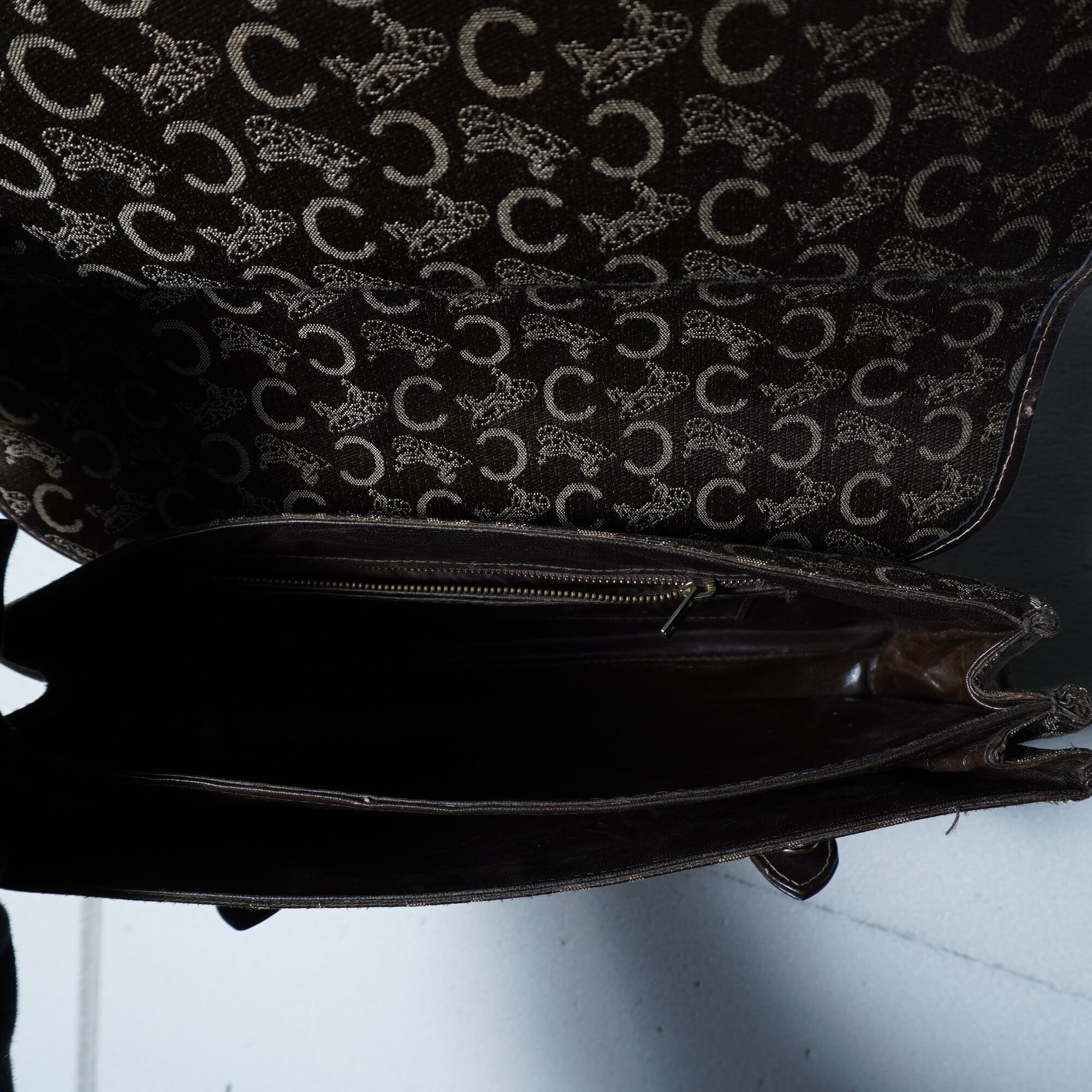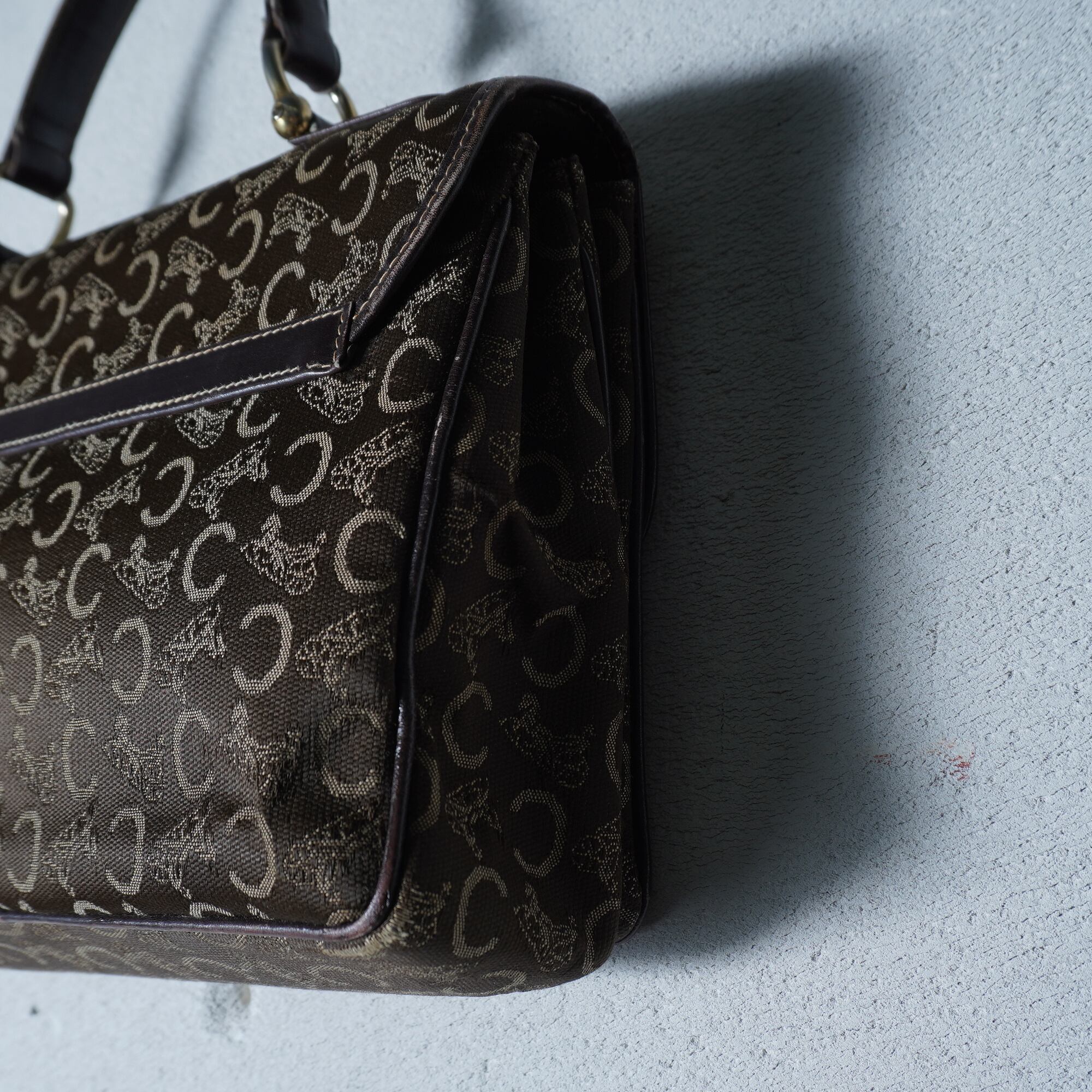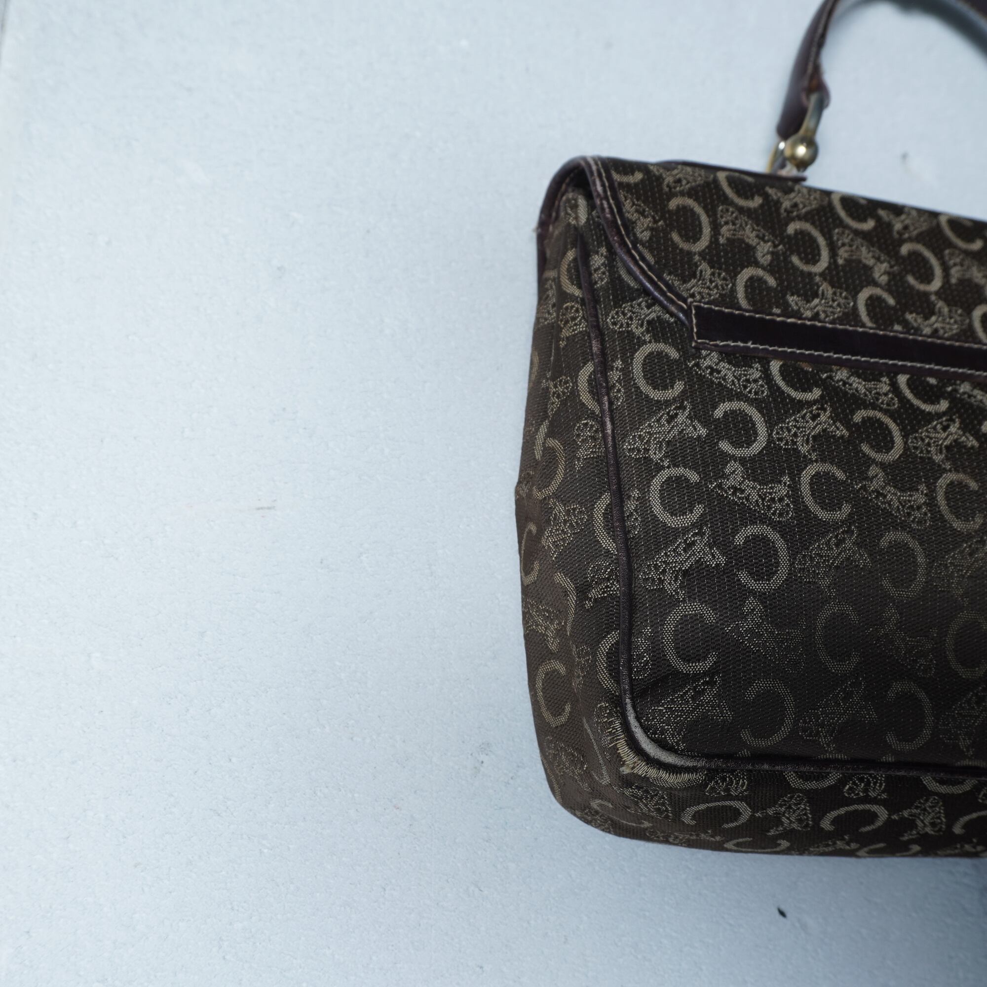 【CELINE】セリーヌ 馬車・Cロゴ総柄レザー切替ハンドバッグ brown