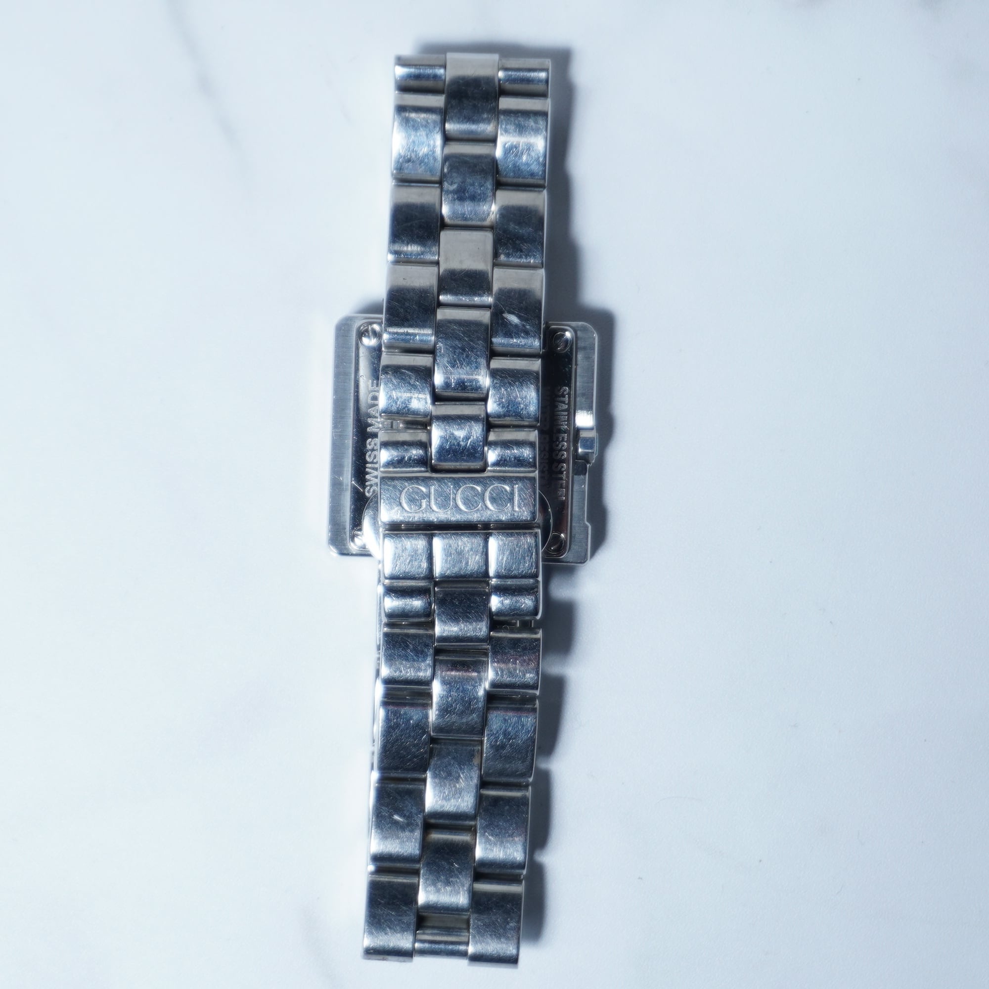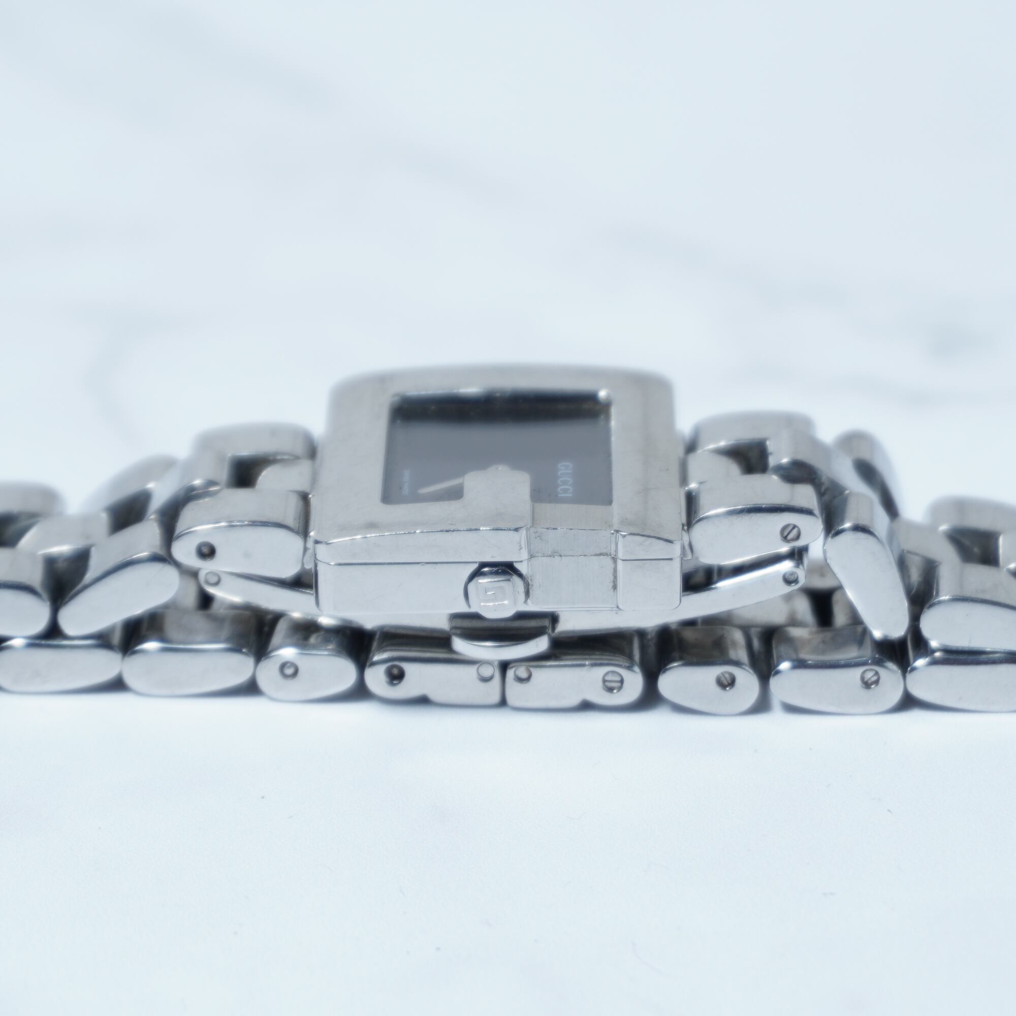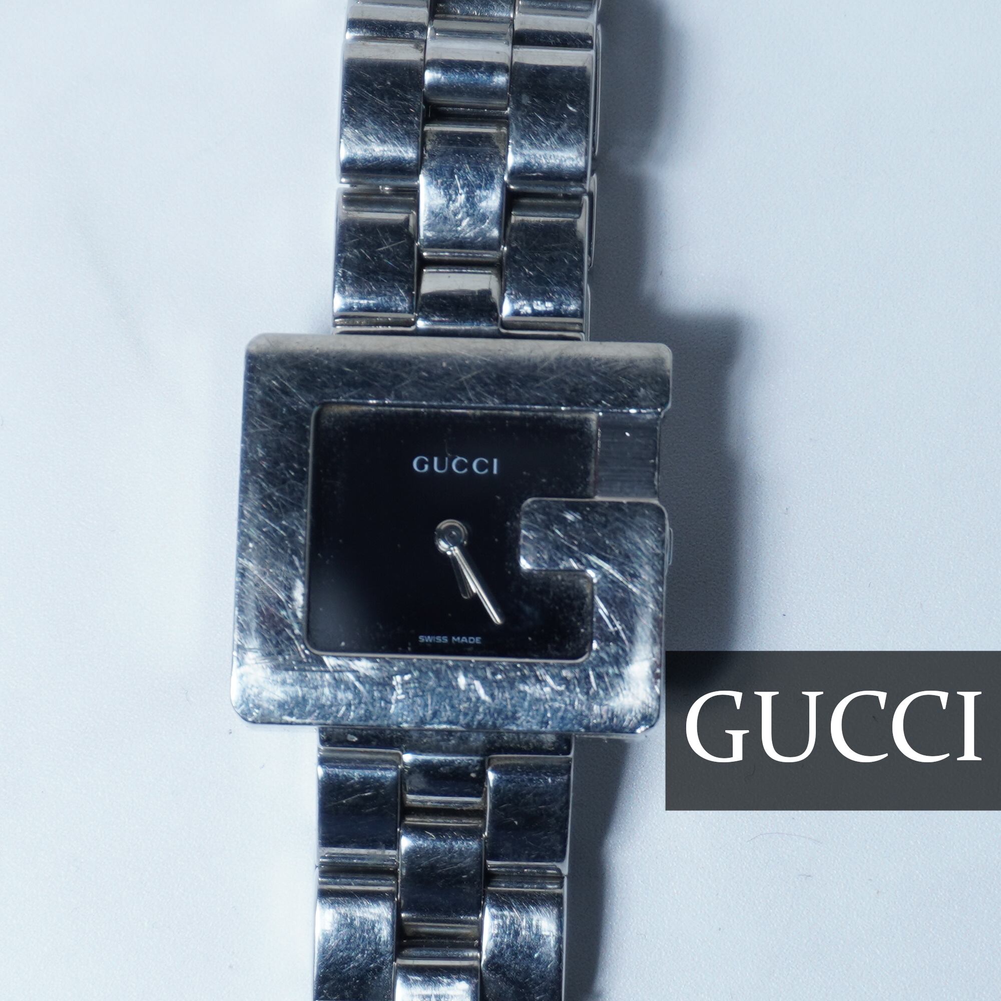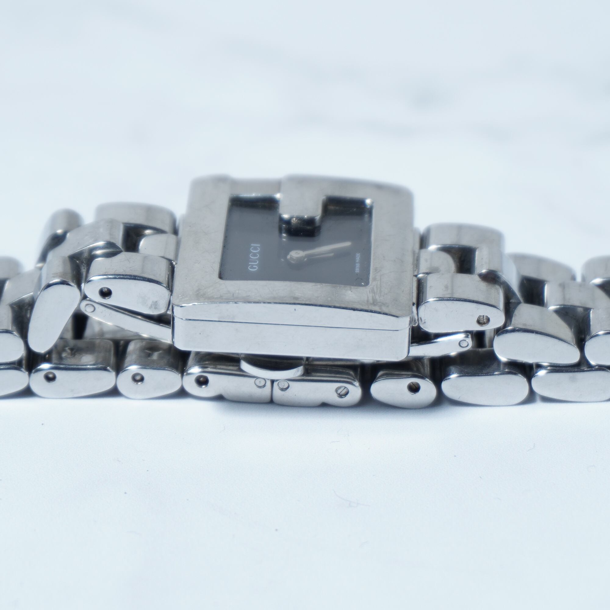 【GUCCI】グッチ ”Gロゴモチーフ”稼働品 ブラックフェイスクウォーツウォッチ silver