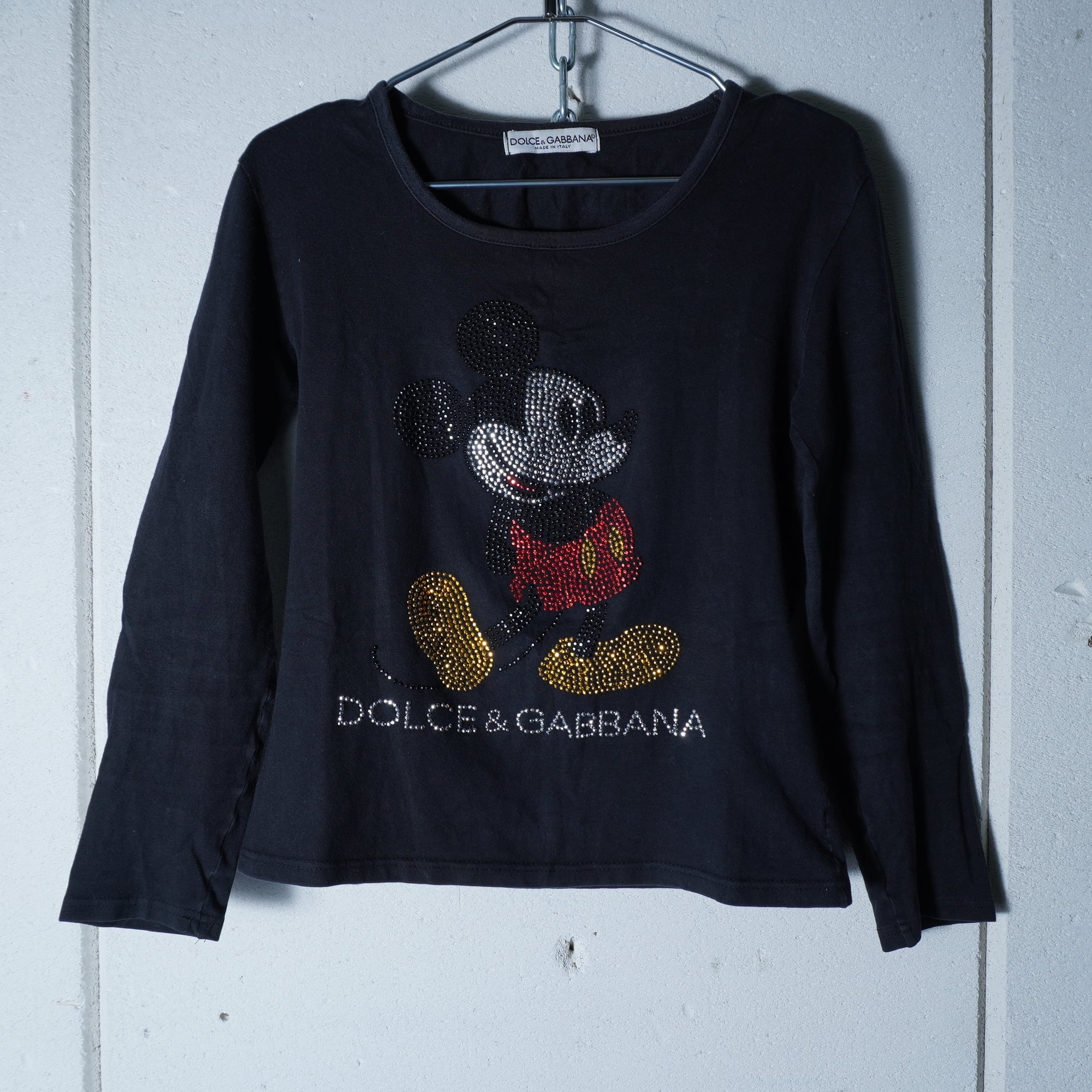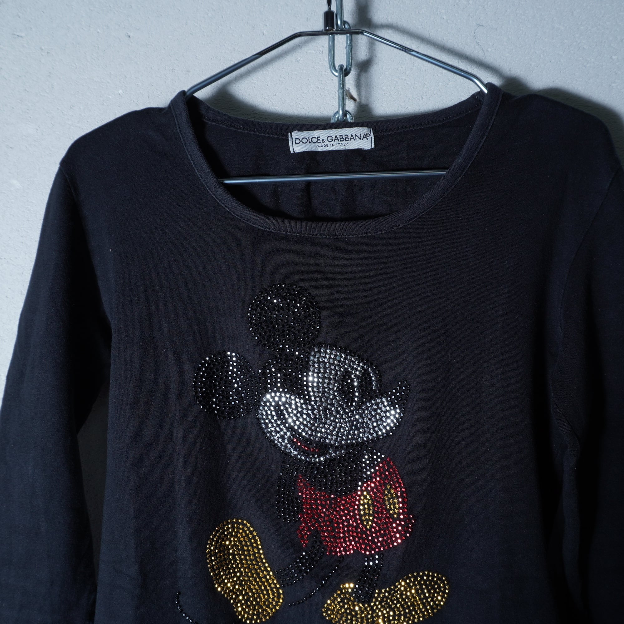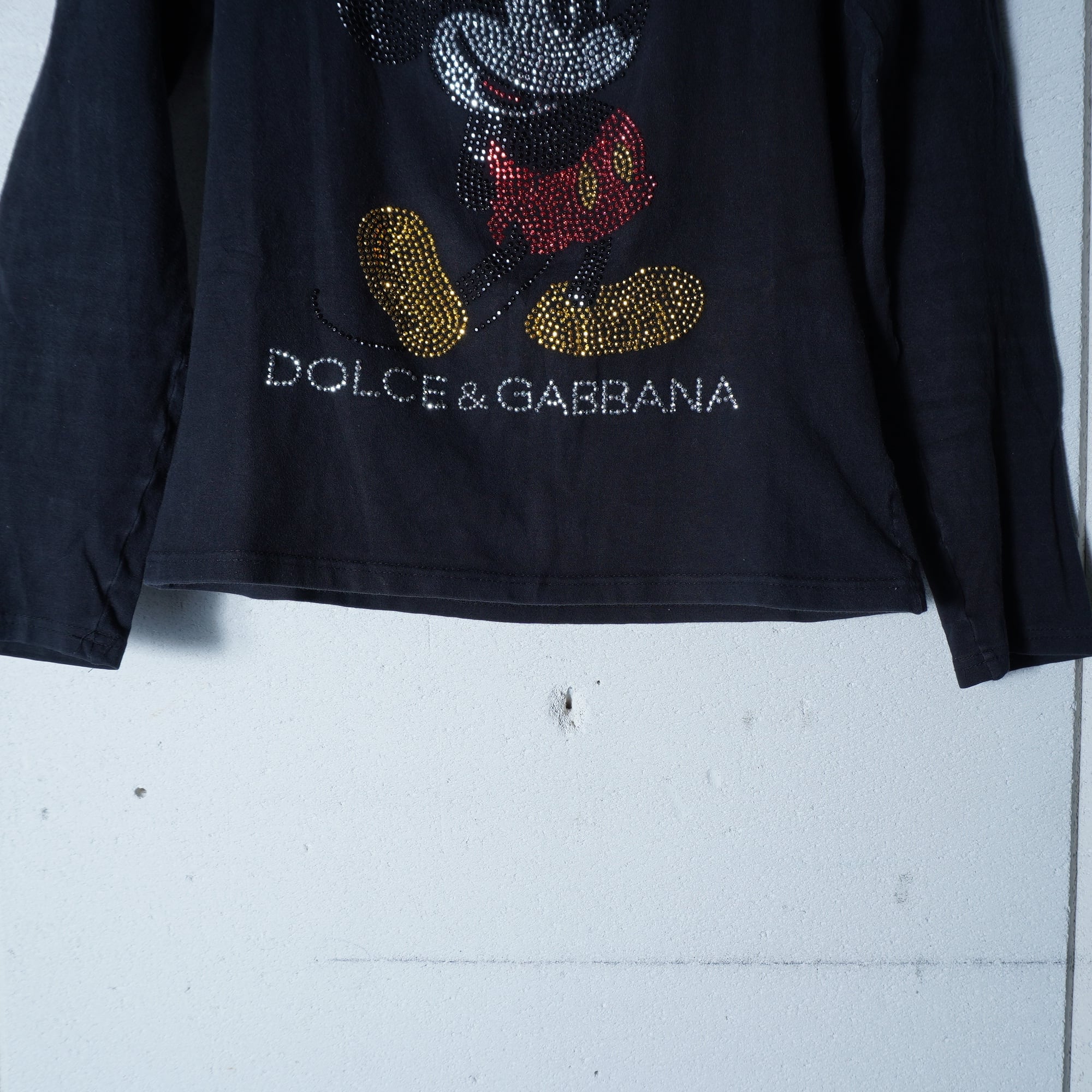 【DOLCE&GABBANA】ドルチェ&ガッバーナ Y2K "ラインストーン ロゴ・ミッキー" ロングスリーブTシャツ black