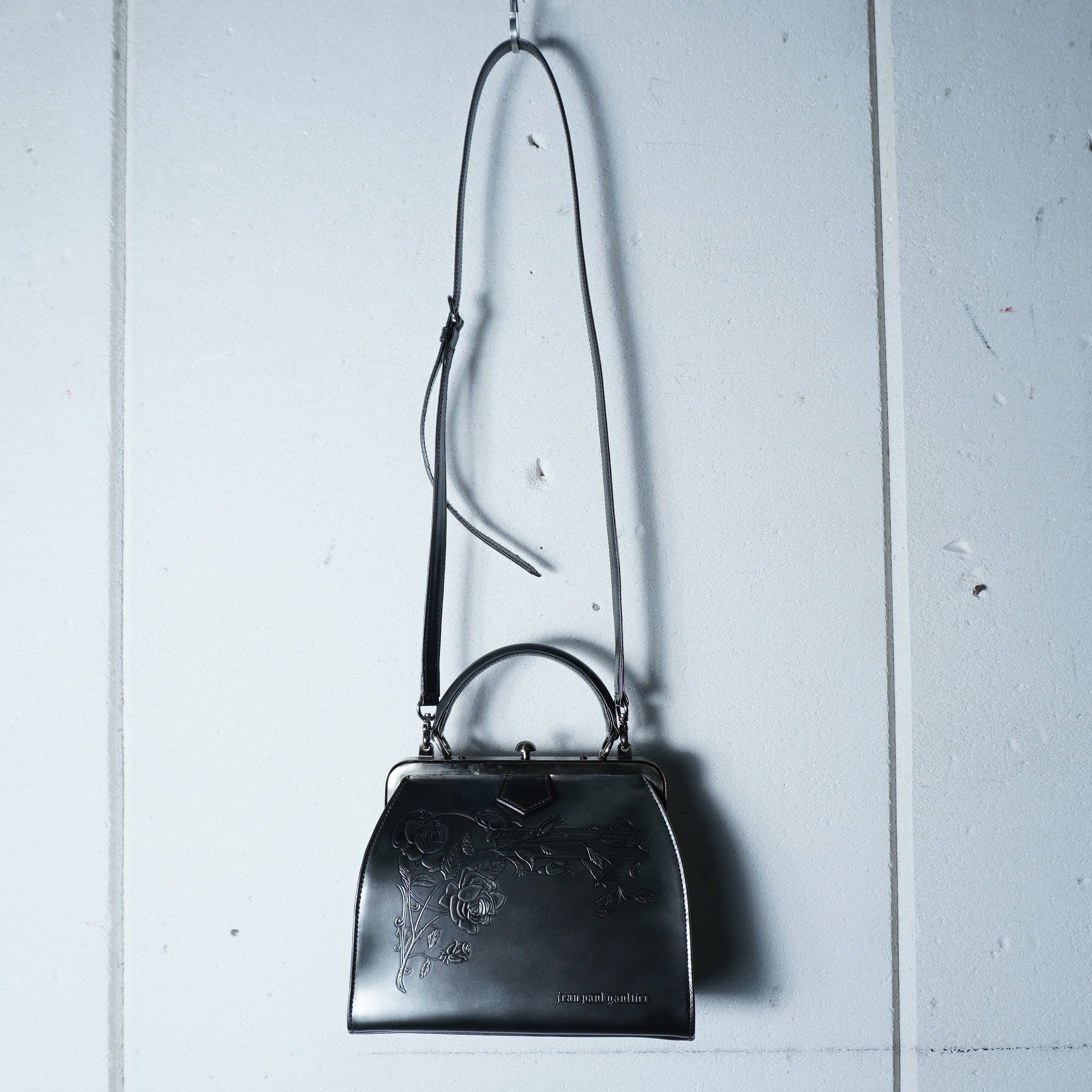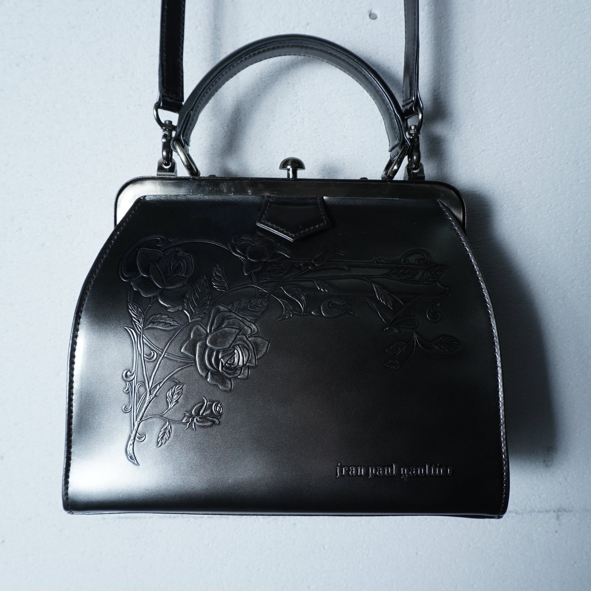 【Jean Paul GAULTIER】ジャンポールゴルチエ ””ARCHIVE" ロゴ入ニューローズレザー2WAYショルダーバッグ blackgray
