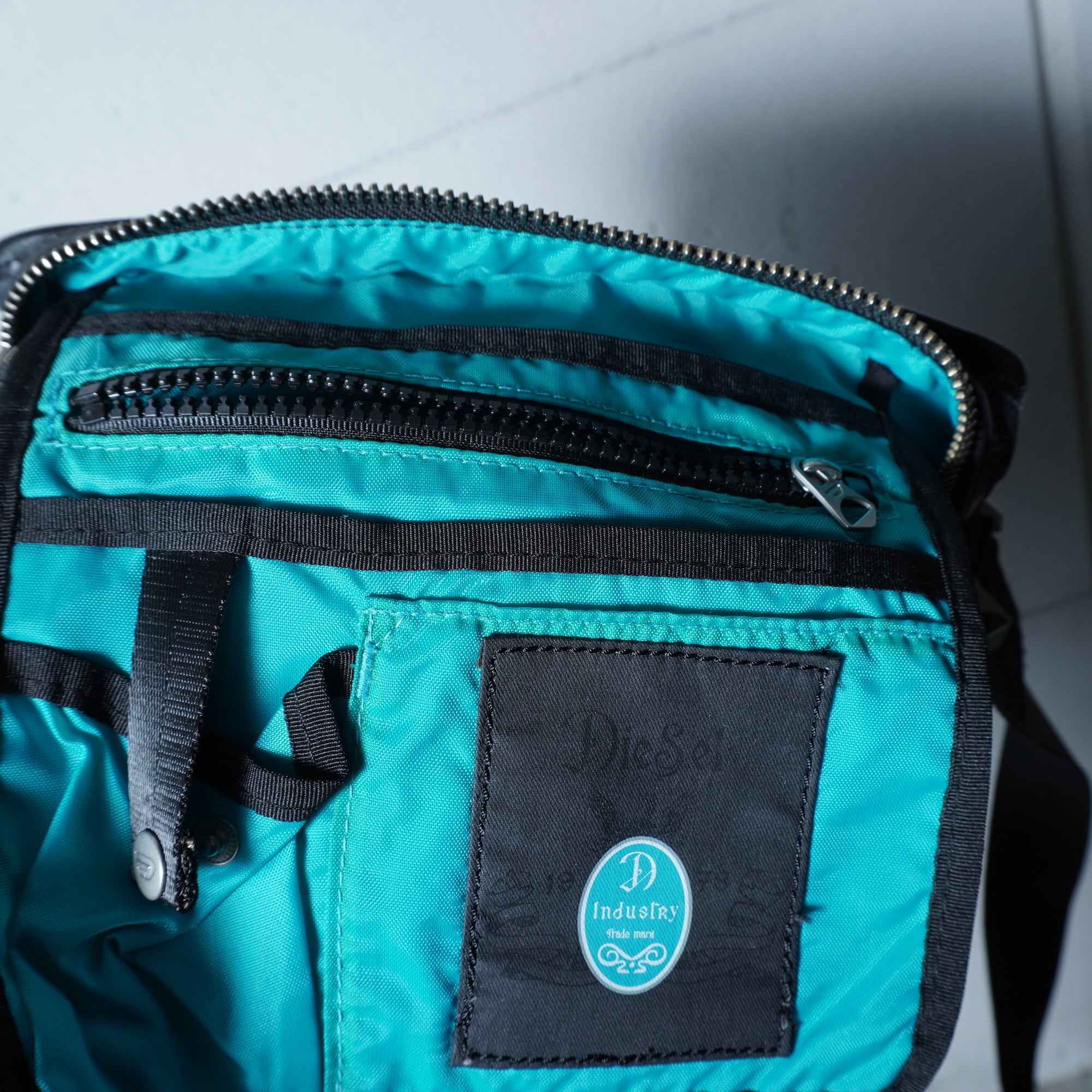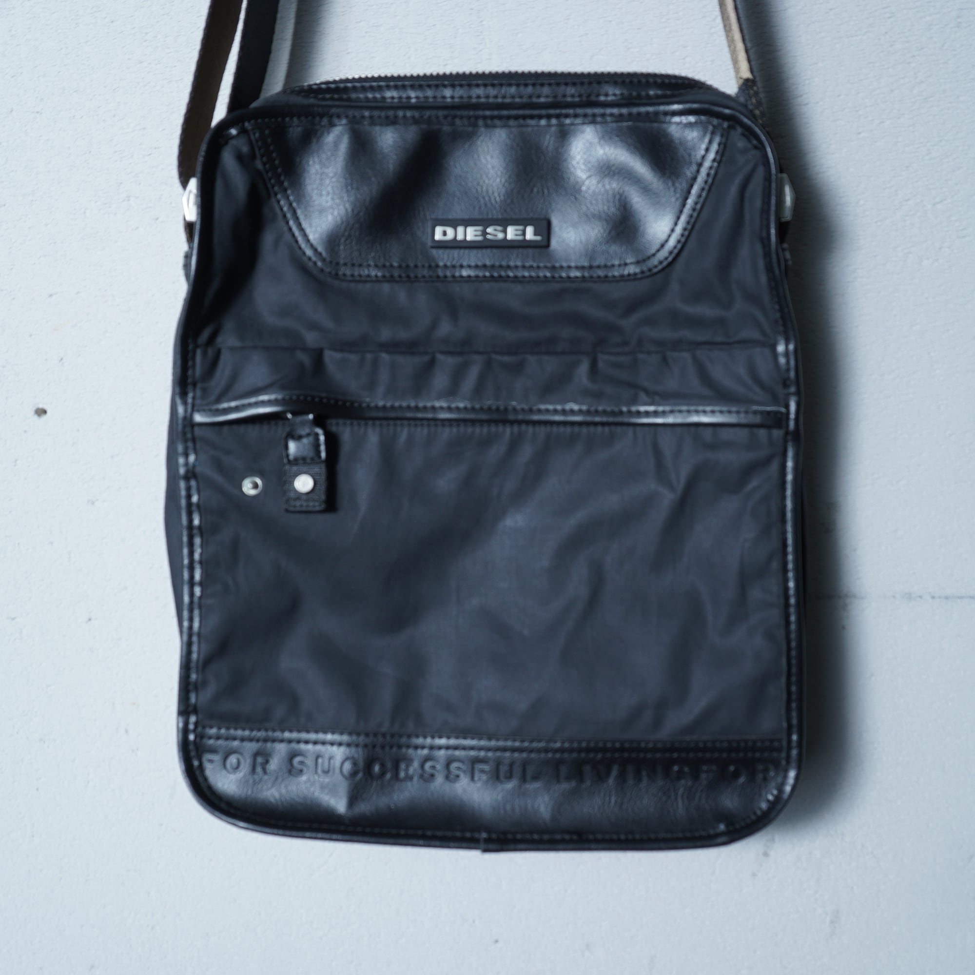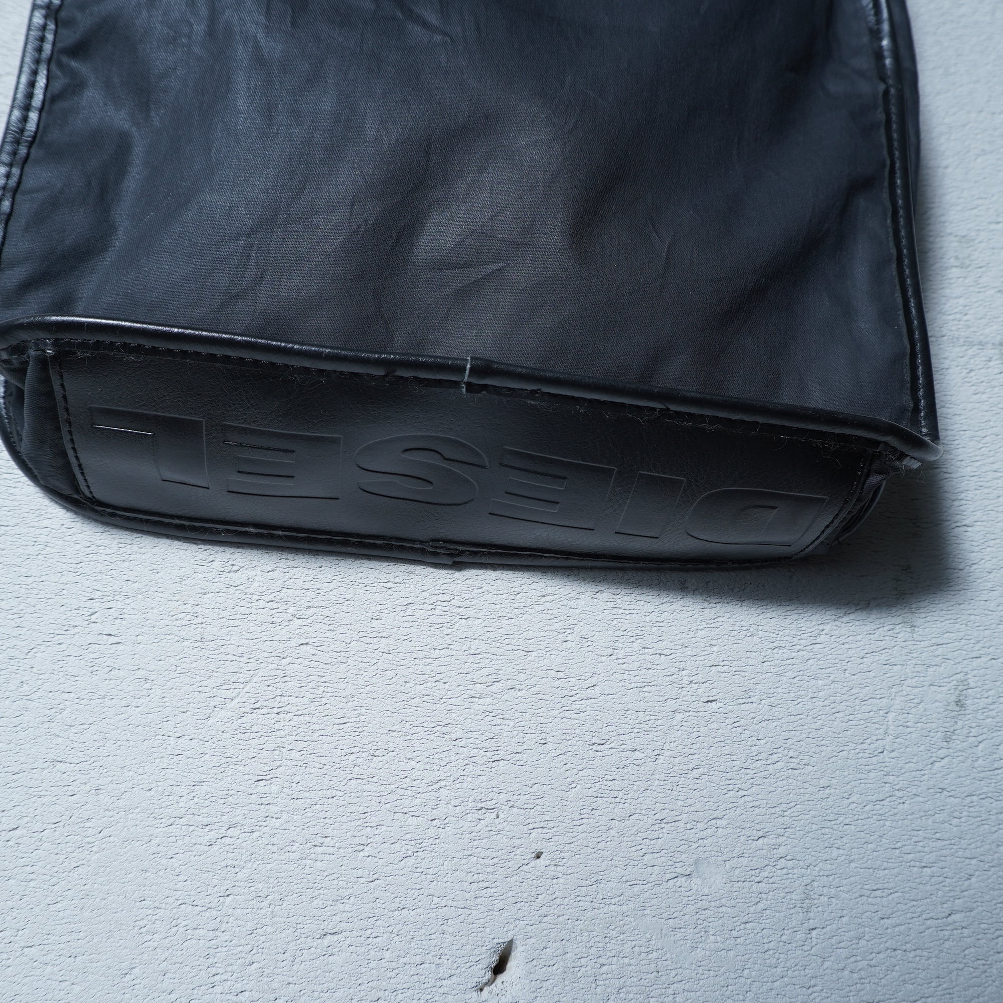 【DIESEL】ディーゼル ”dark wear"ロゴ入ナイロン・レザーショルダーバッグ black