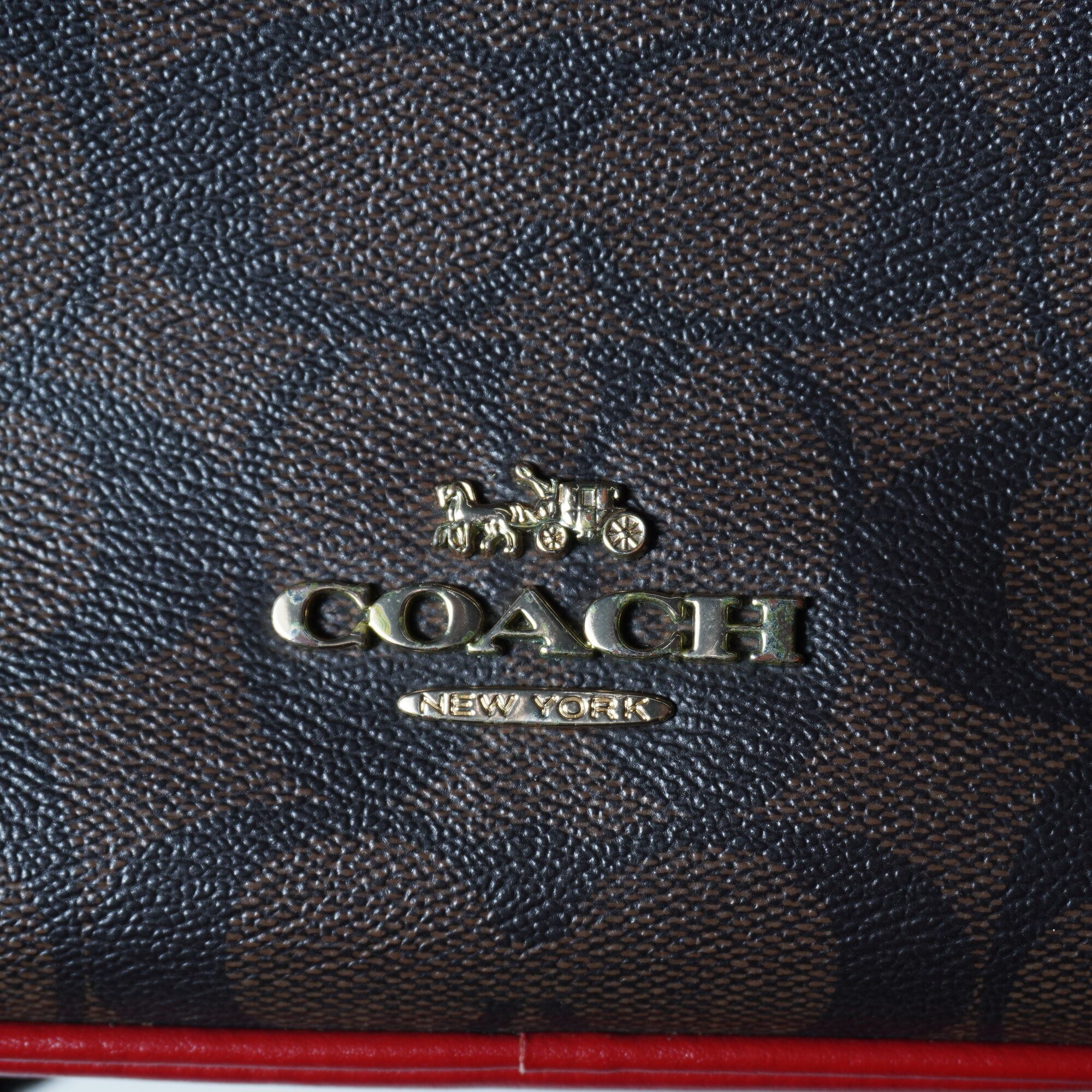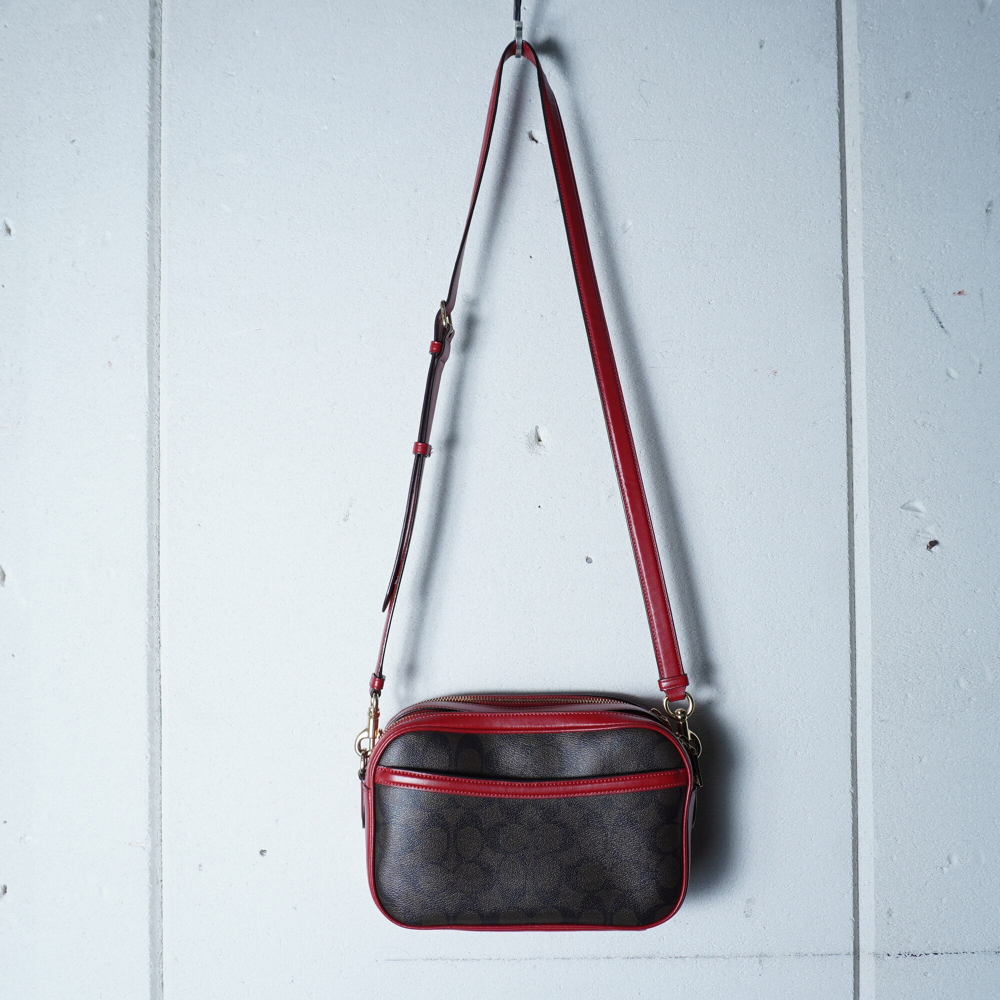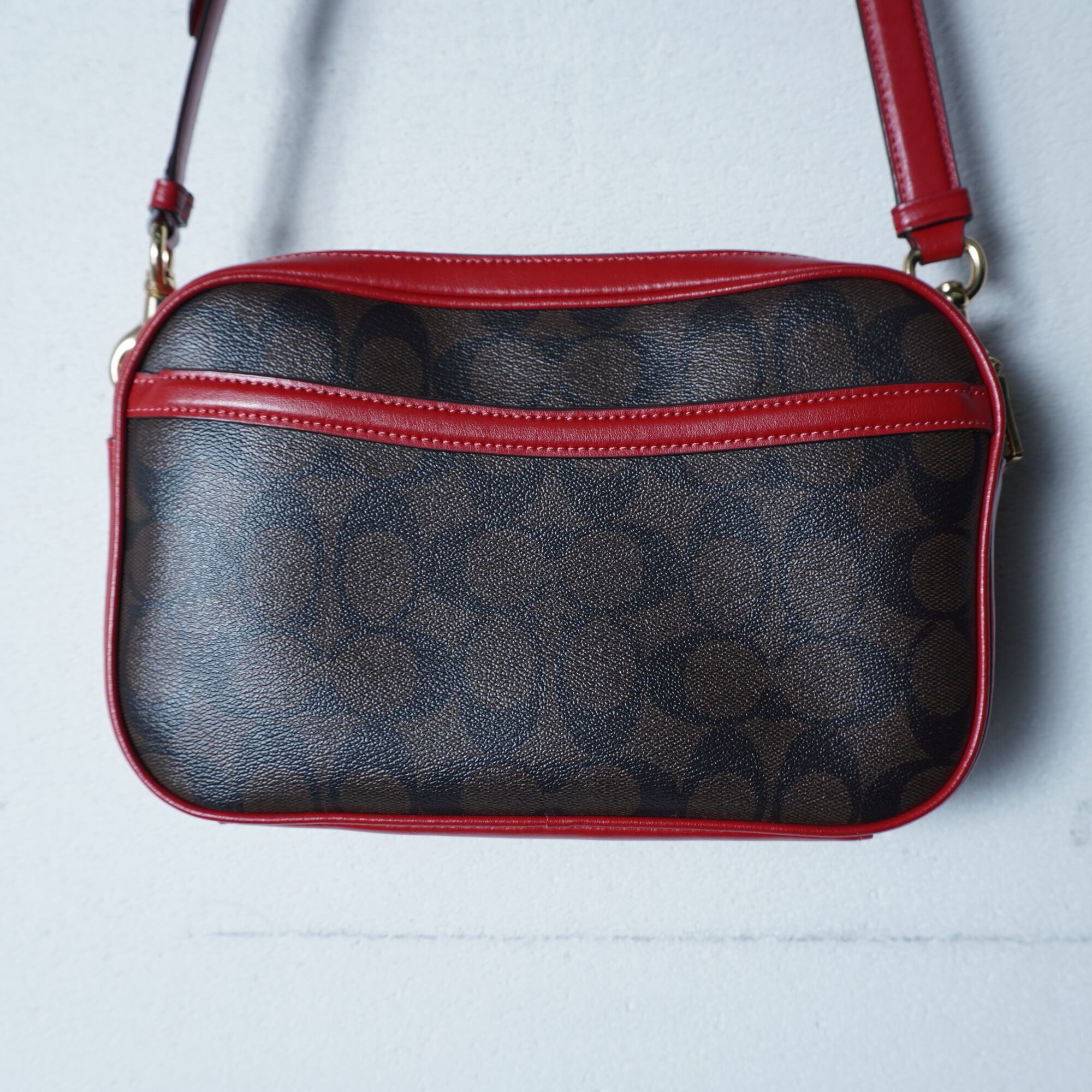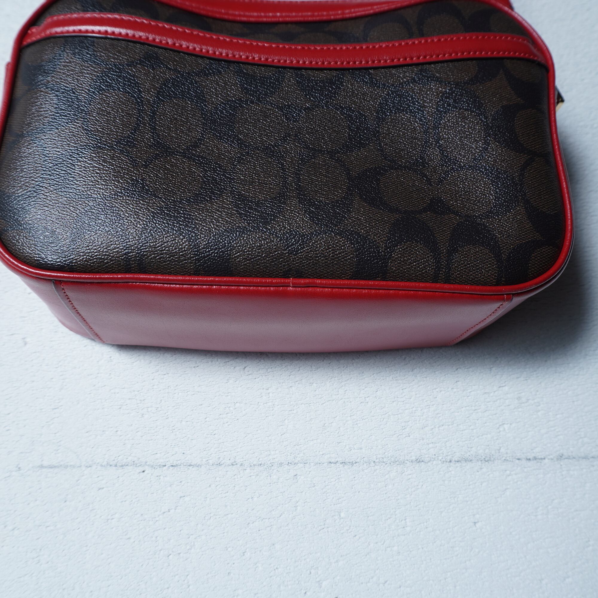 【COACH】コーチ シグネチャー柄レザーショルダーバッグ brown&red