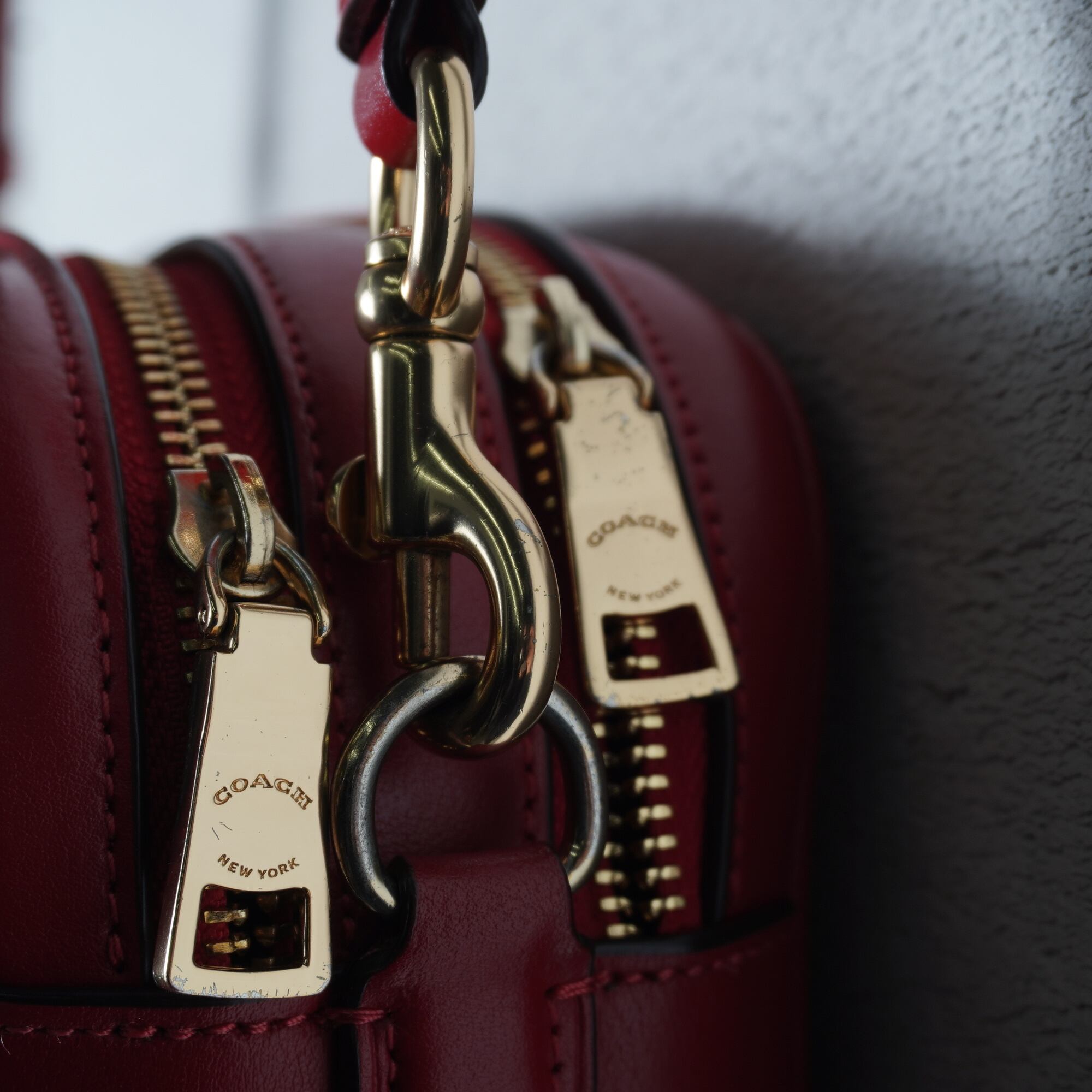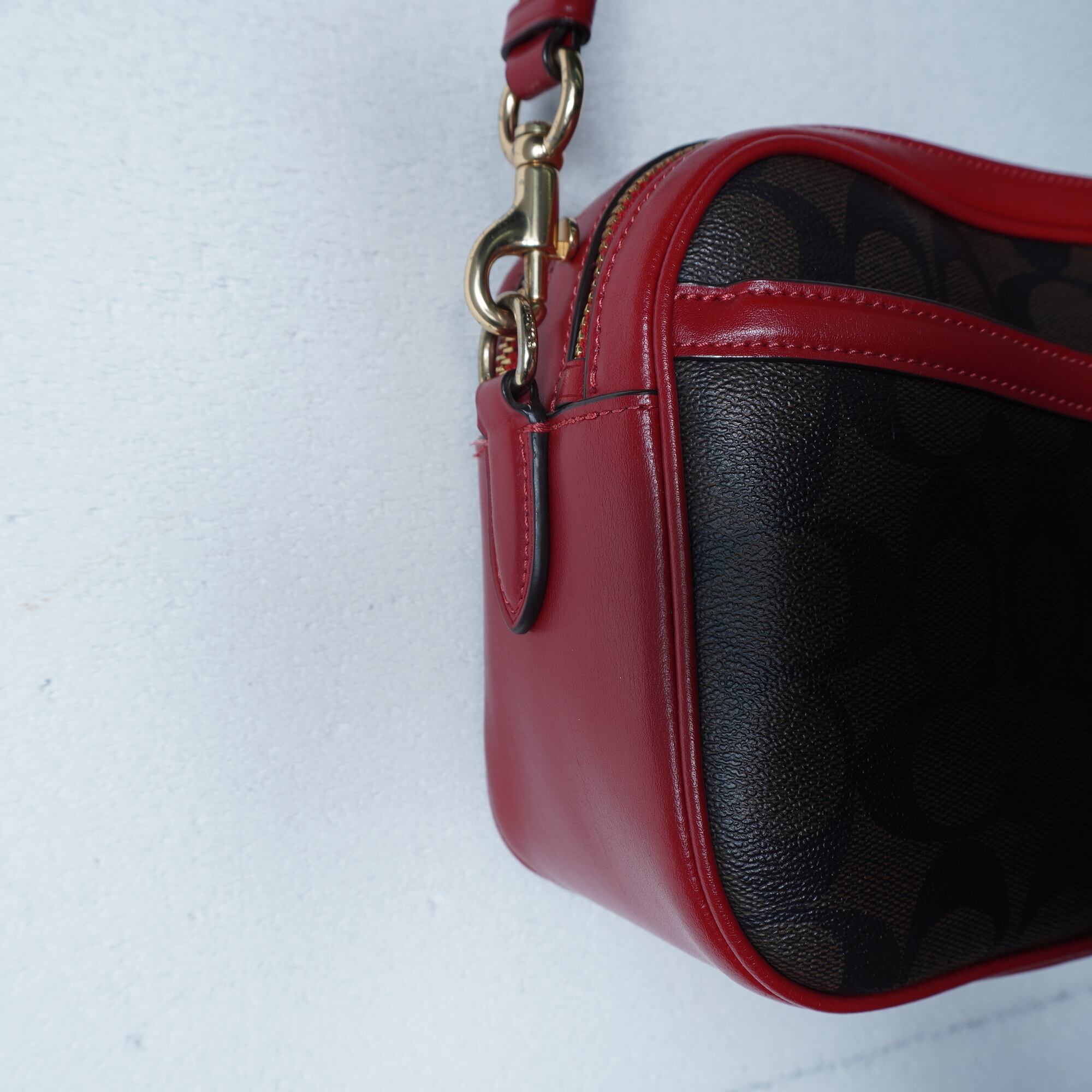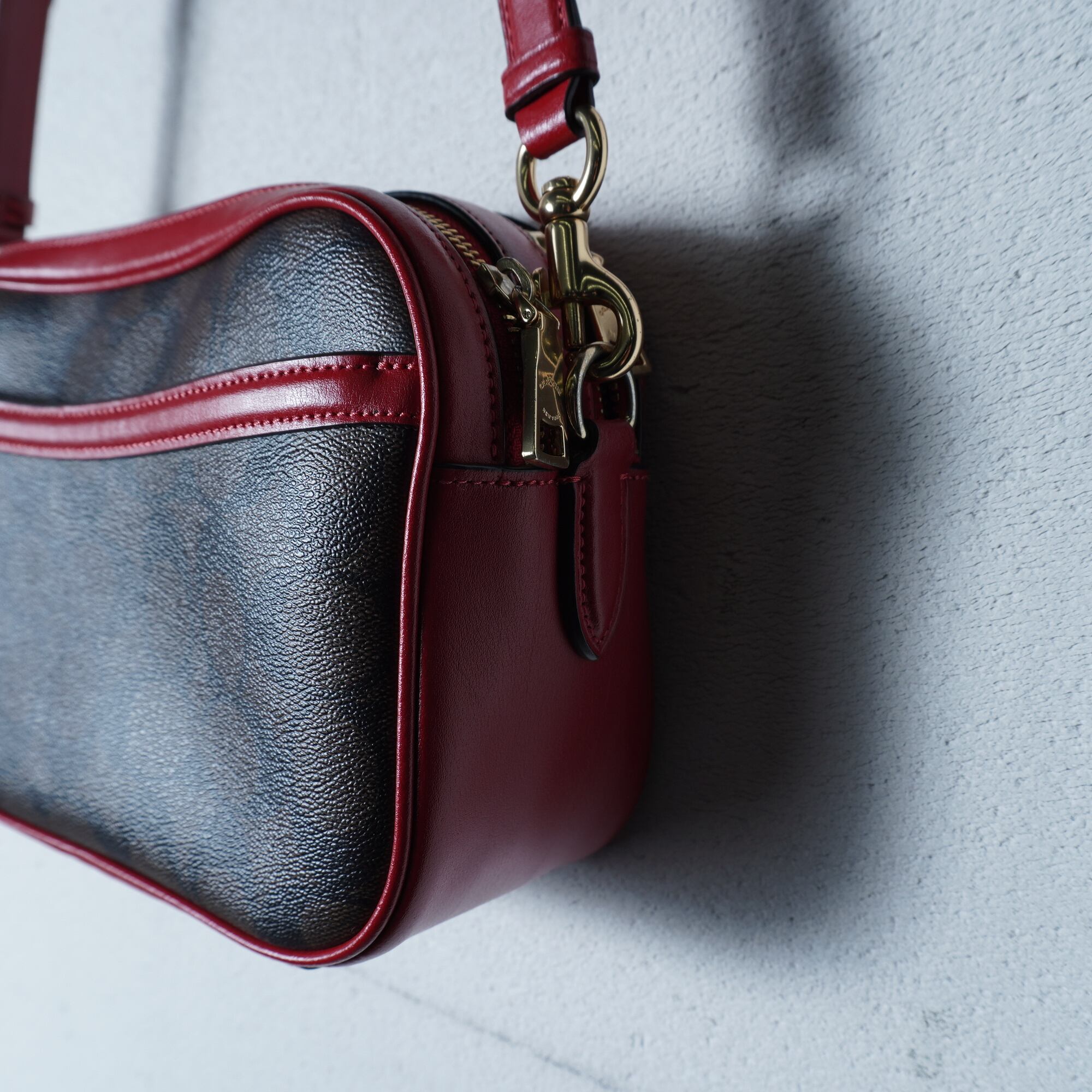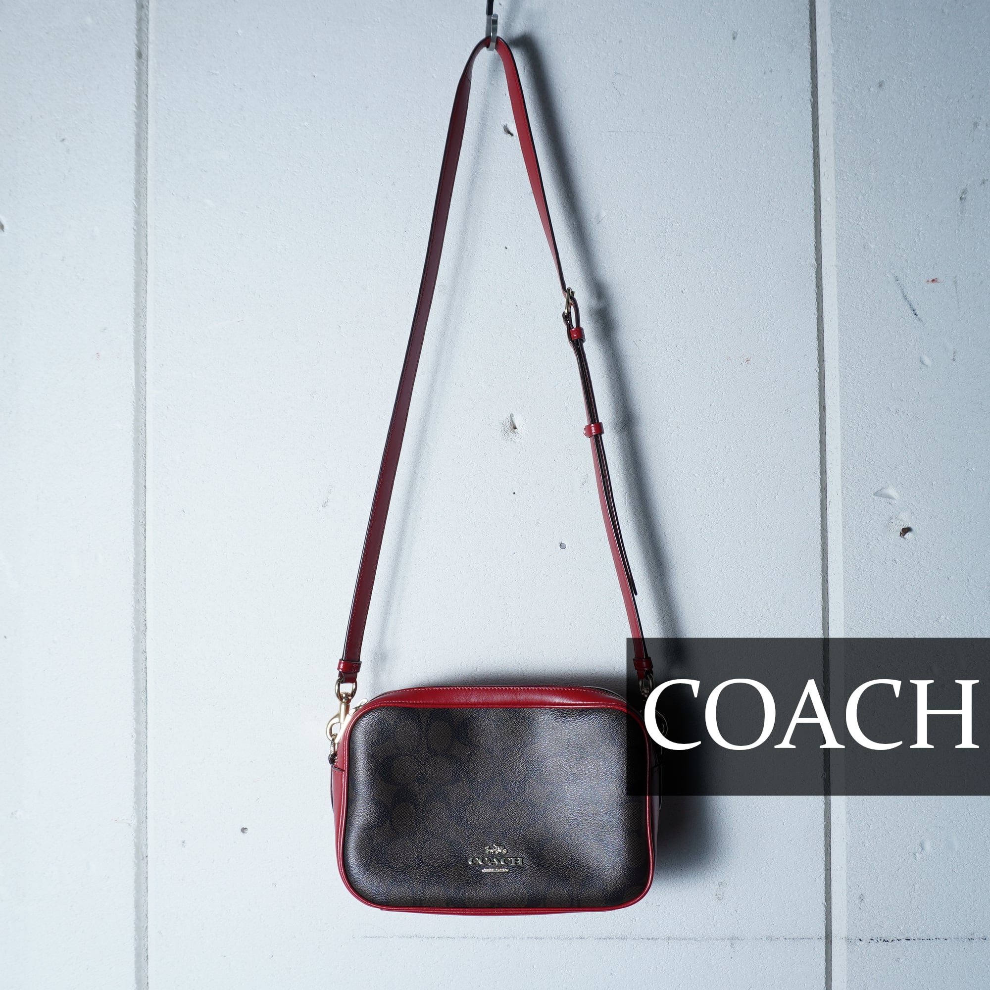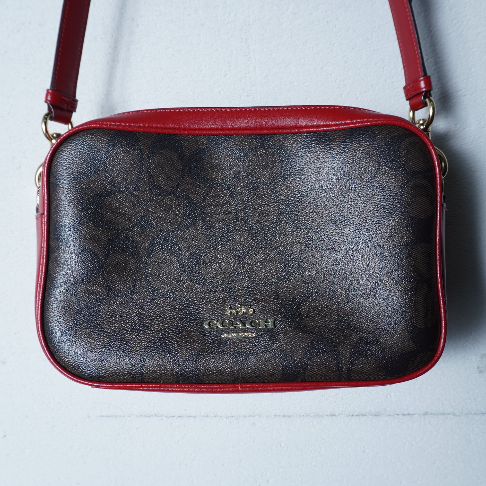 【COACH】コーチ シグネチャー柄レザーショルダーバッグ brown&red