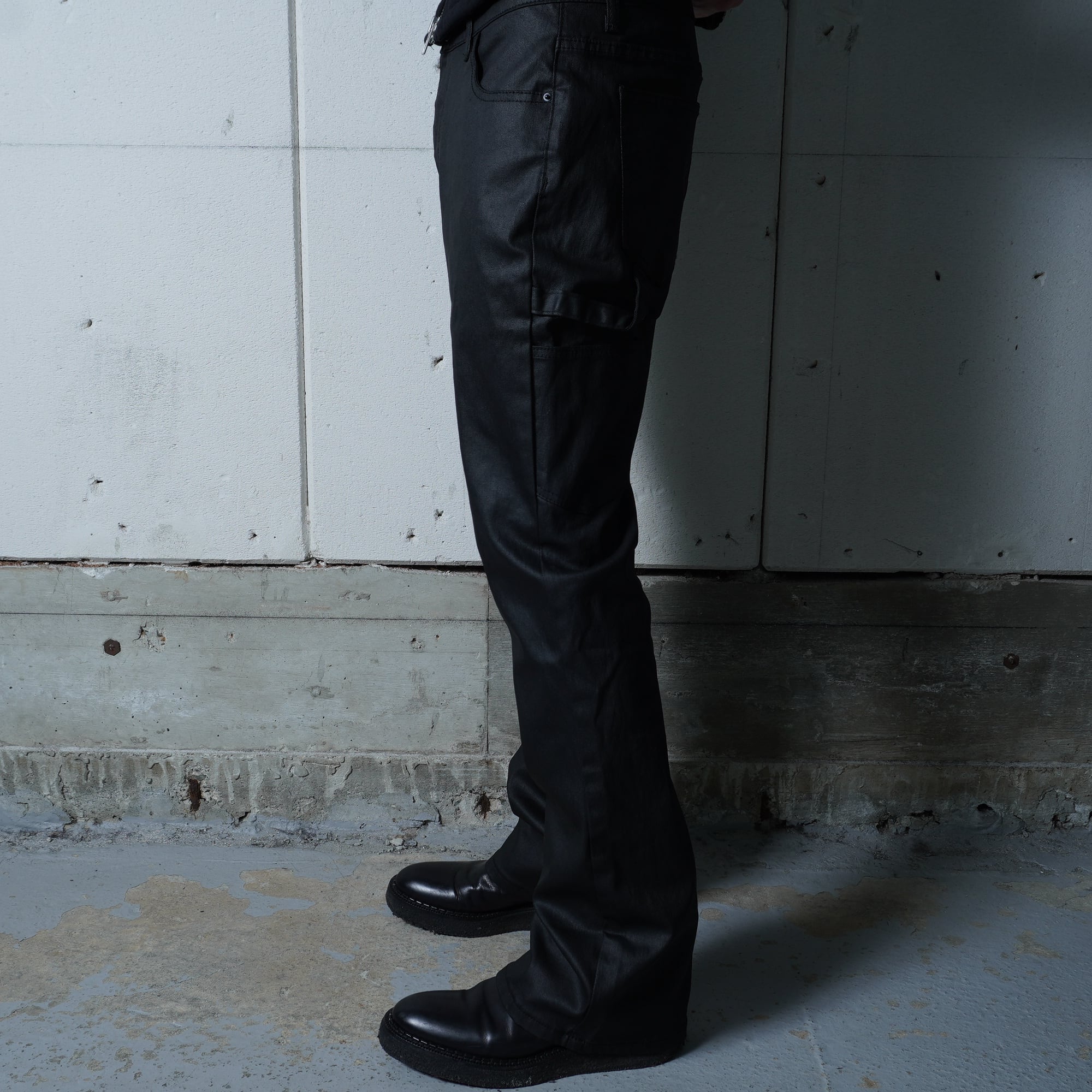 【dark wear】コーティングフレアデニムパンツ black