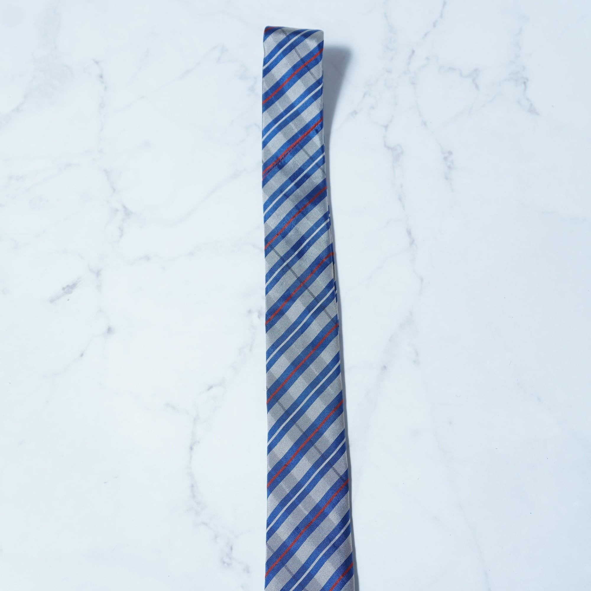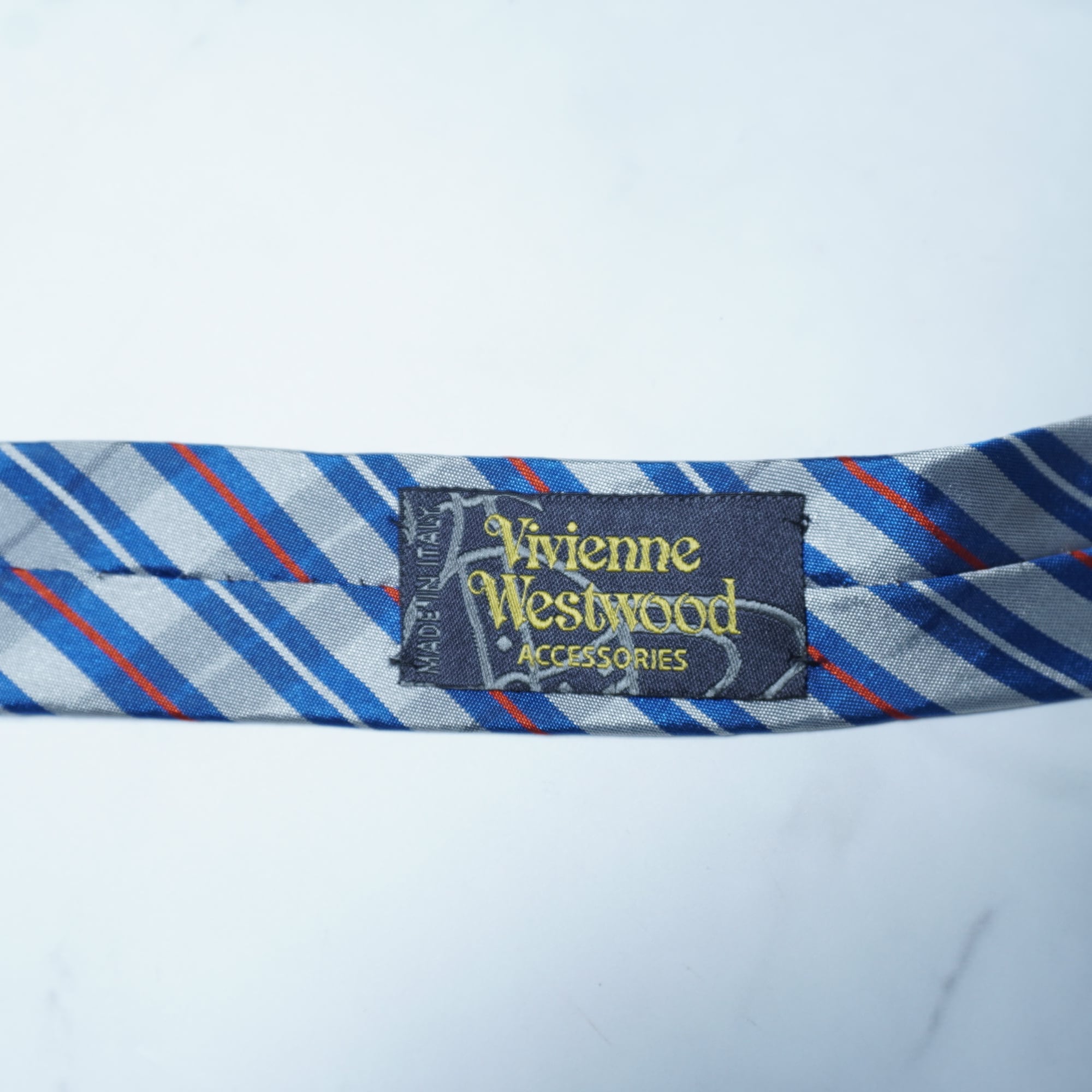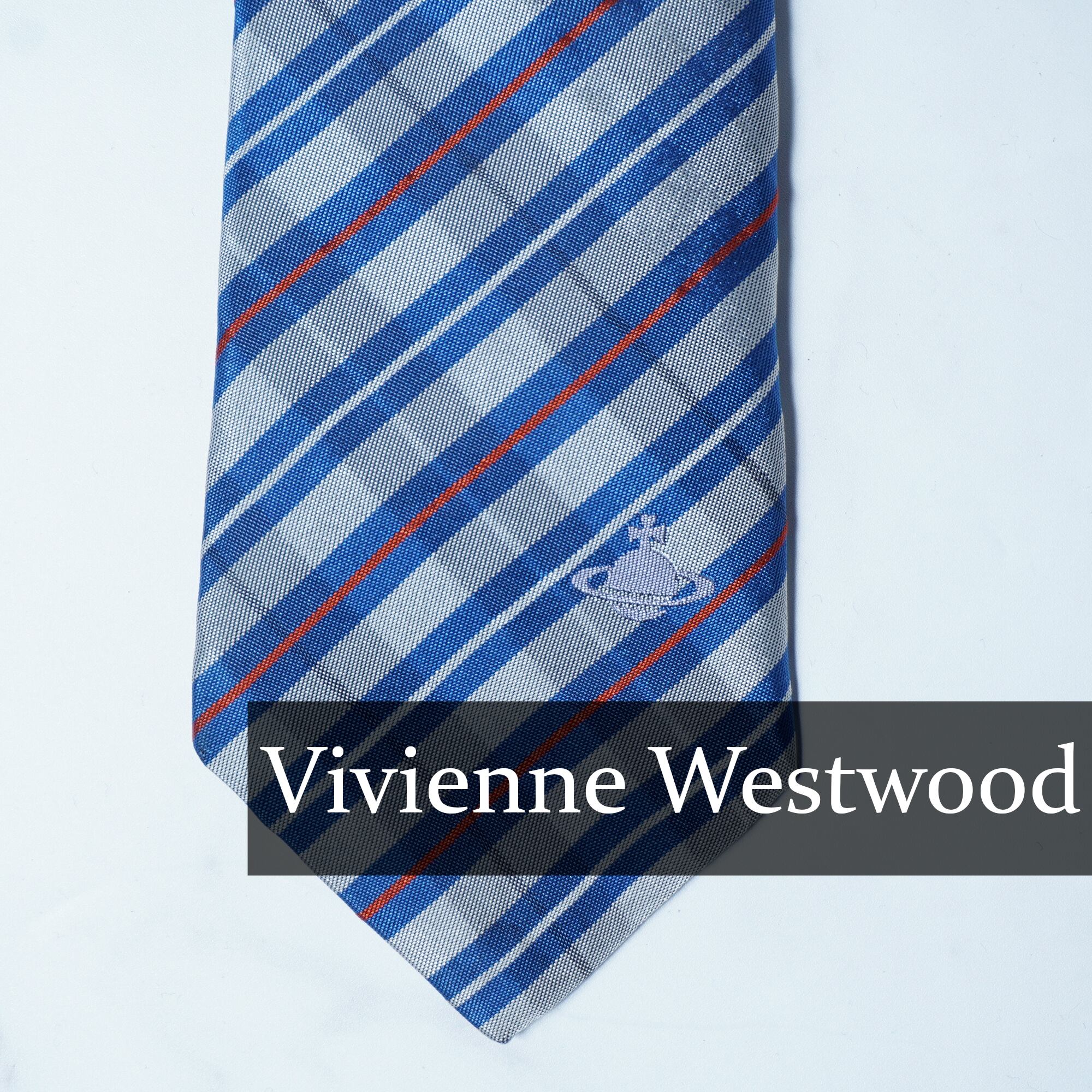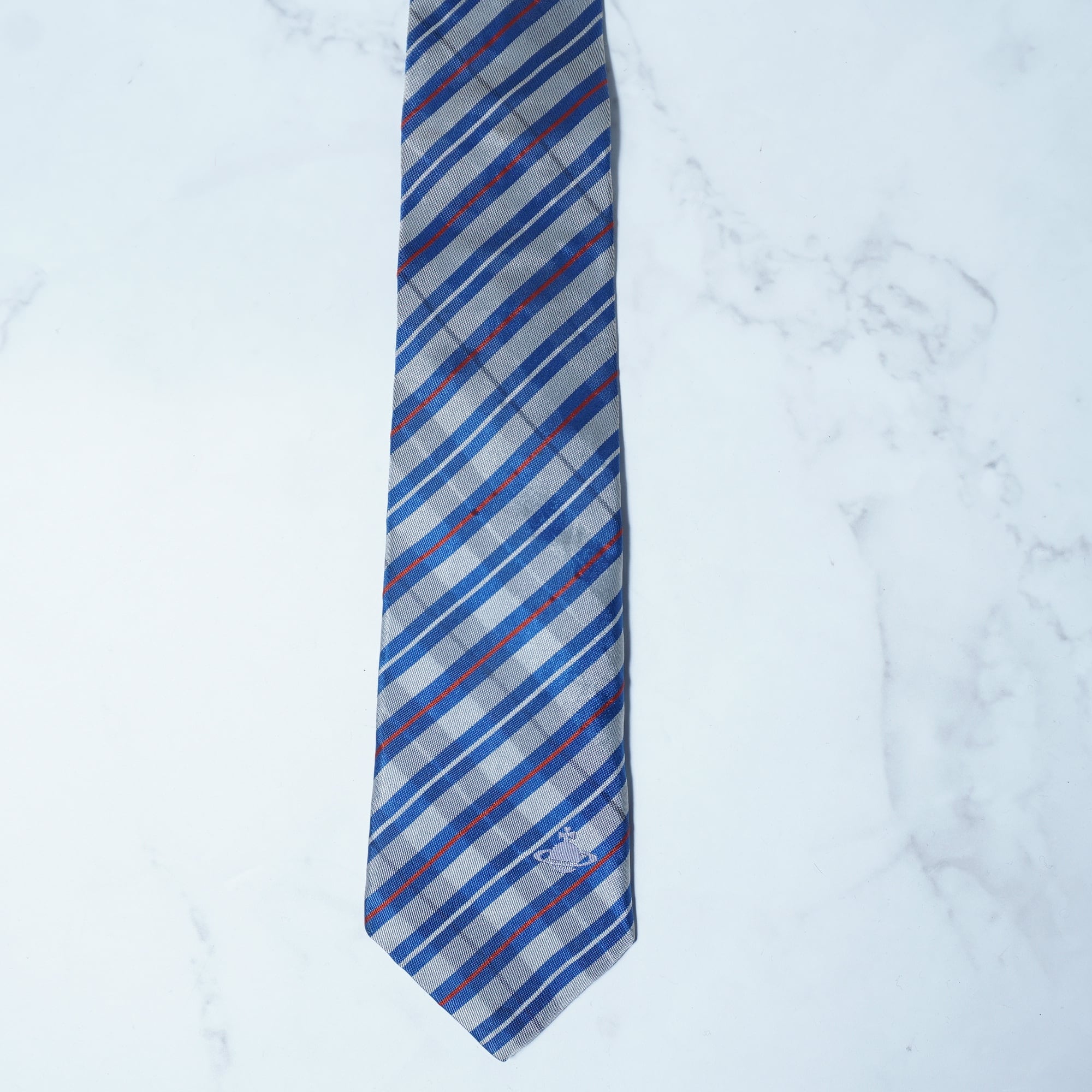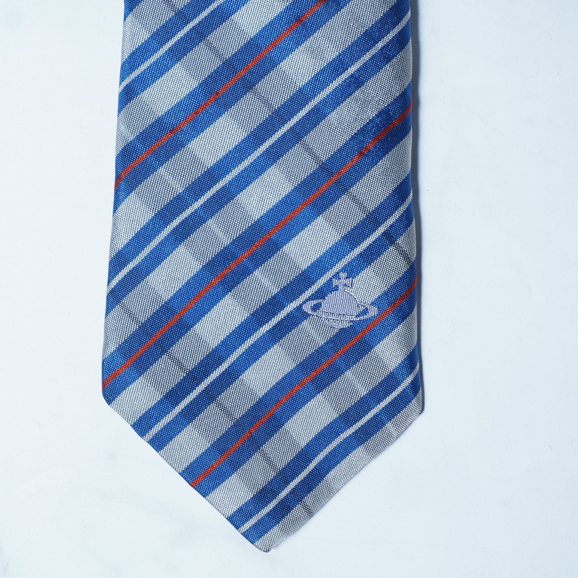 【Vivienne Westwood】ヴィヴィアンウエストウッド オーブロゴ SILK100%レジメンタルネクタイ gray&blue&red