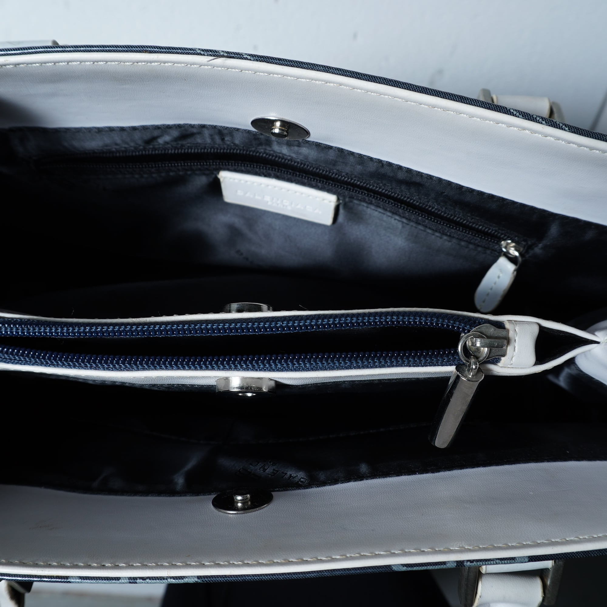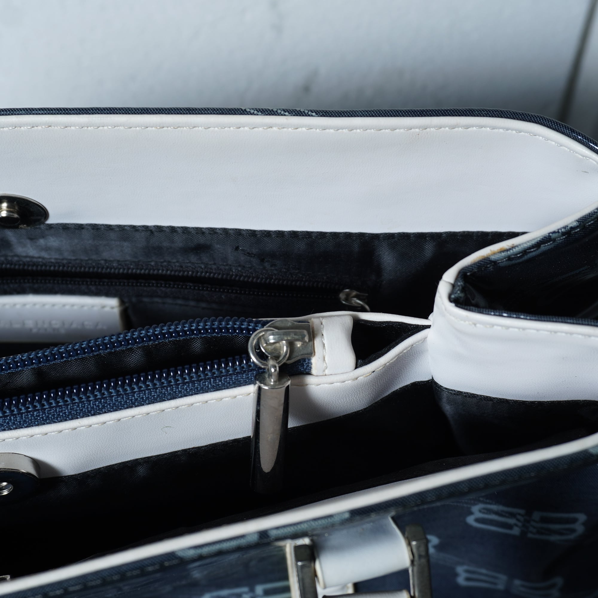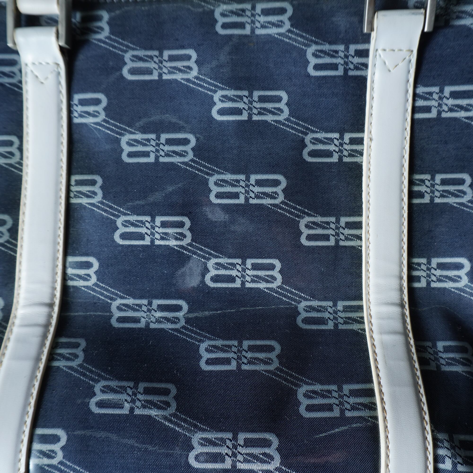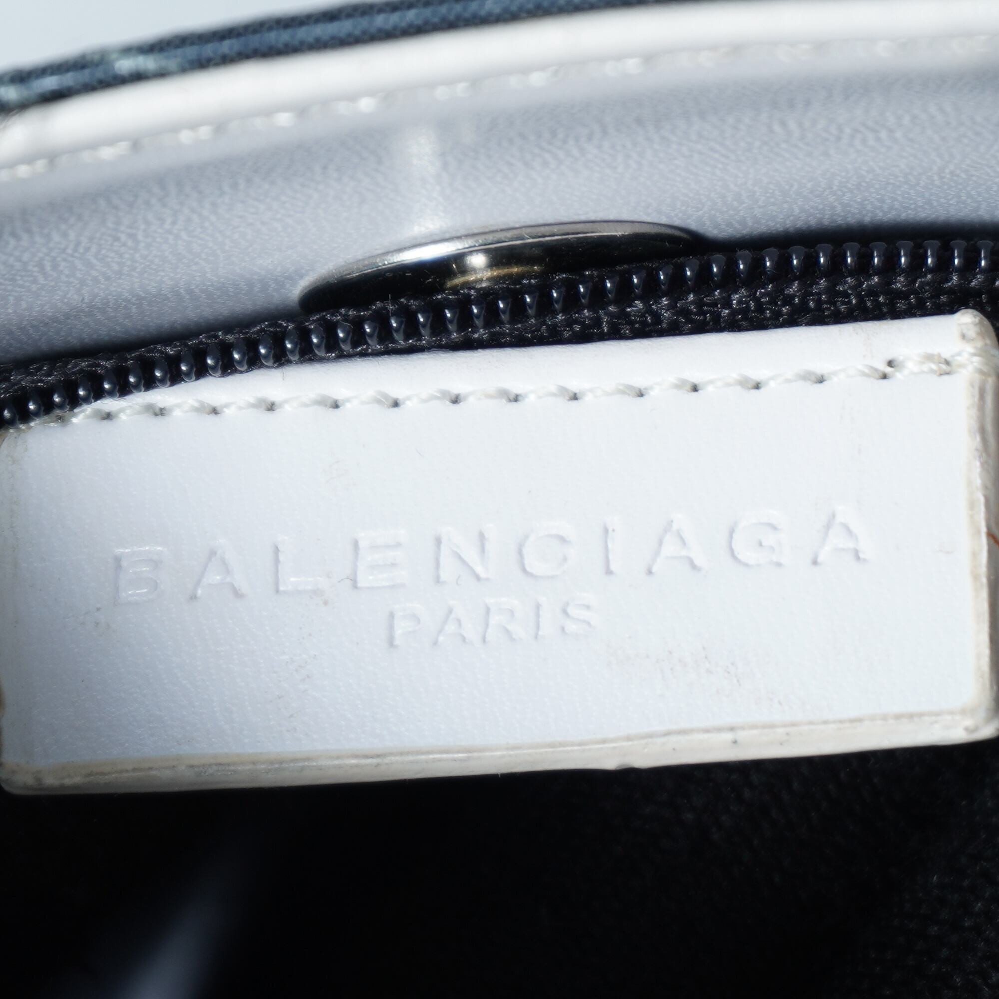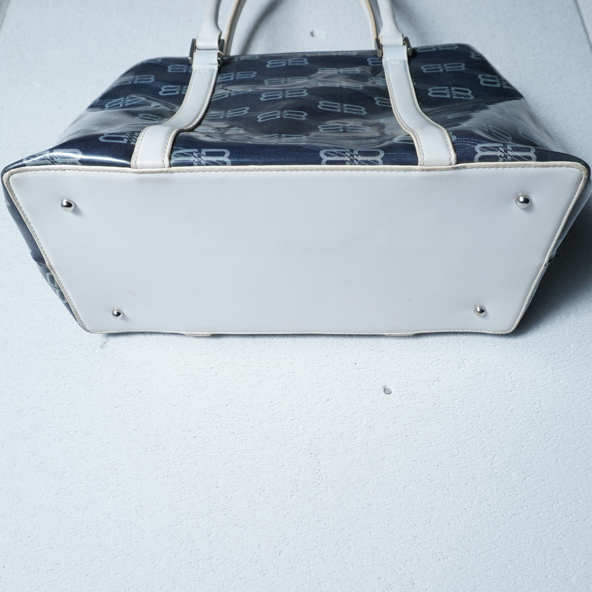 【BALENCIAGA】バレンシアガ BBロゴ ライセンス品 PVCコーティングキャンバス・レザーハンドバッグ navy&white