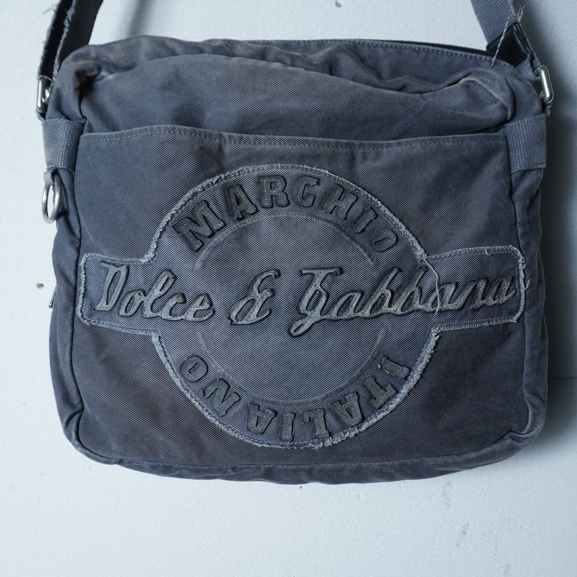 【DOLCE&GABBANA】ドルチェ&ガッバーナ "ARCHIVE" ロゴ入 帆布ショルダーバッグ gray