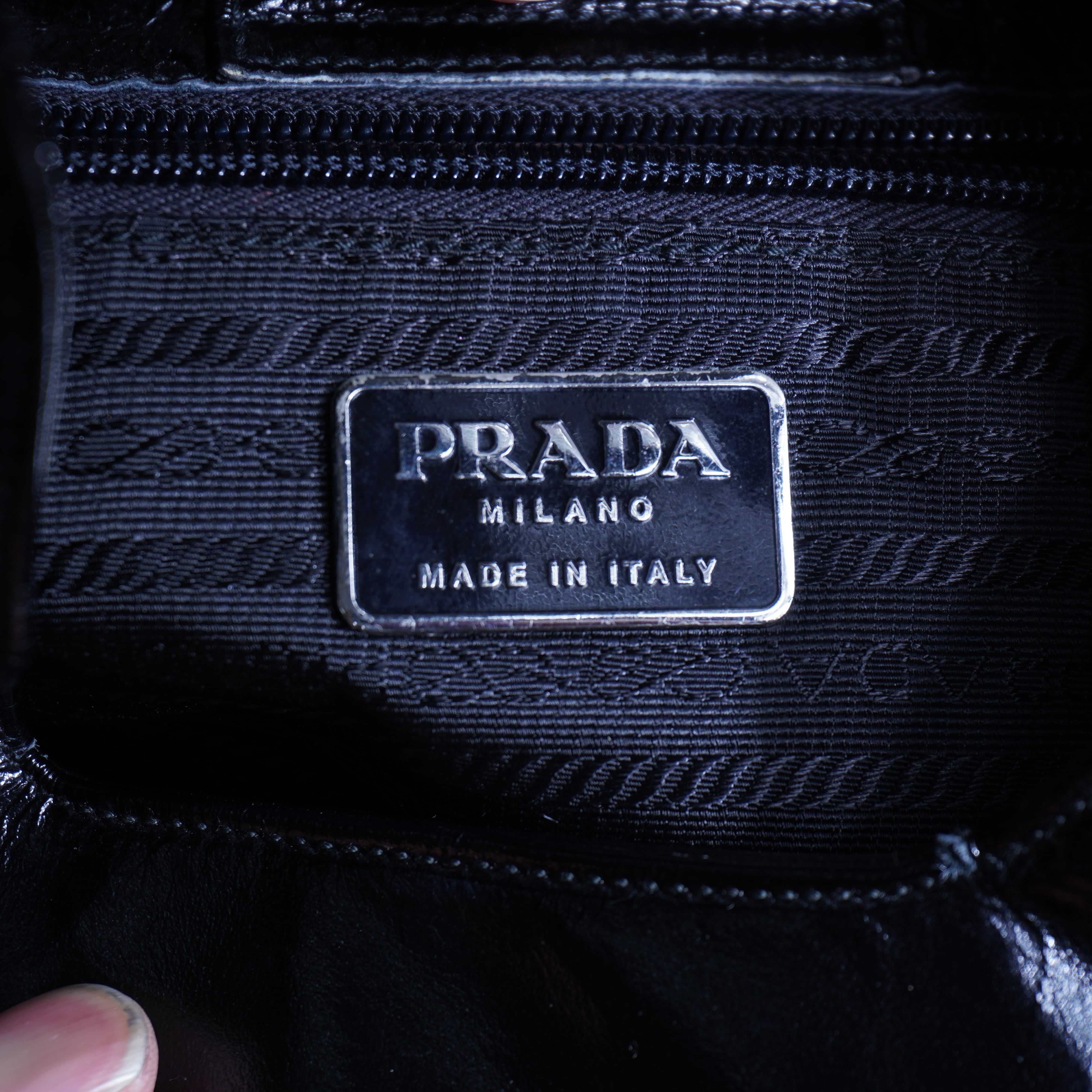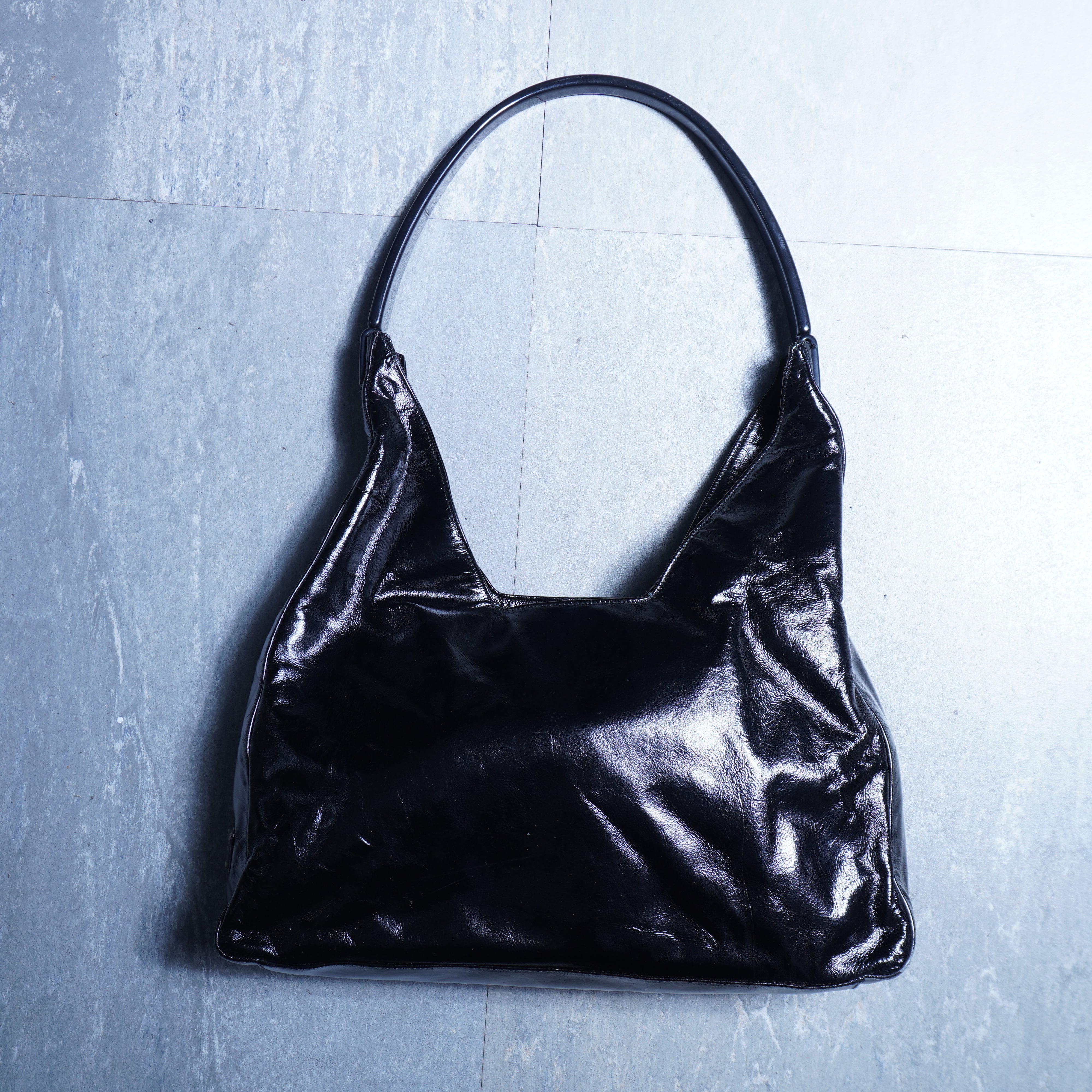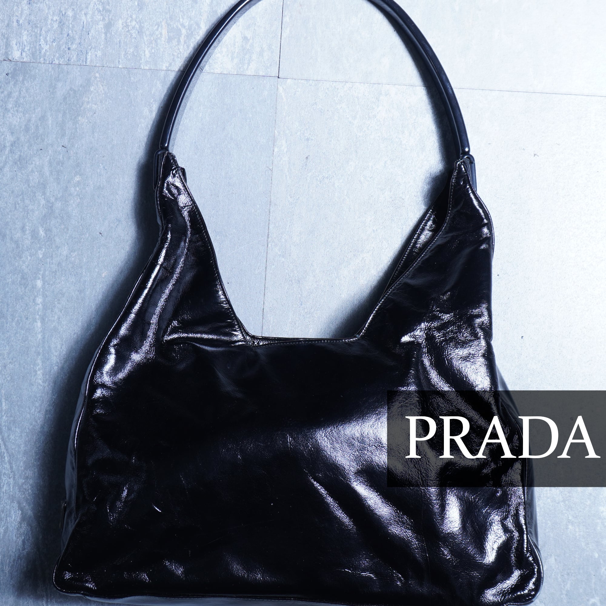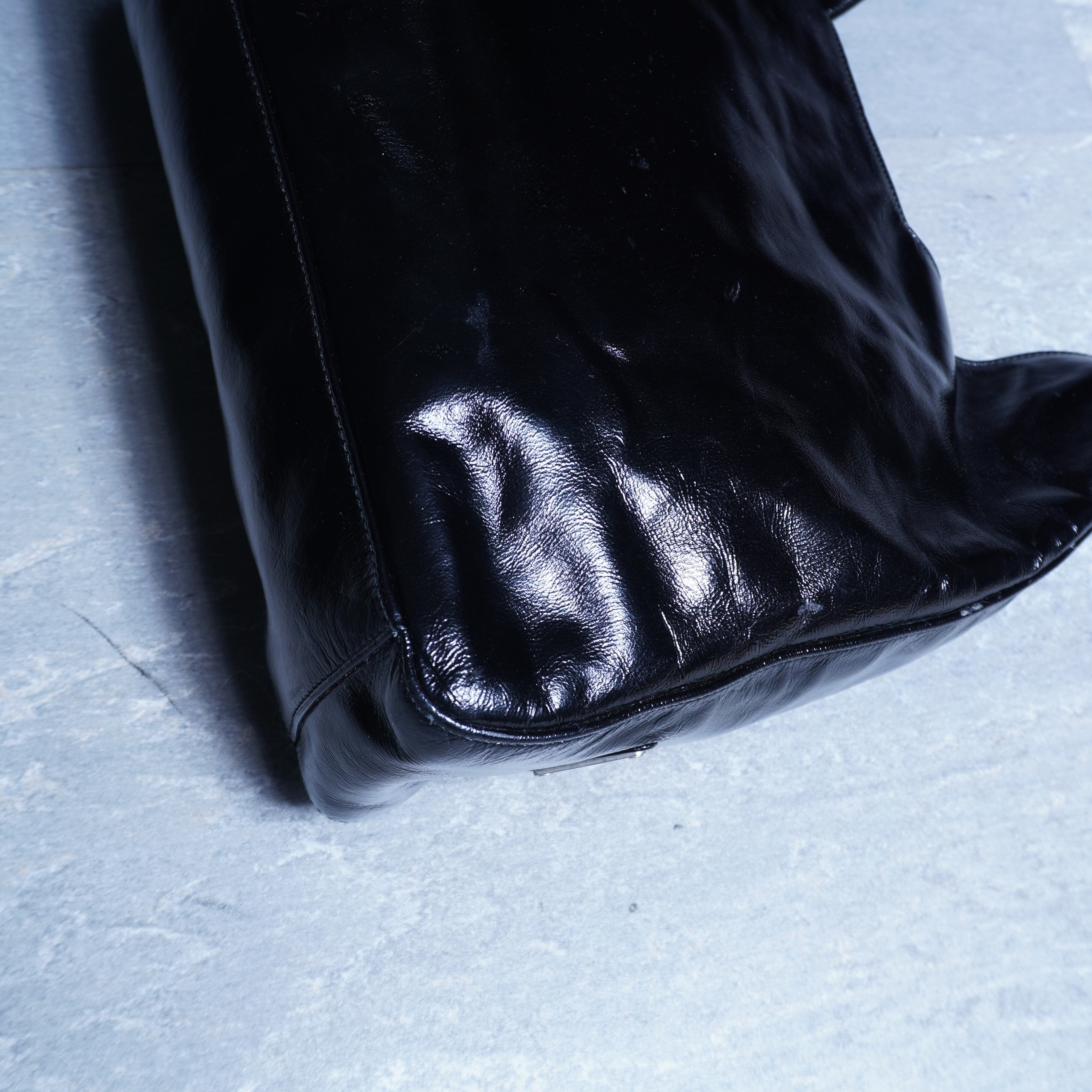 【PRADA】プラダ 三角ロゴプレート パテントレザーショルダーバッグ black