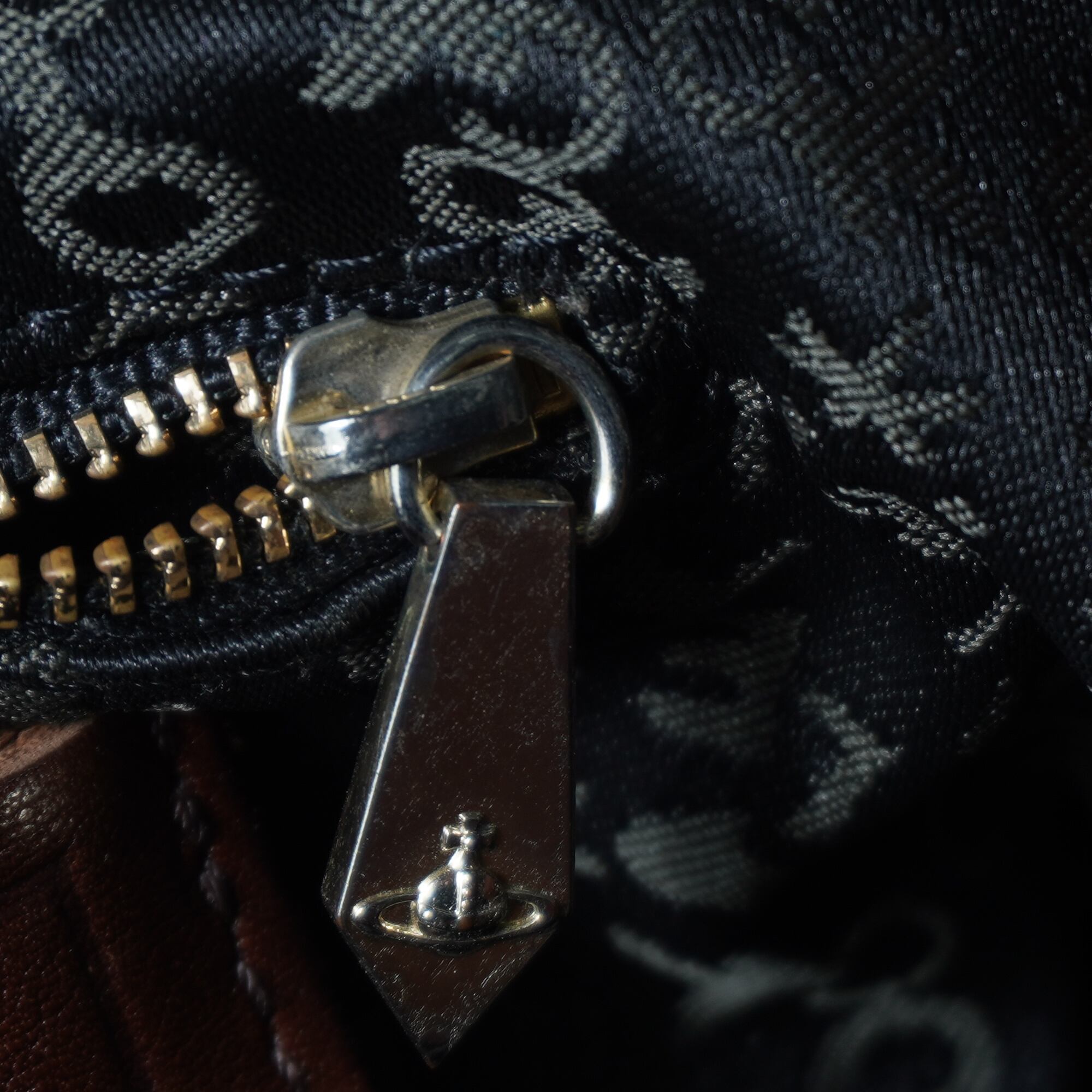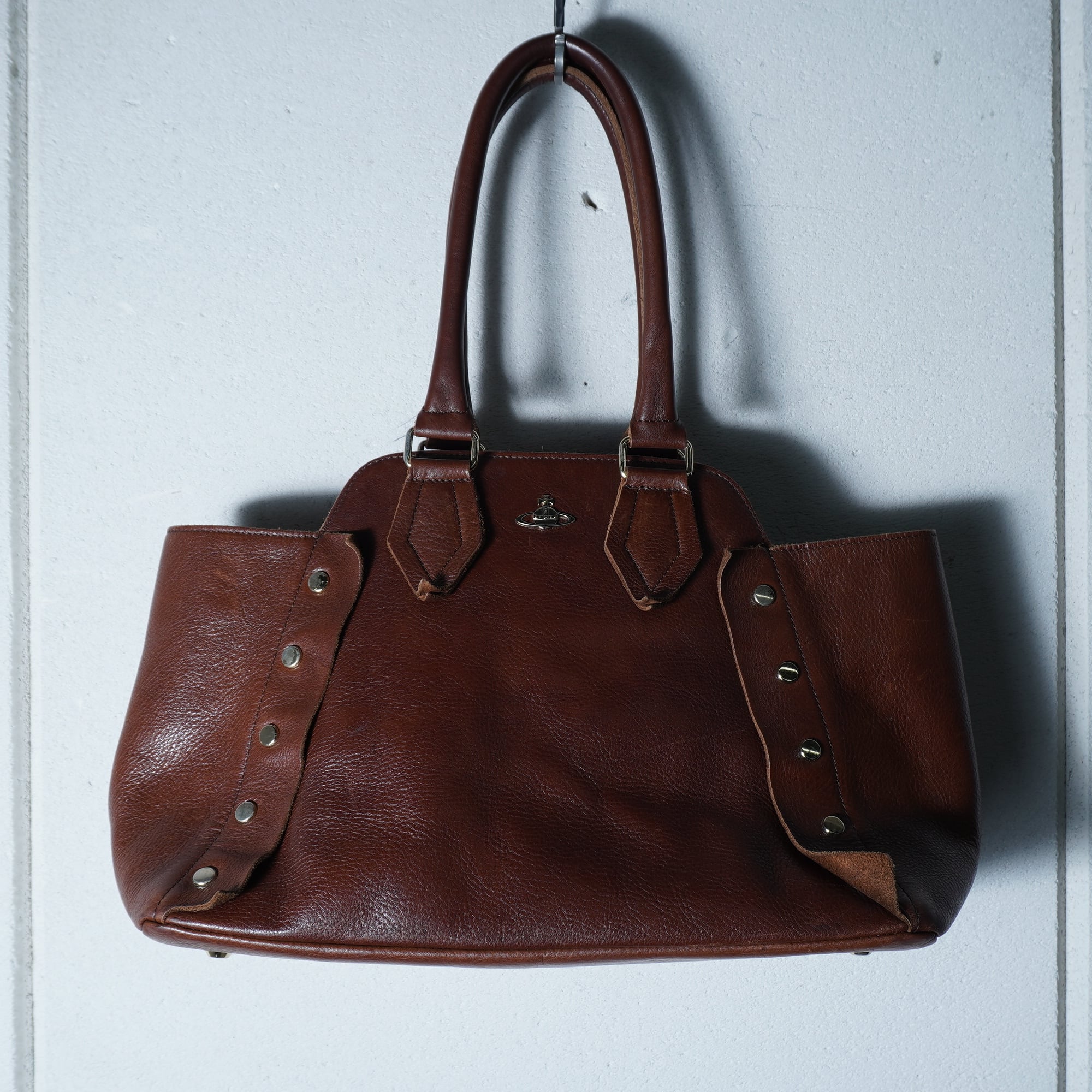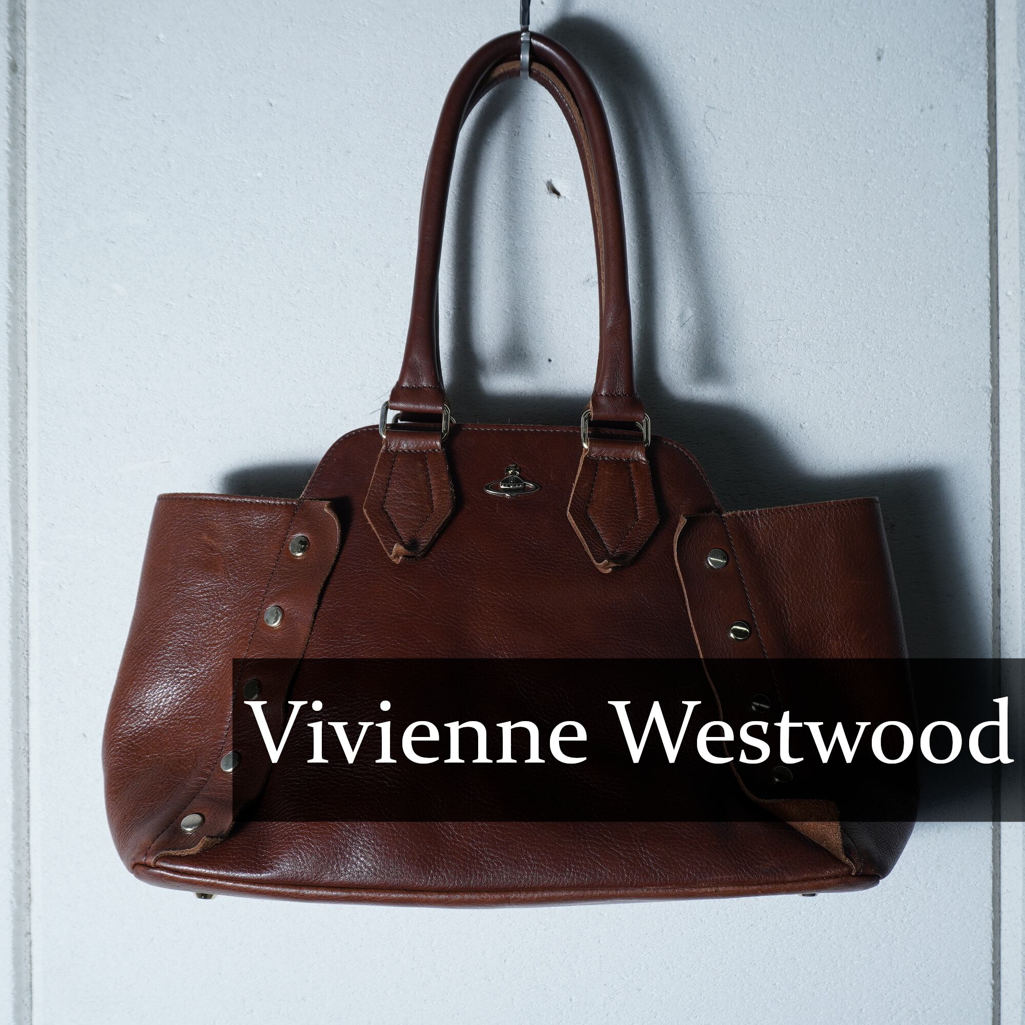 【Vivienne Westwood】ヴィヴィアンウエストウッド "オーブロゴ" ヌーロックリアルレザートートバッグ brown