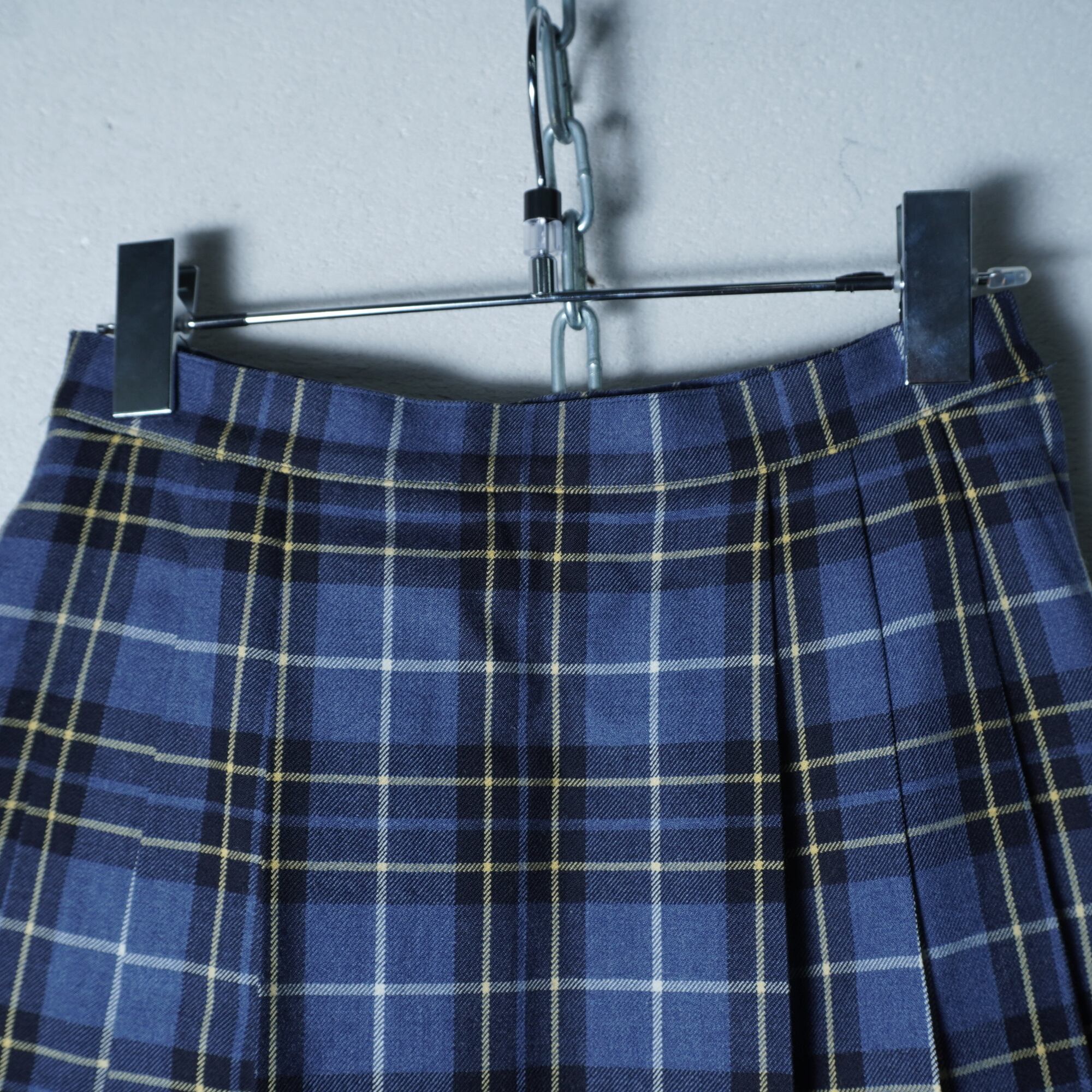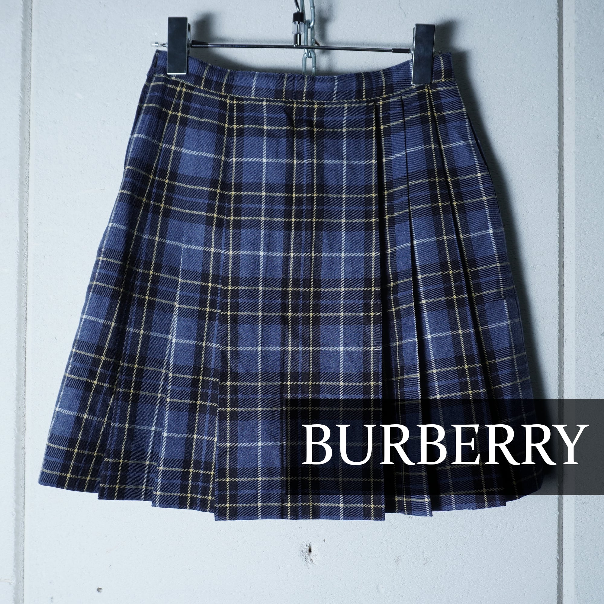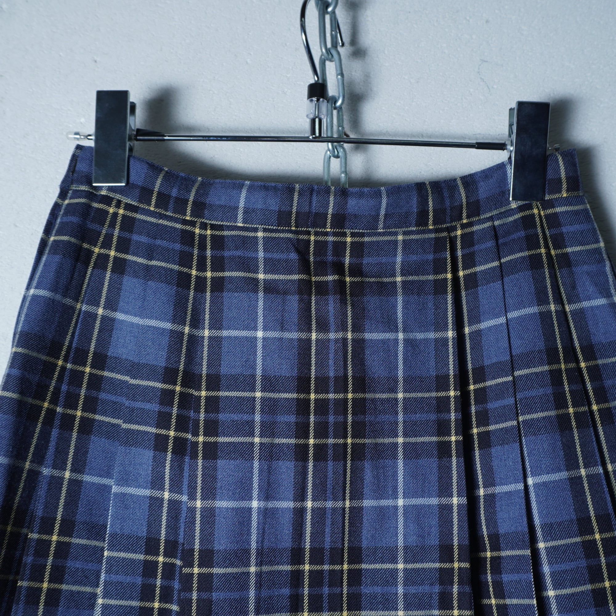 【BURBERRY】バーバリー "WOOL100%" チェック柄ブリーツスカート blue navy