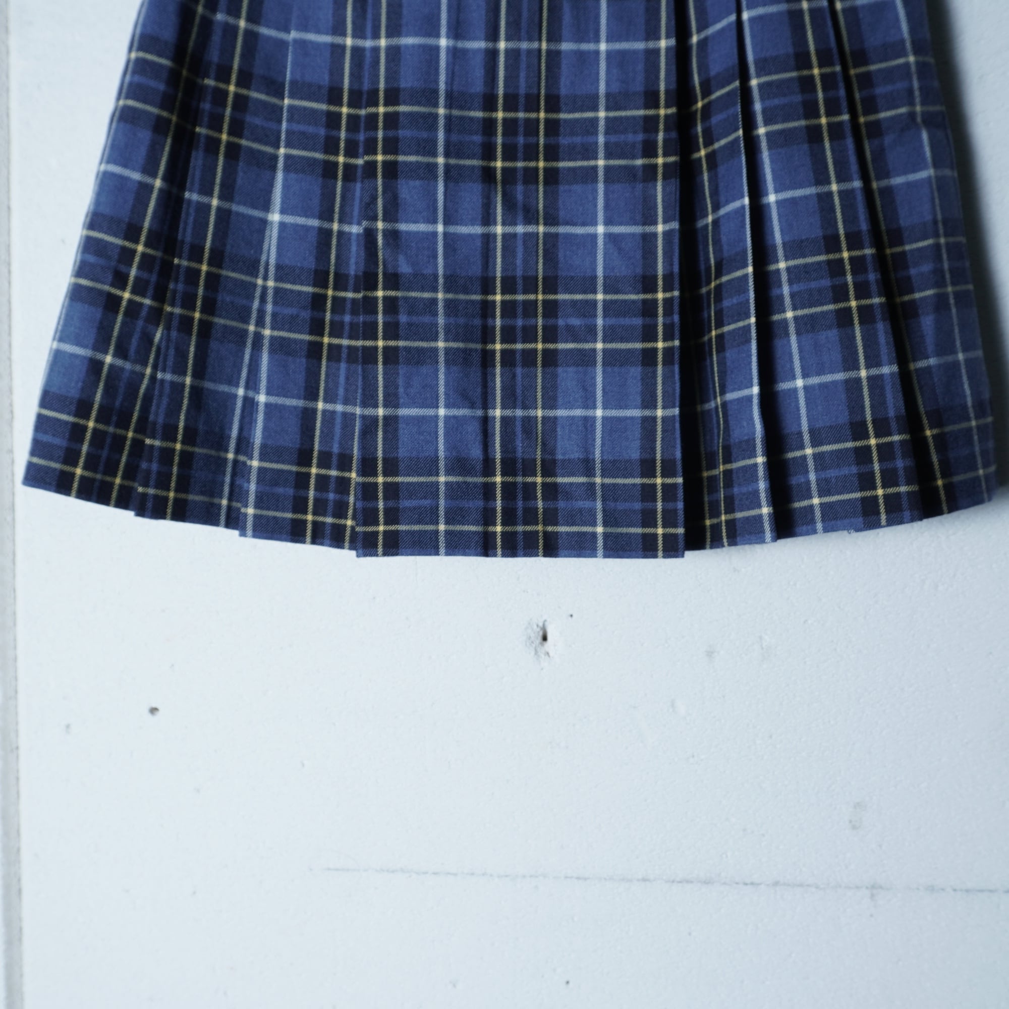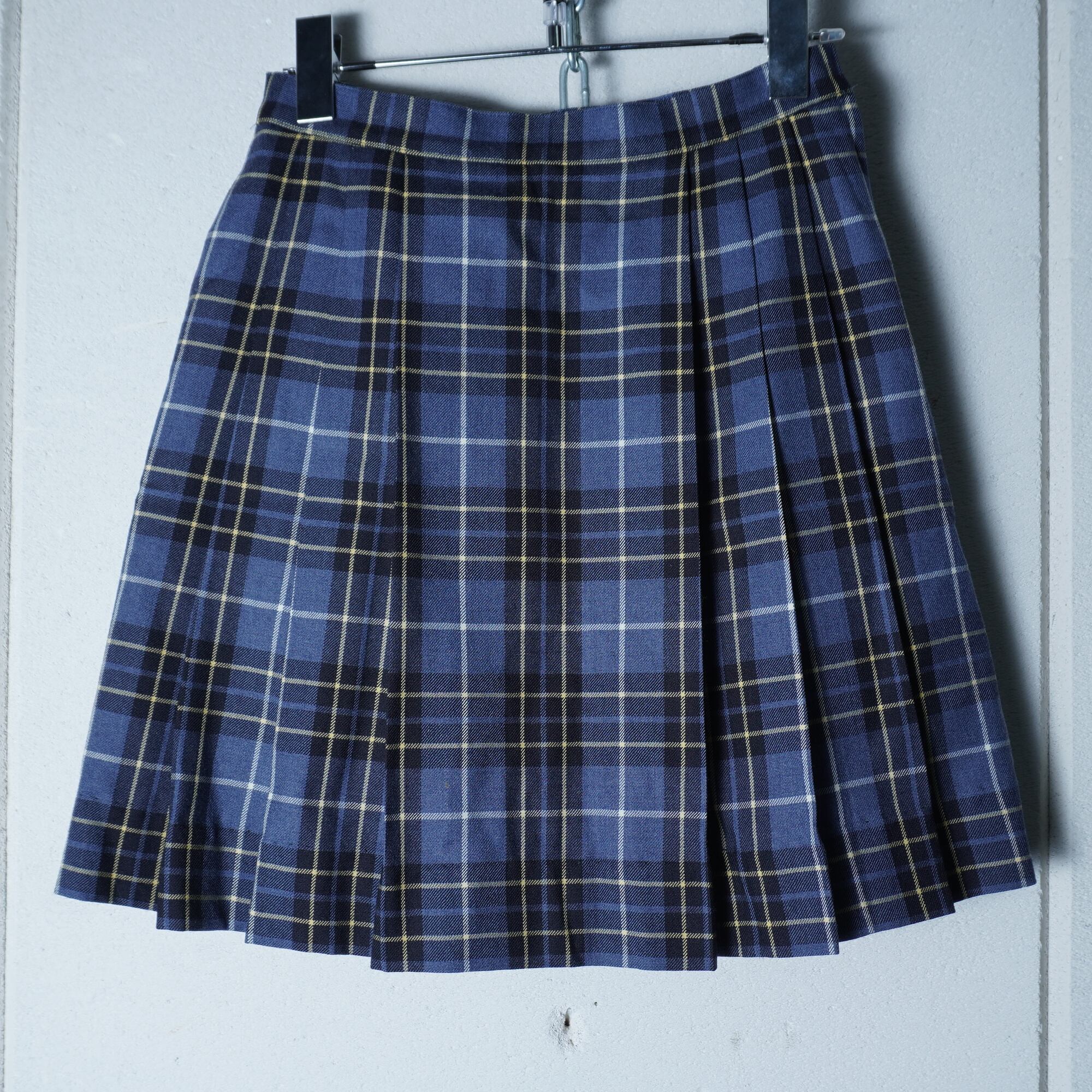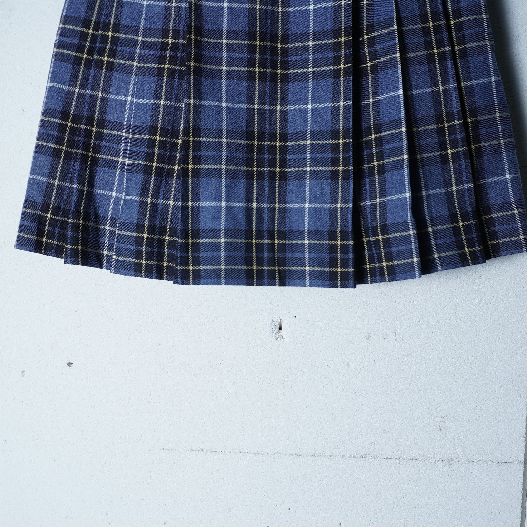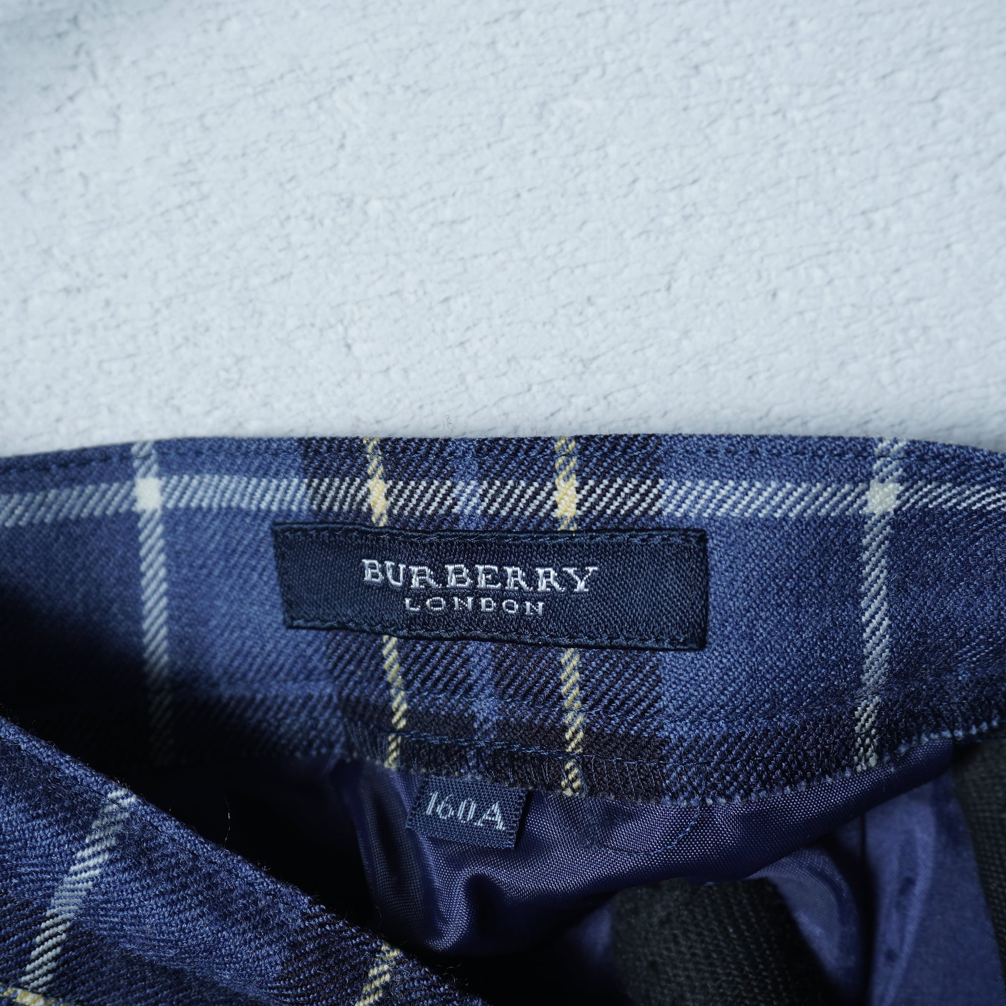 【BURBERRY】バーバリー "WOOL100%" チェック柄ブリーツスカート blue navy