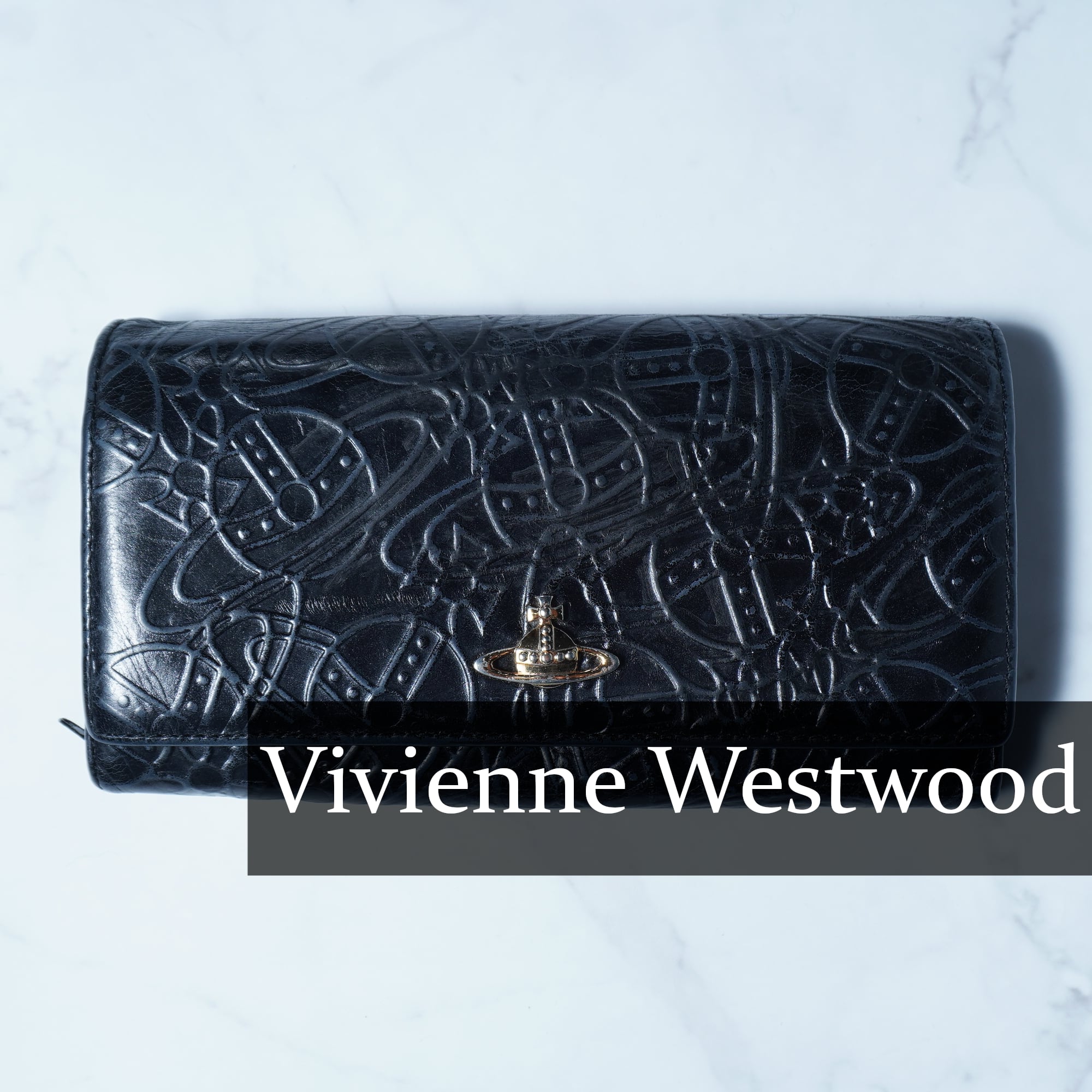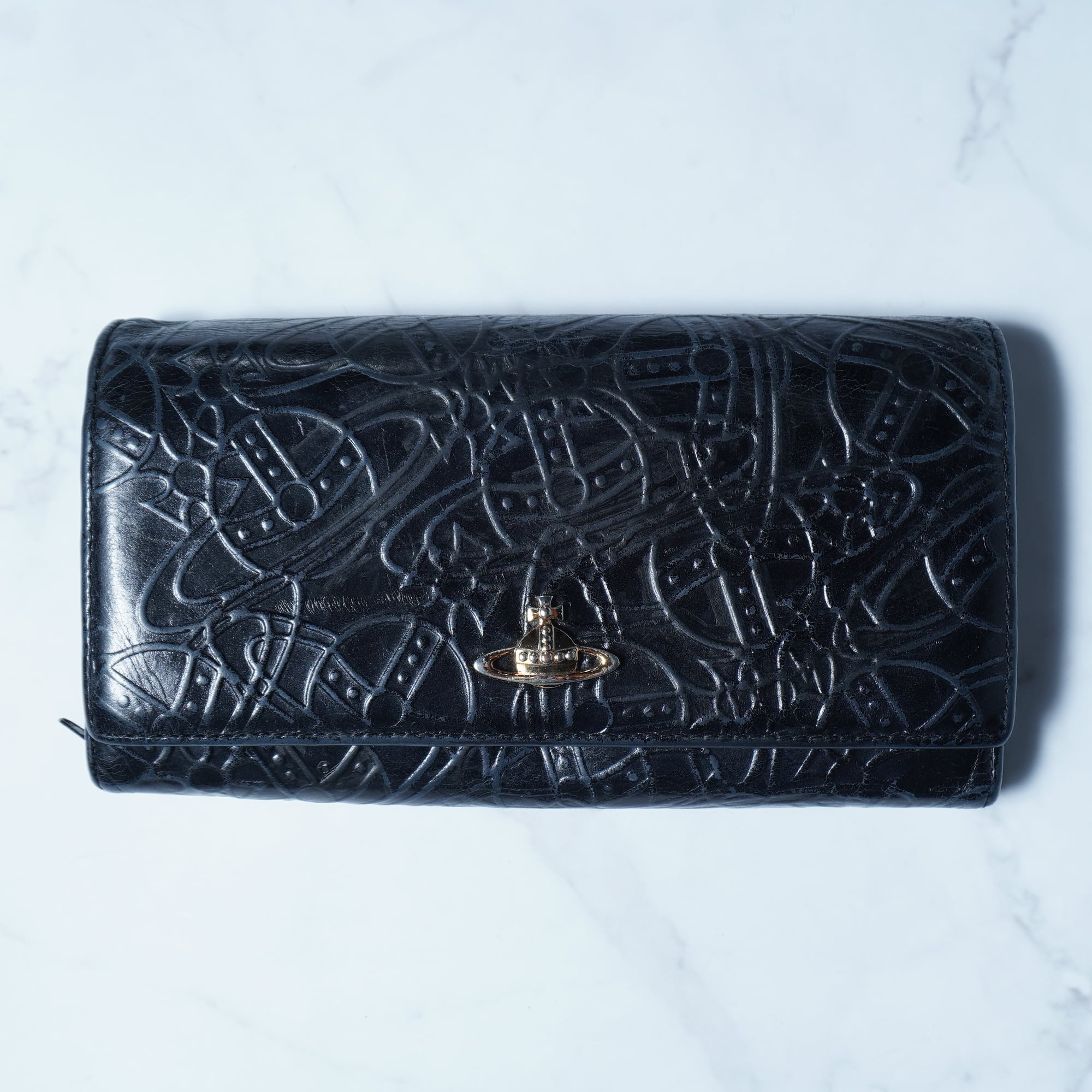 【Vivienne Westwood】ヴィヴィアンウエストウッド エンボスオーブロゴ総柄レザーロングウォレット black