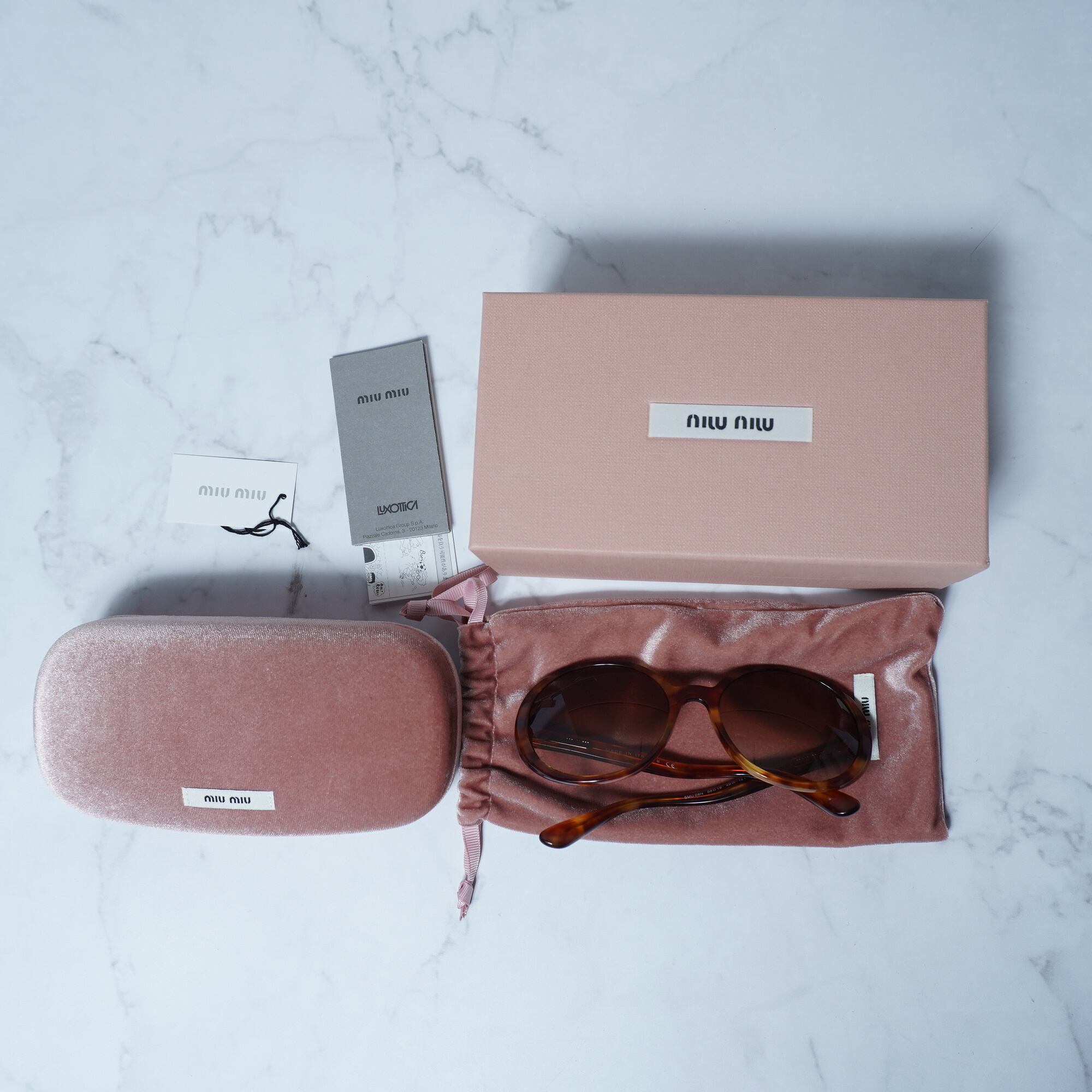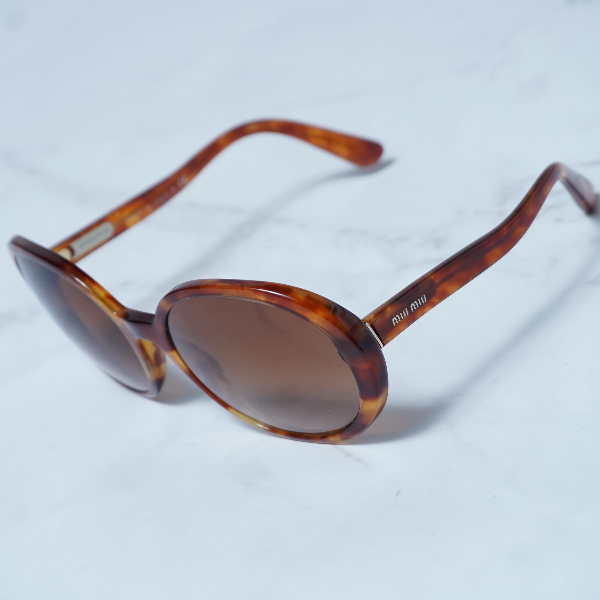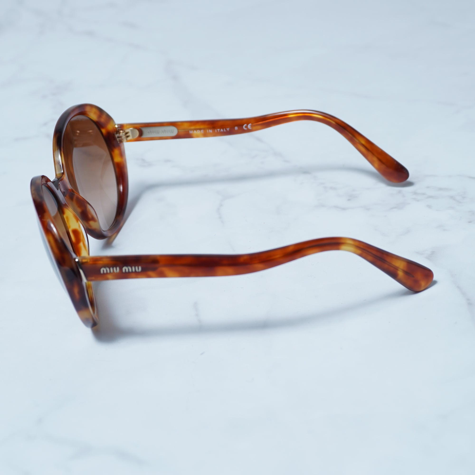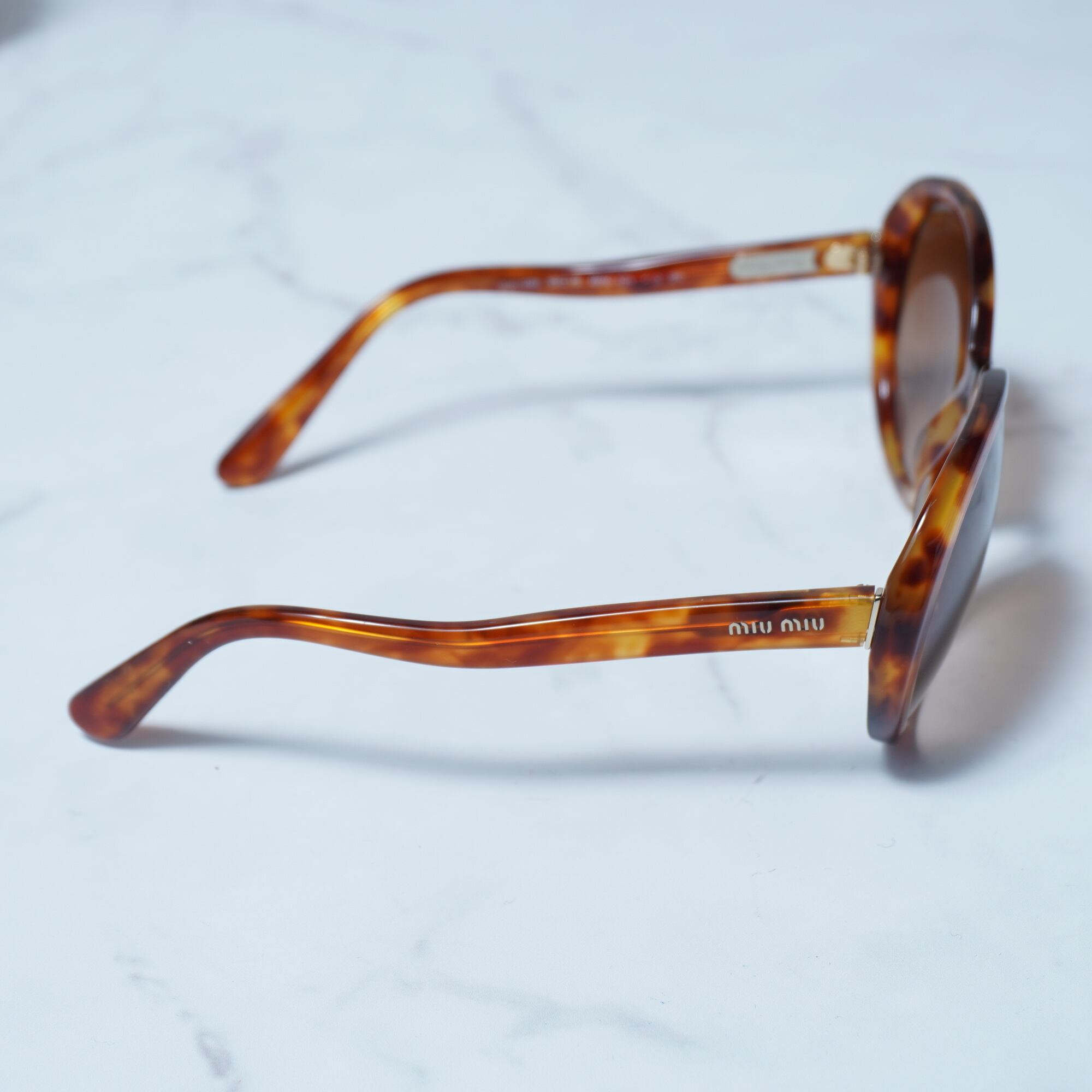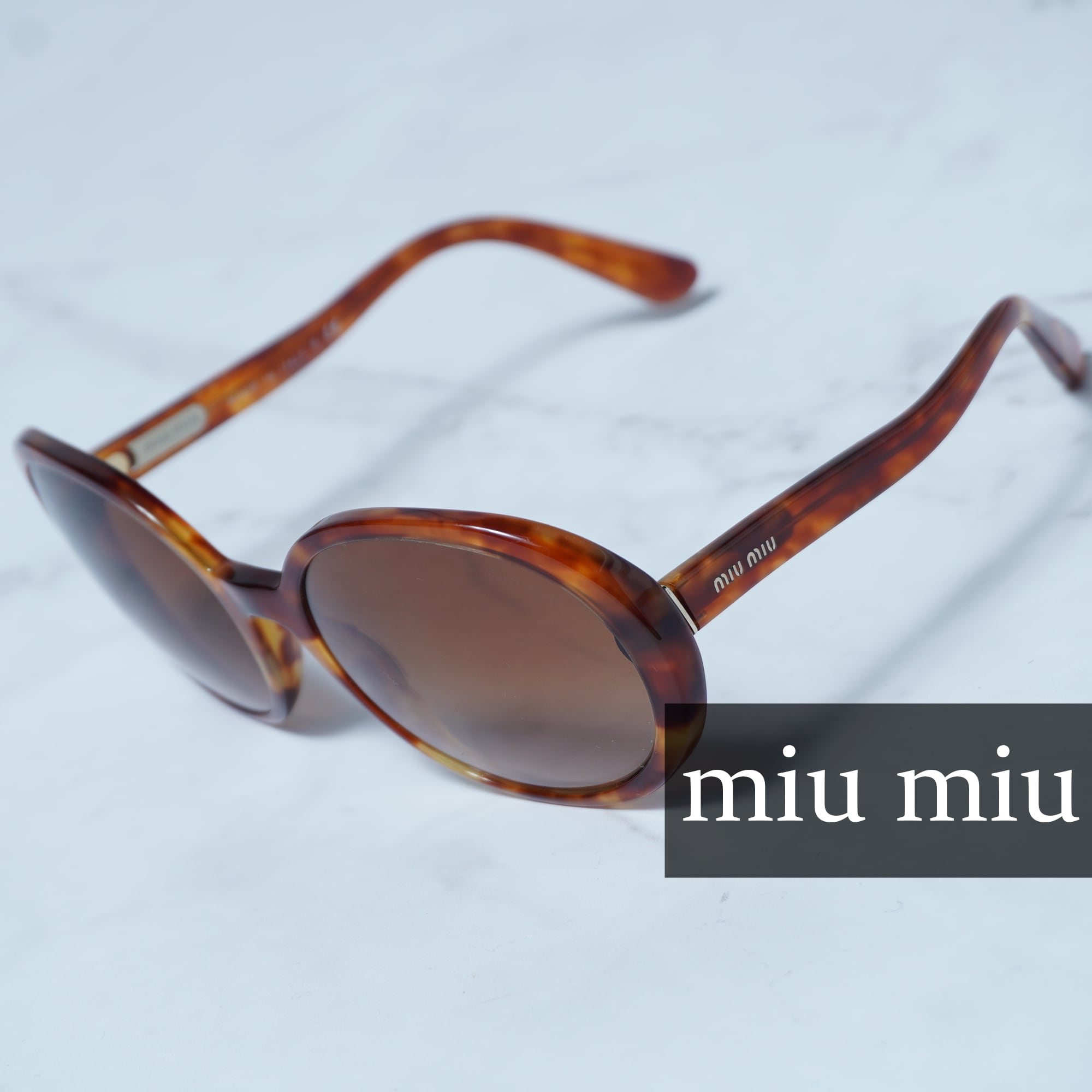【miumiu】ミュウミュウ ”テンプルロゴ” 鼈甲フレームサングラス 箱付 brown