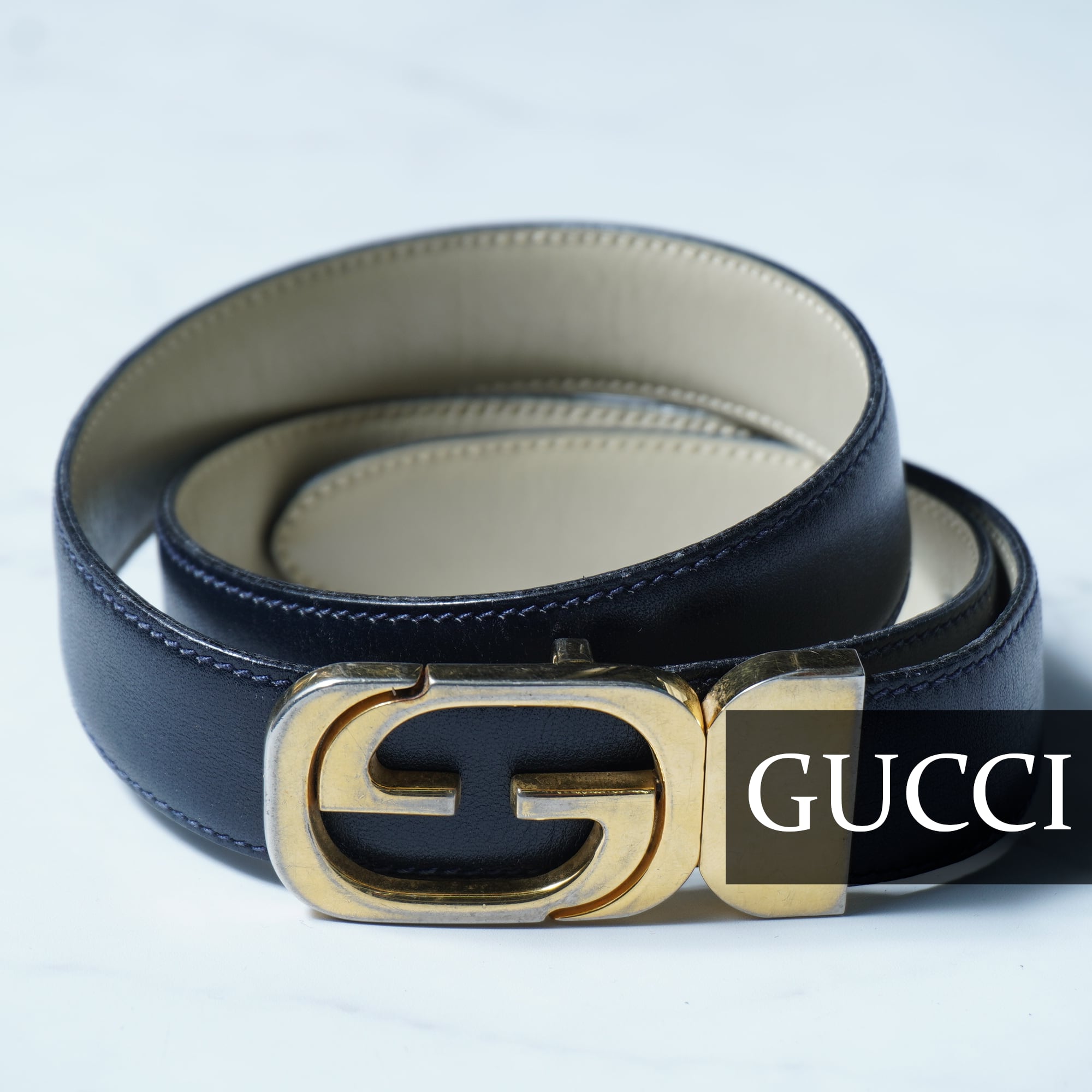 【GUCCI】グッチ”インターロッキングGGロゴ”ゴールドバックルレザーベルト black