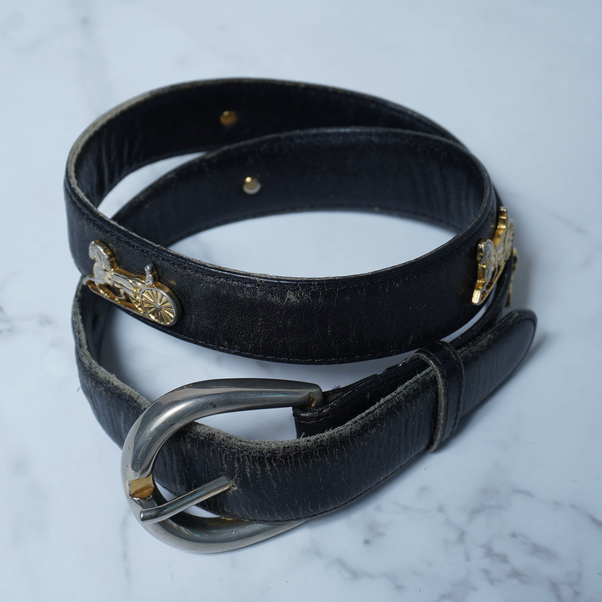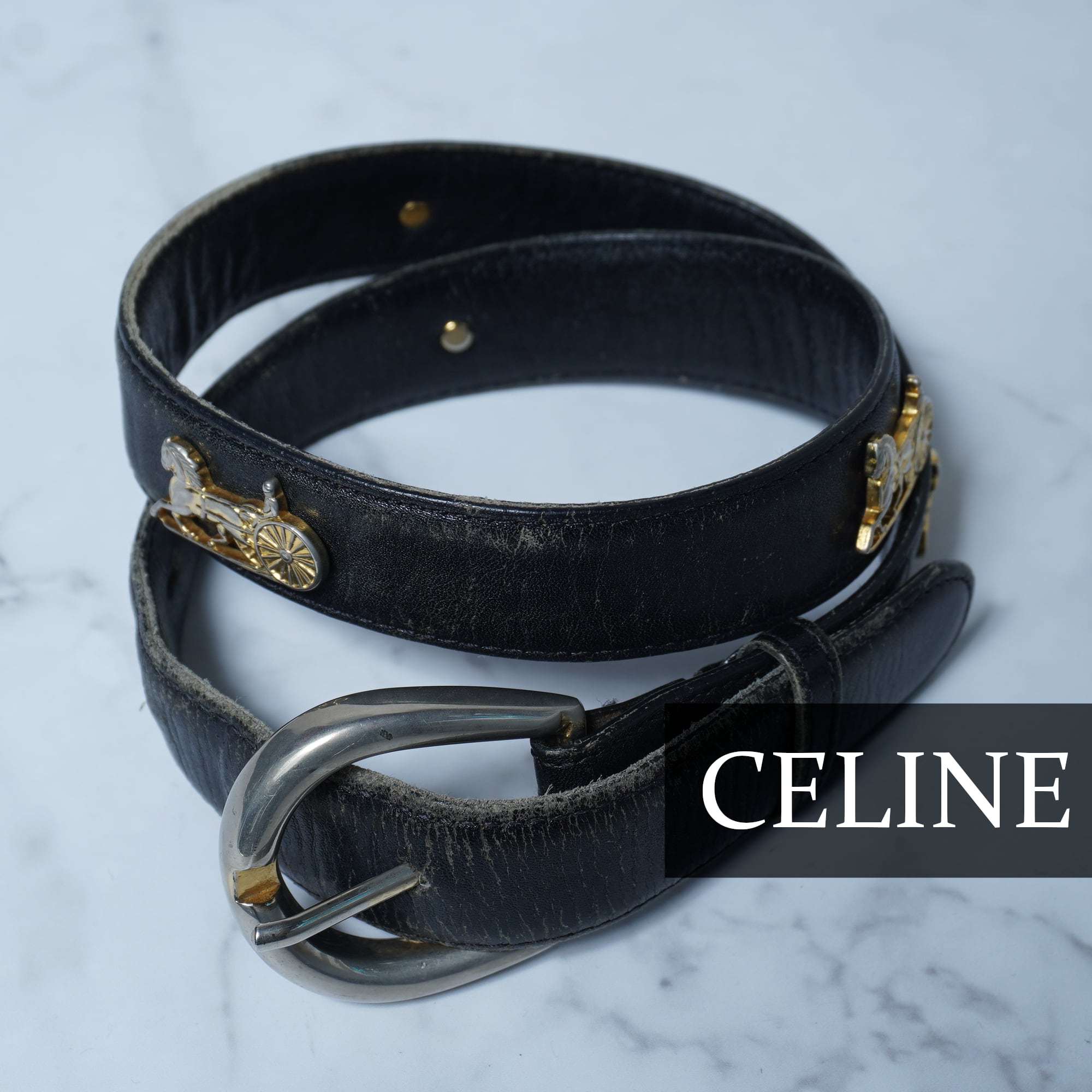 【CELINE】セリーヌ”馬車金具装飾”ゴールドバックルレザーベルト black