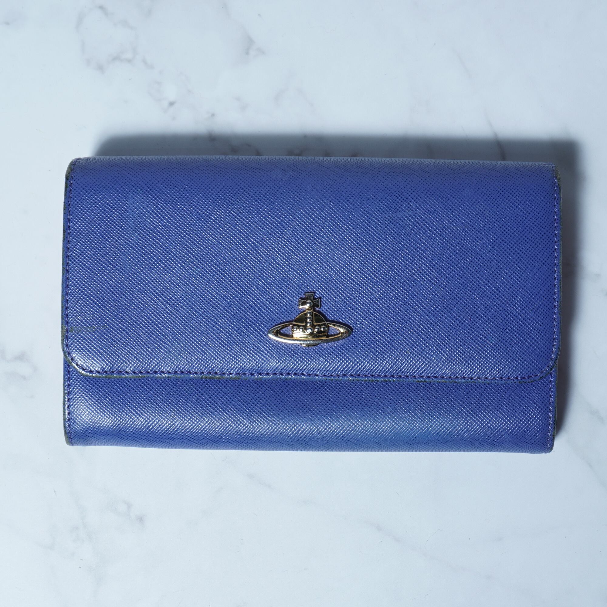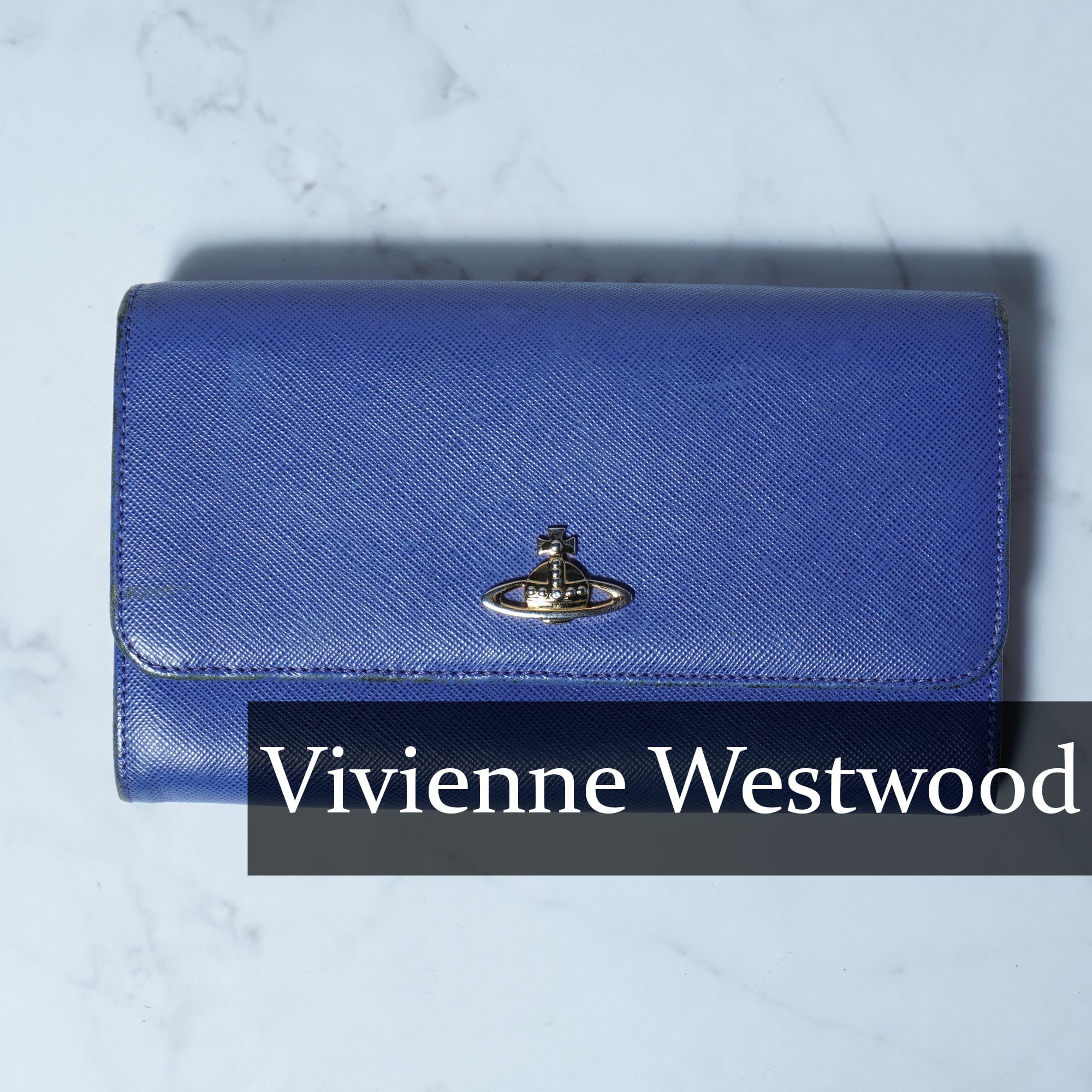 【Vivienne Westwood】ヴィヴィアンウエストウッド オーブロゴ リアルレザーバイカラーロングウォレット blue&red