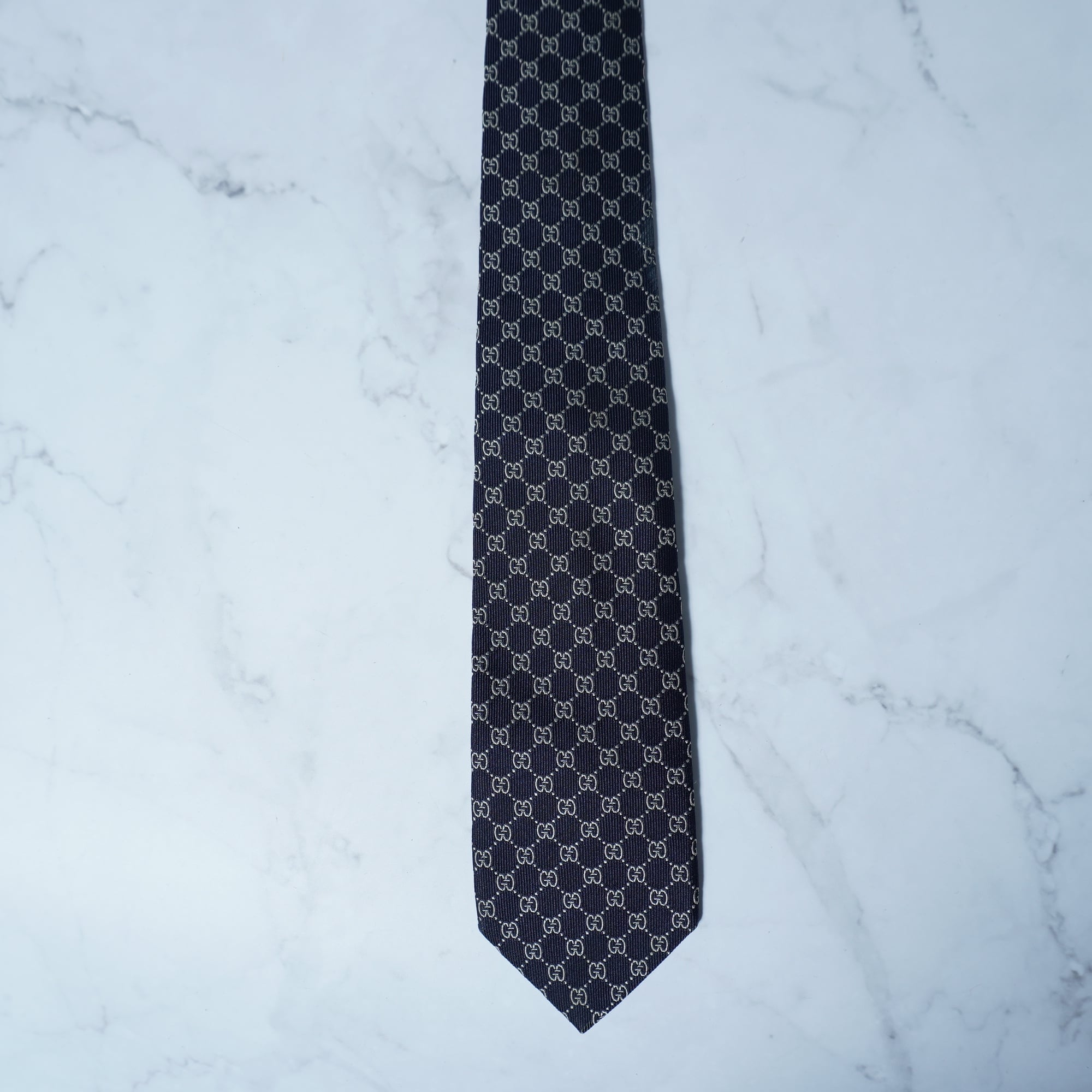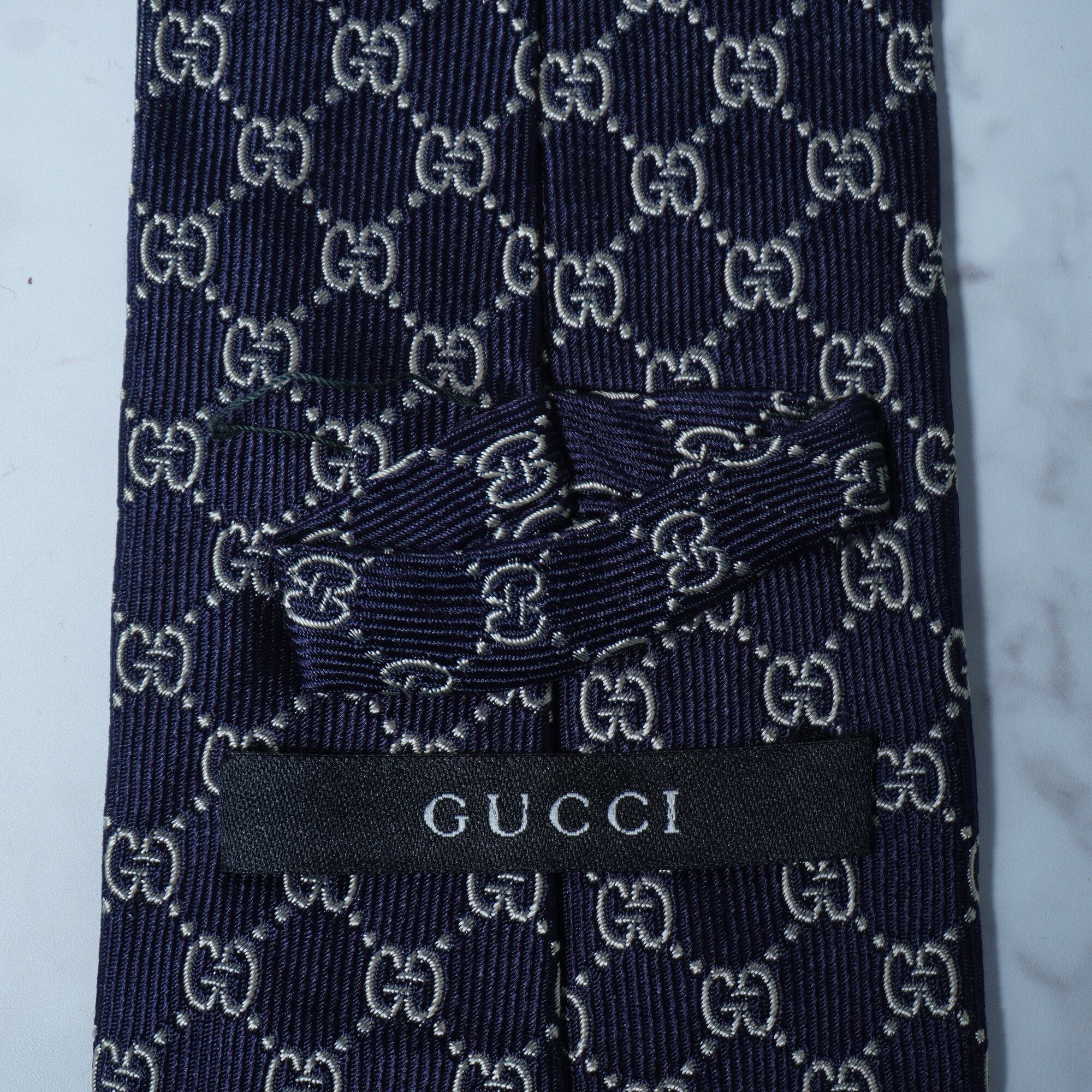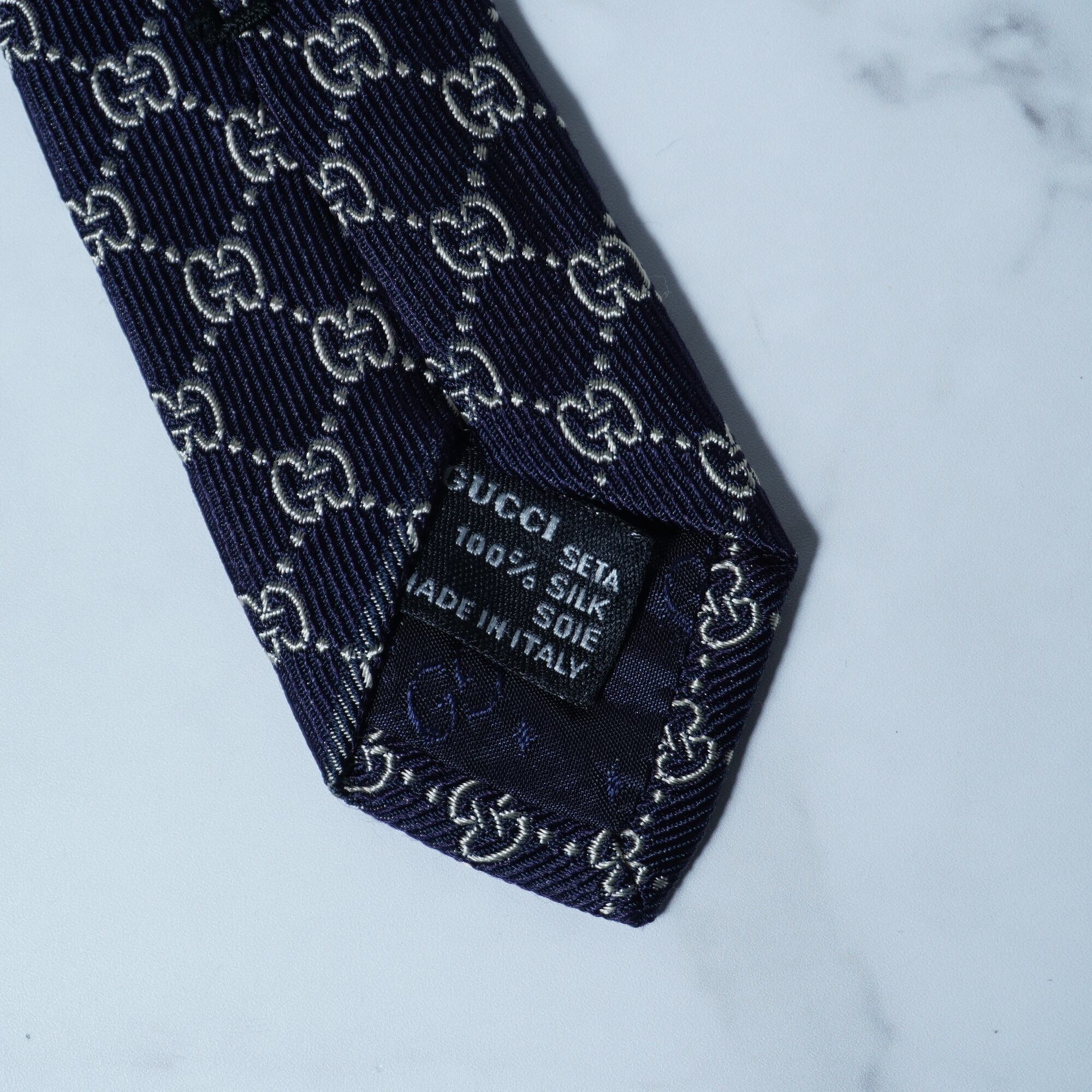 【GUCCI】グッチ "GG総柄” SILK100%ネクタイ navy&white