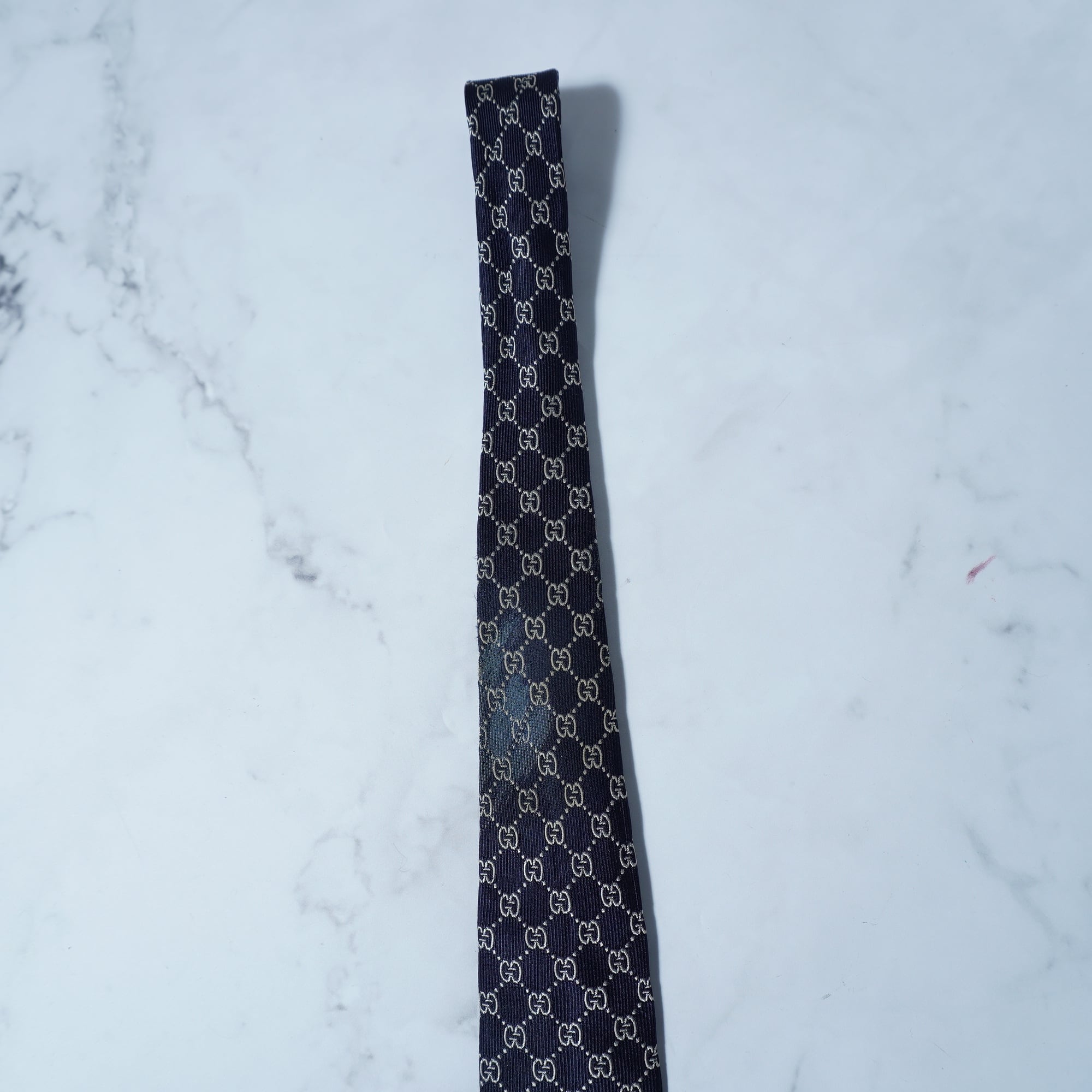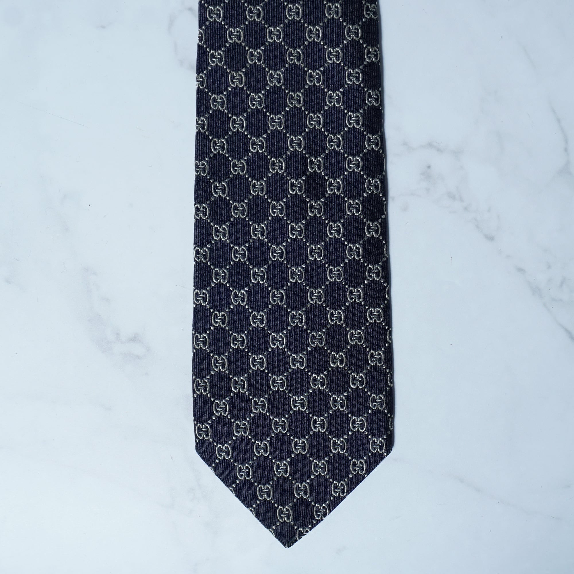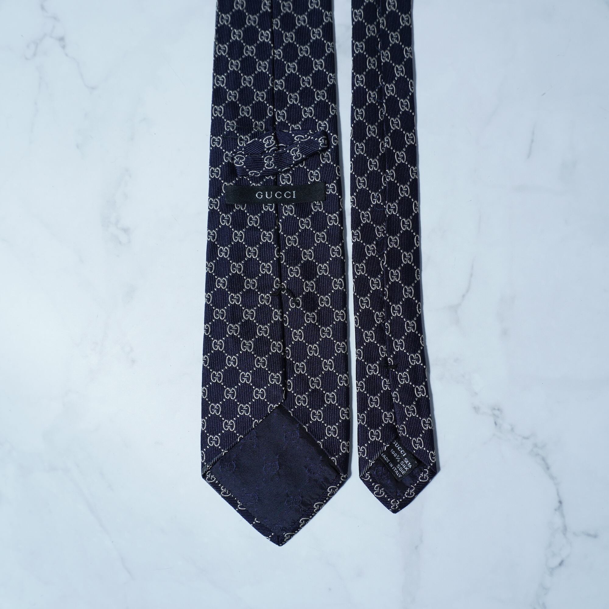 【GUCCI】グッチ "GG総柄” SILK100%ネクタイ navy&white