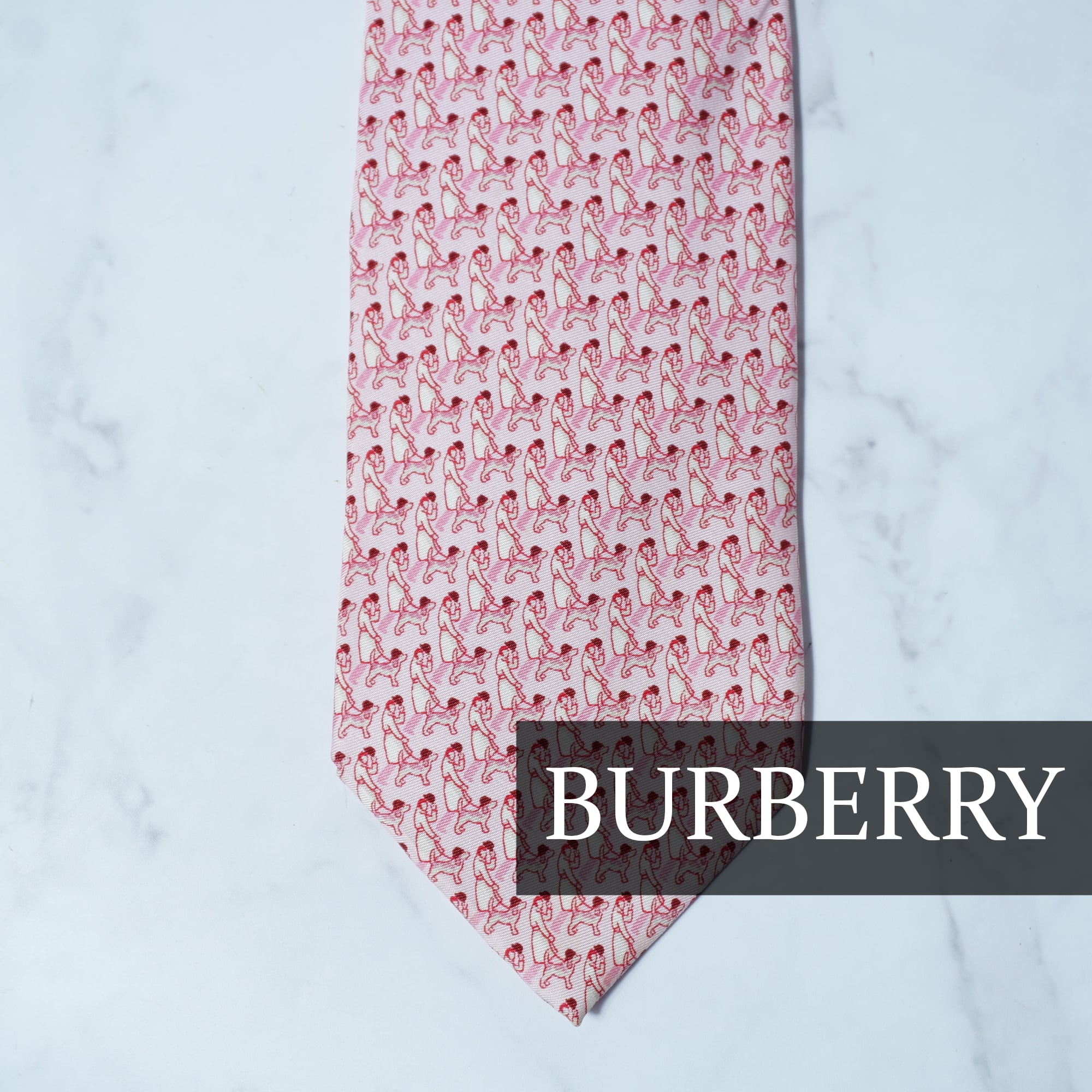 【BURBERRY】バーバリー ”SILK100%” 総柄ネクタイ pink