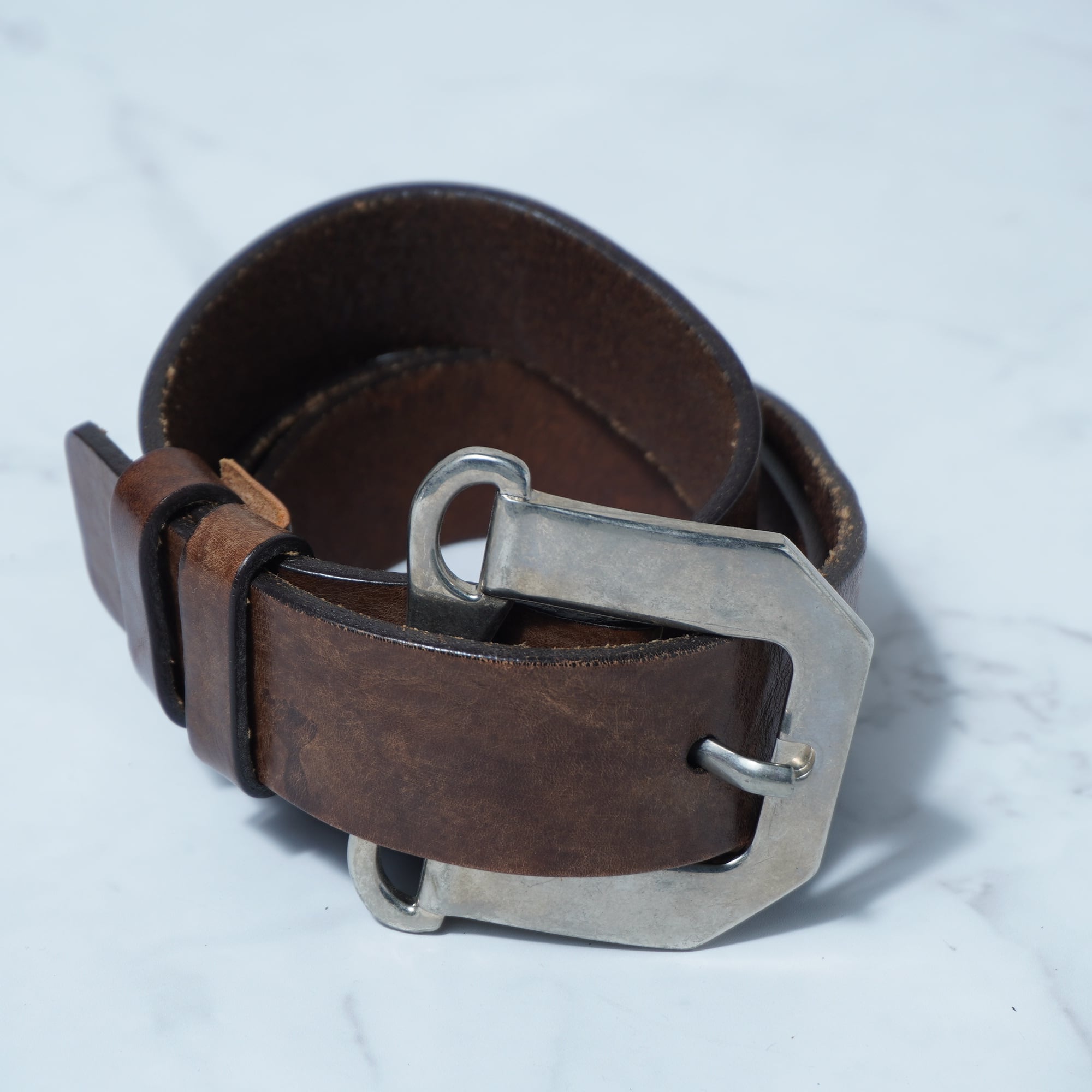 【DOLCE&GABBANA】ドルチェ&ガッバーナ "ARCHIVE" シルバーバックルレザーベルト brown