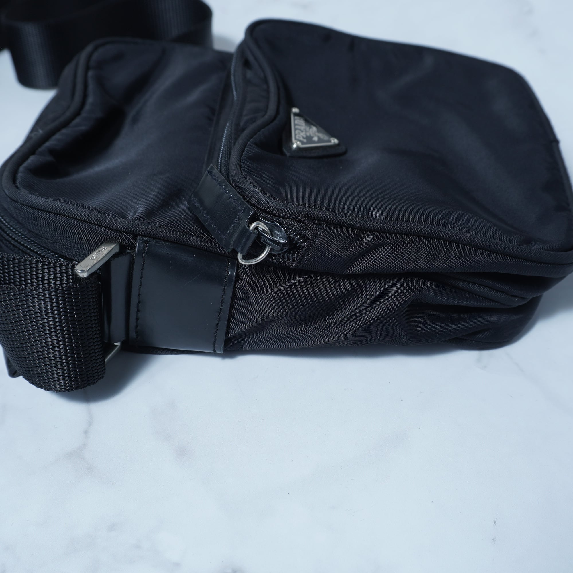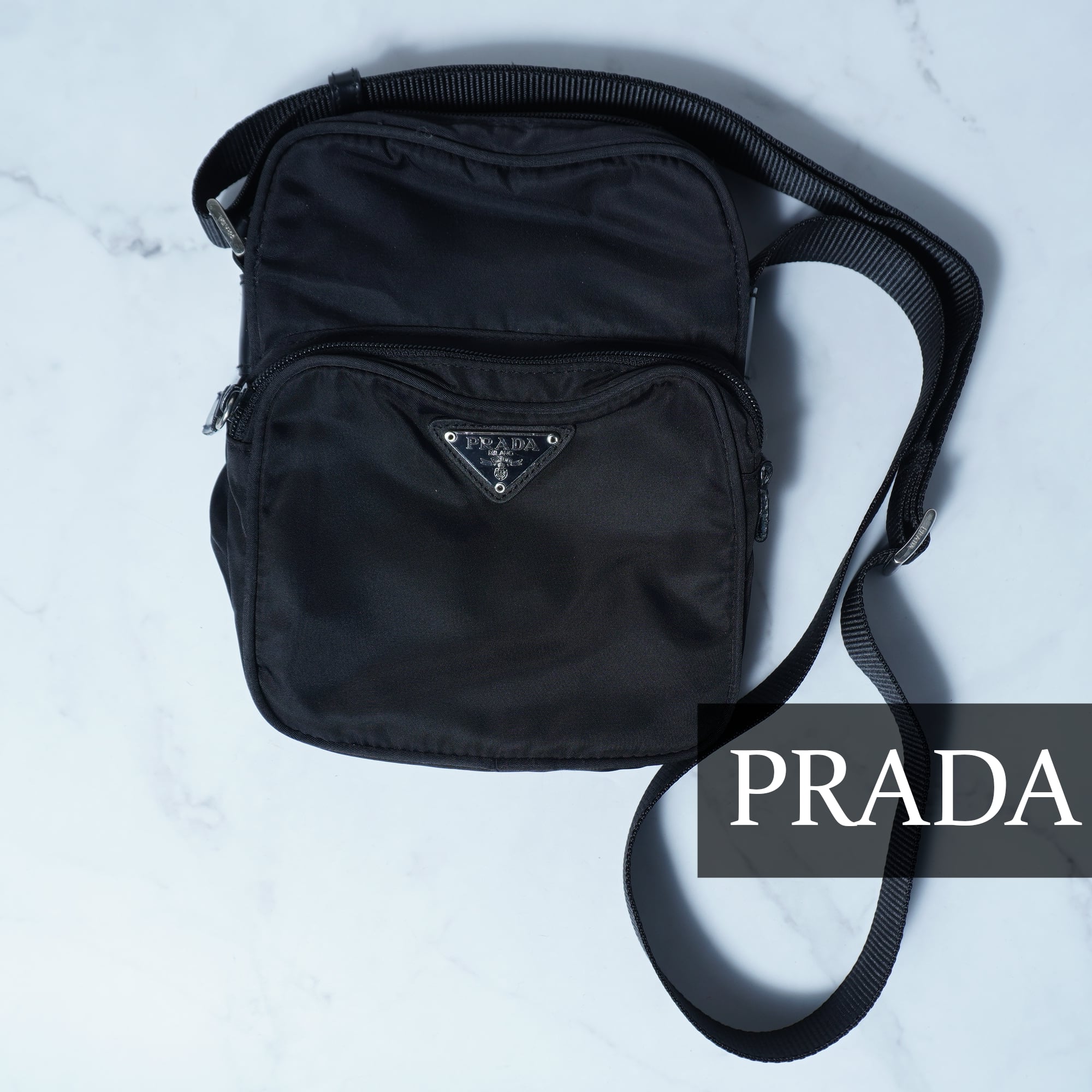 【PRADA】プラダ ”三角プレートロゴ” 高密度ナイロン2ポケットショルダーバッグ black