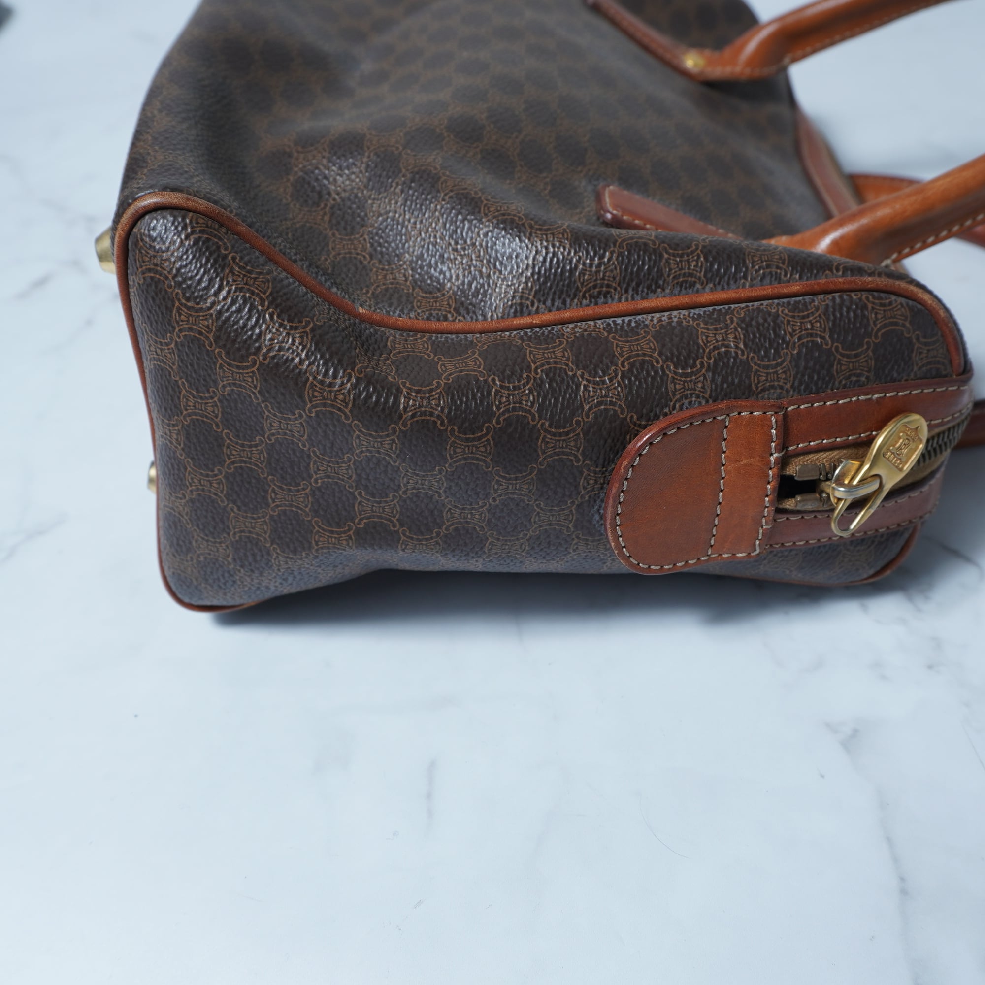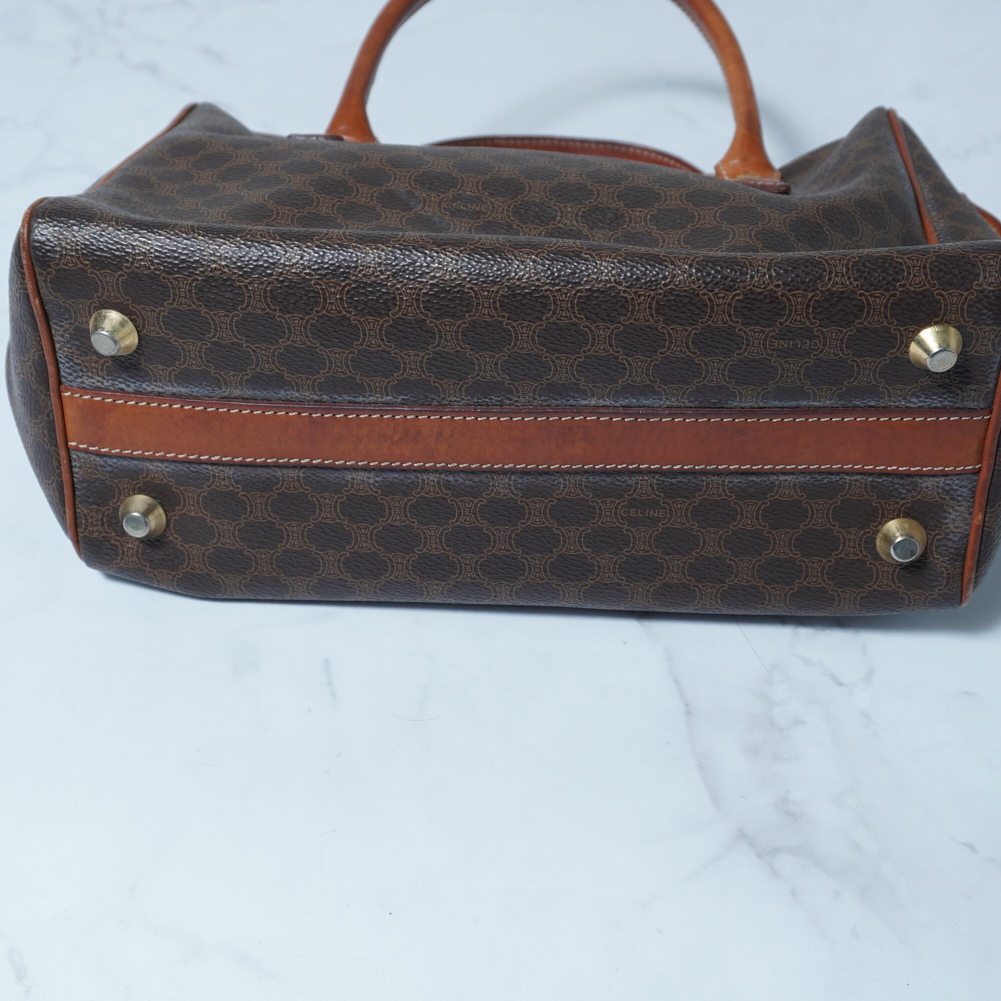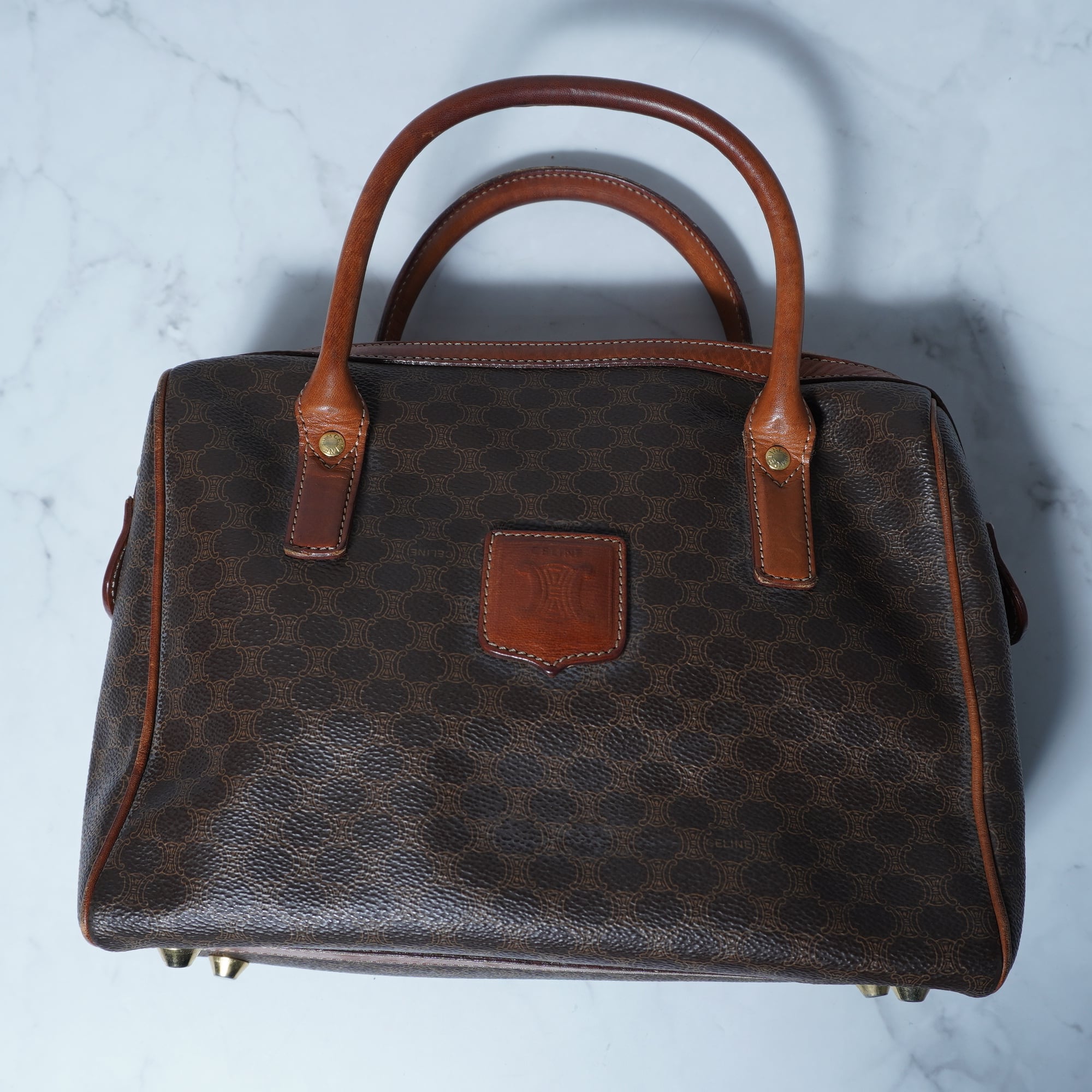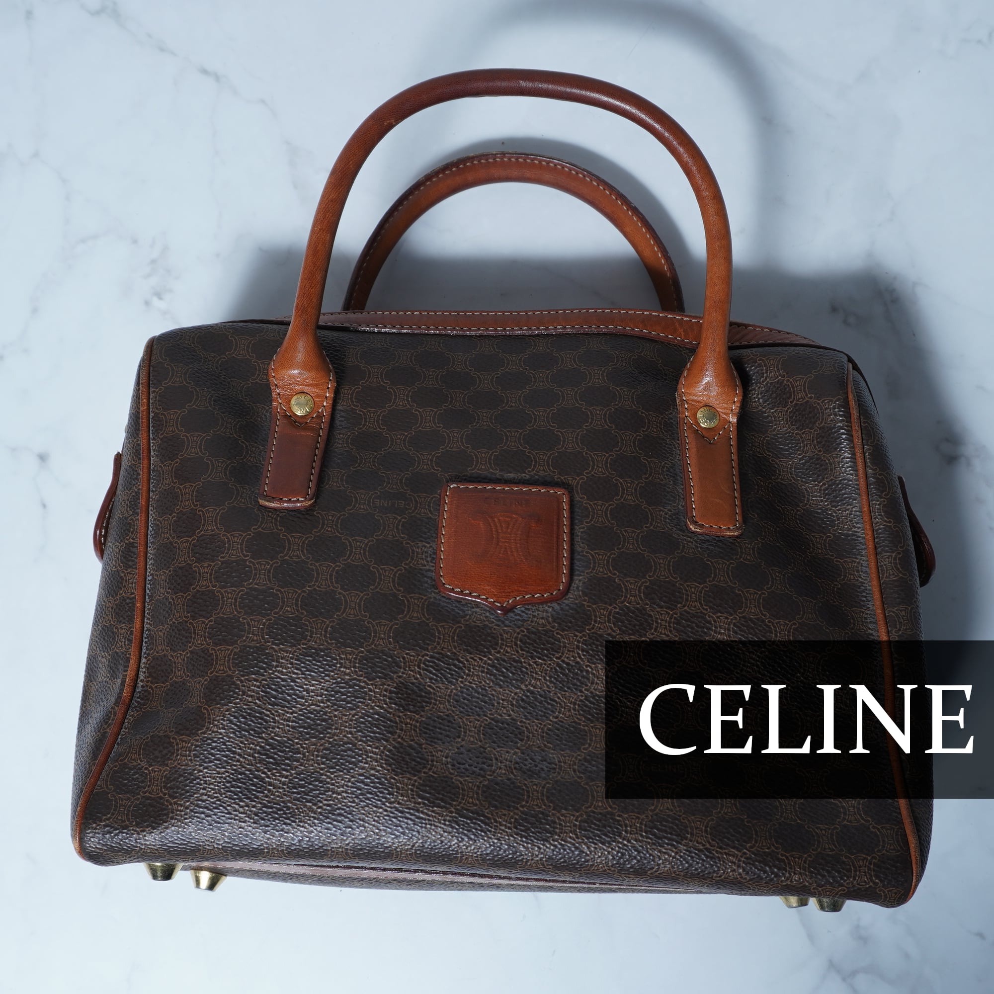 【CELINE】セリーヌ ”トリオンフロゴ” マカダム柄レザーハンドバッグ brown