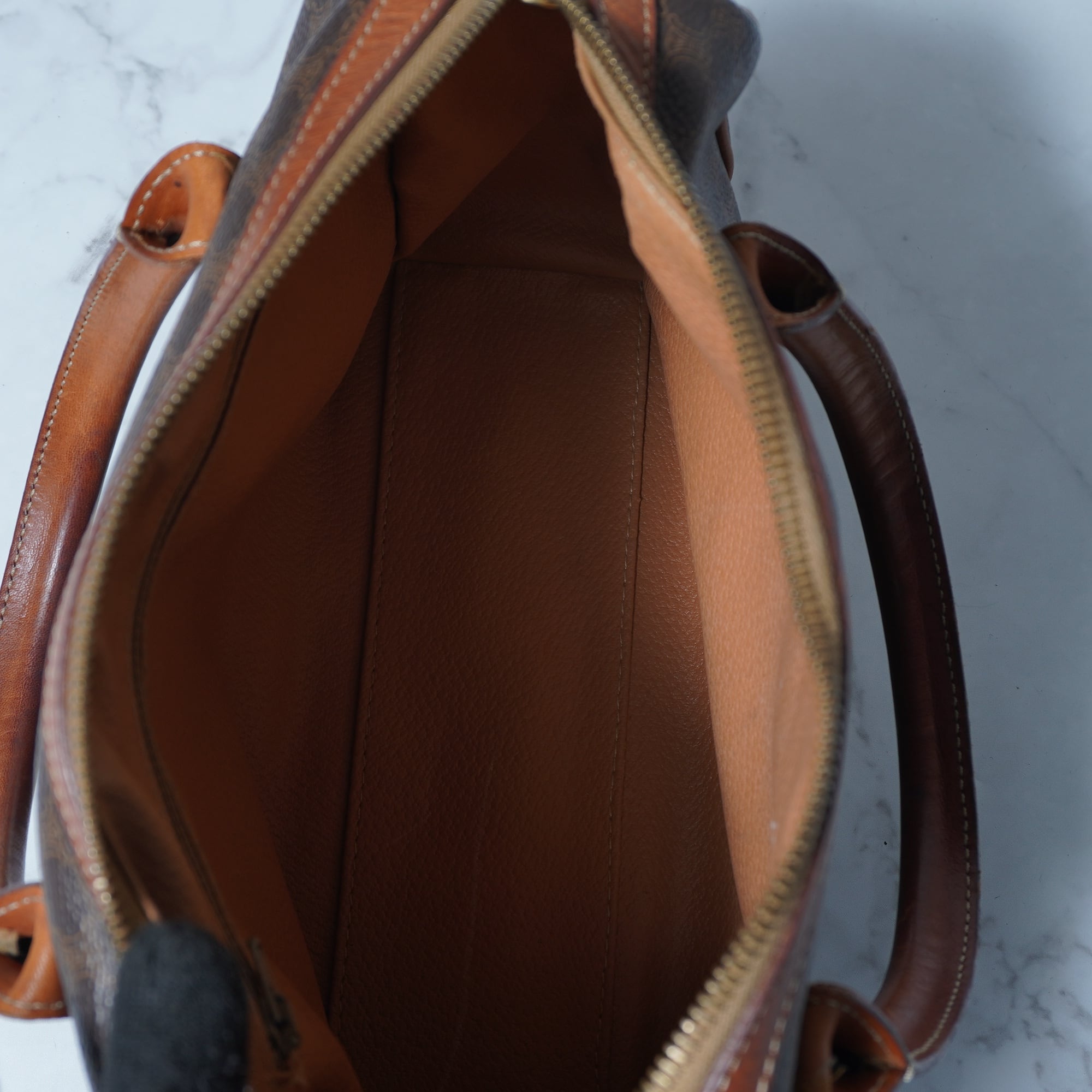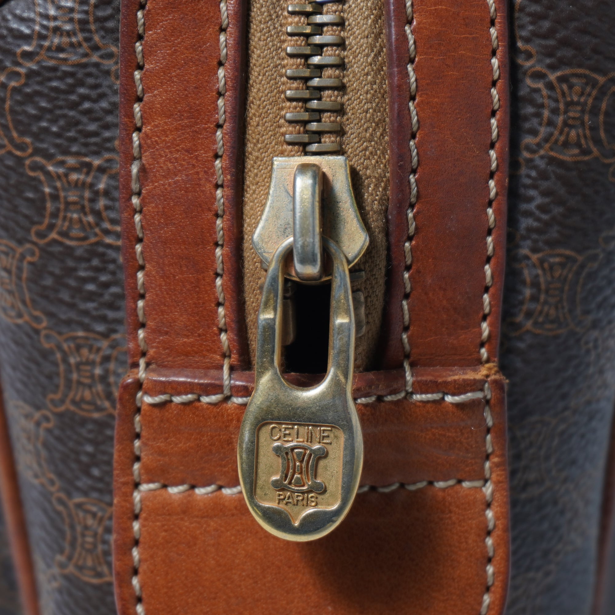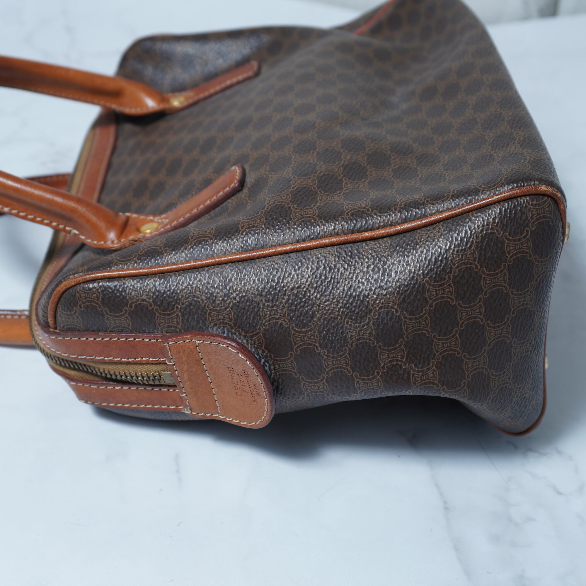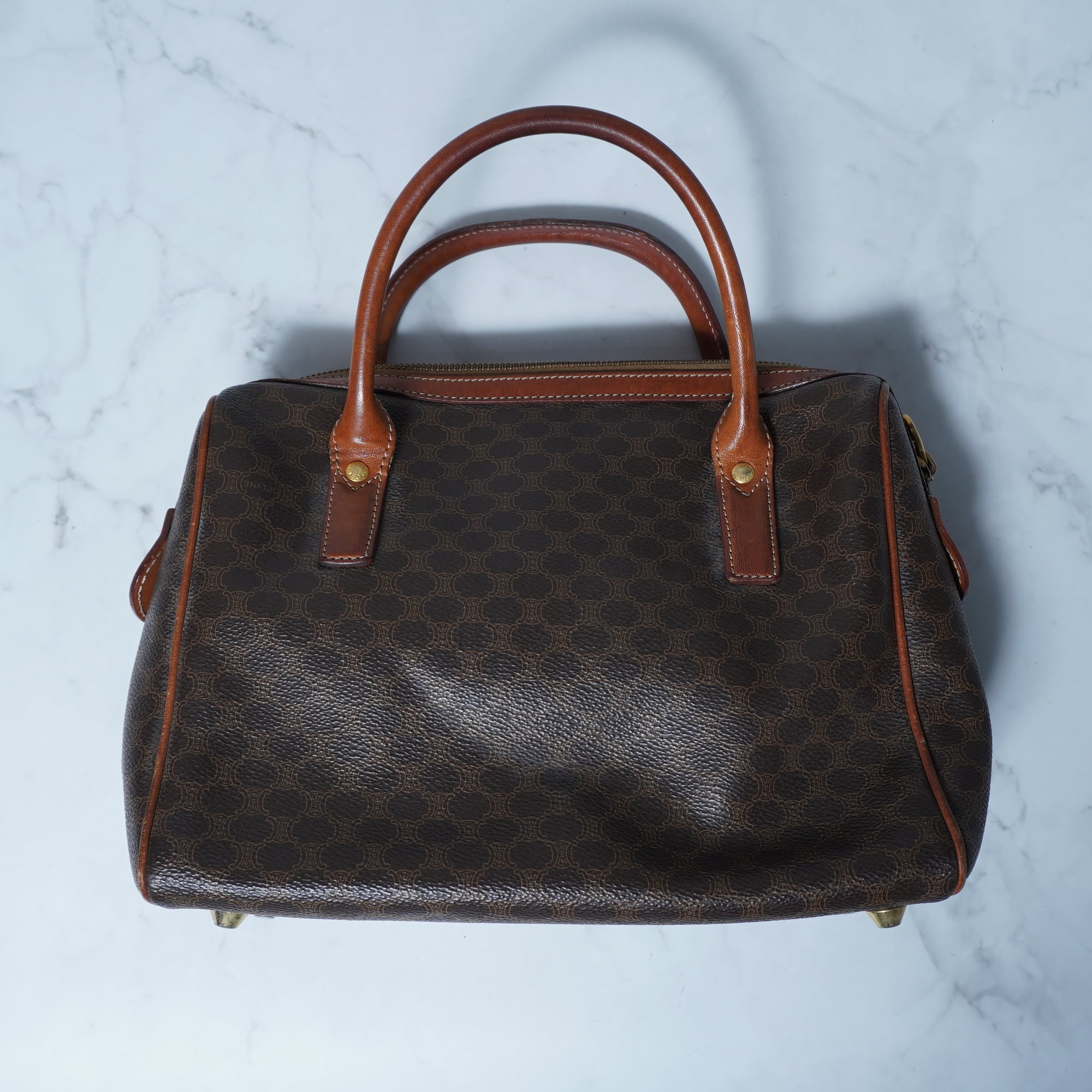 【CELINE】セリーヌ ”トリオンフロゴ” マカダム柄レザーハンドバッグ brown