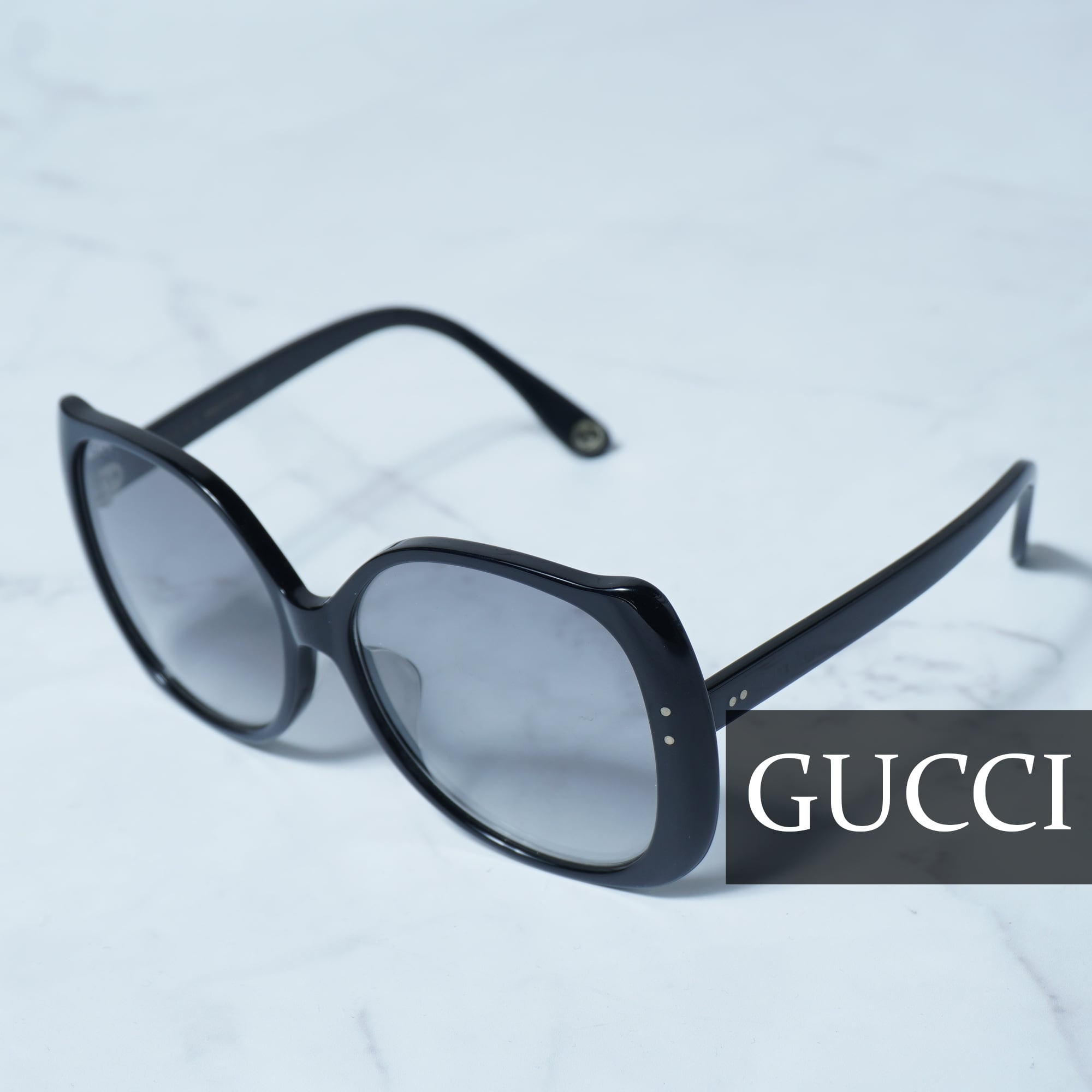 【GUCCI】グッチ ”テンプルロゴ"オーバルサングラス black