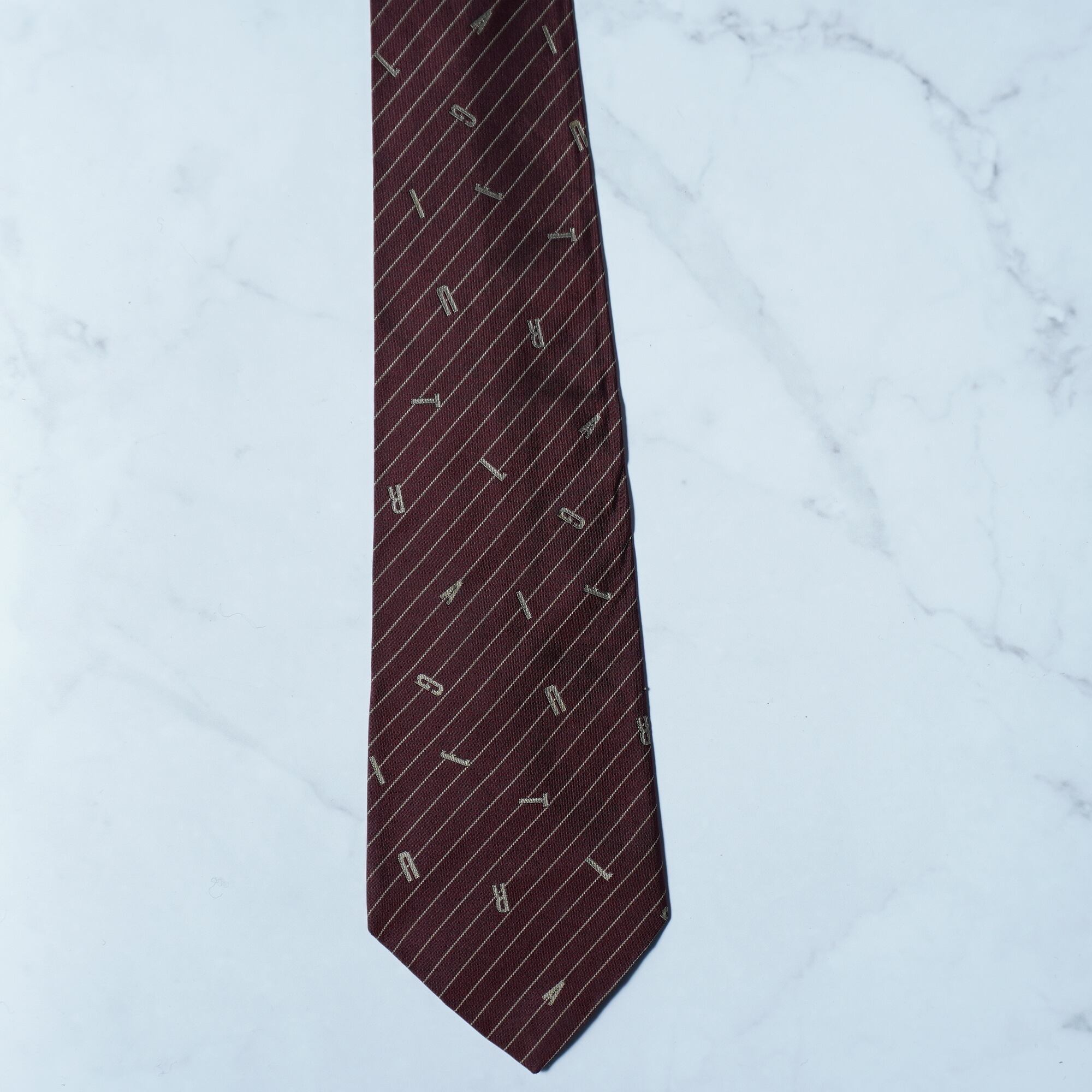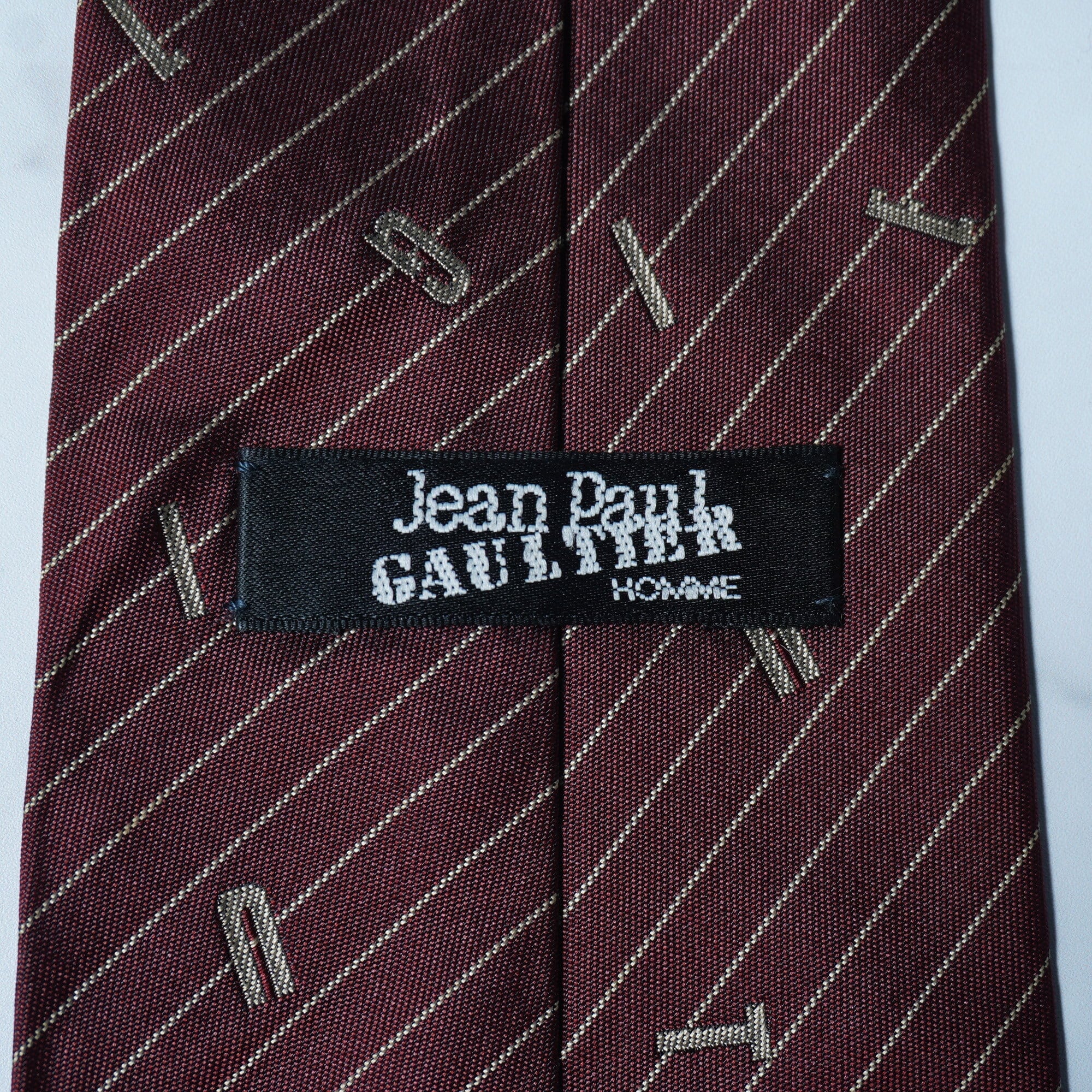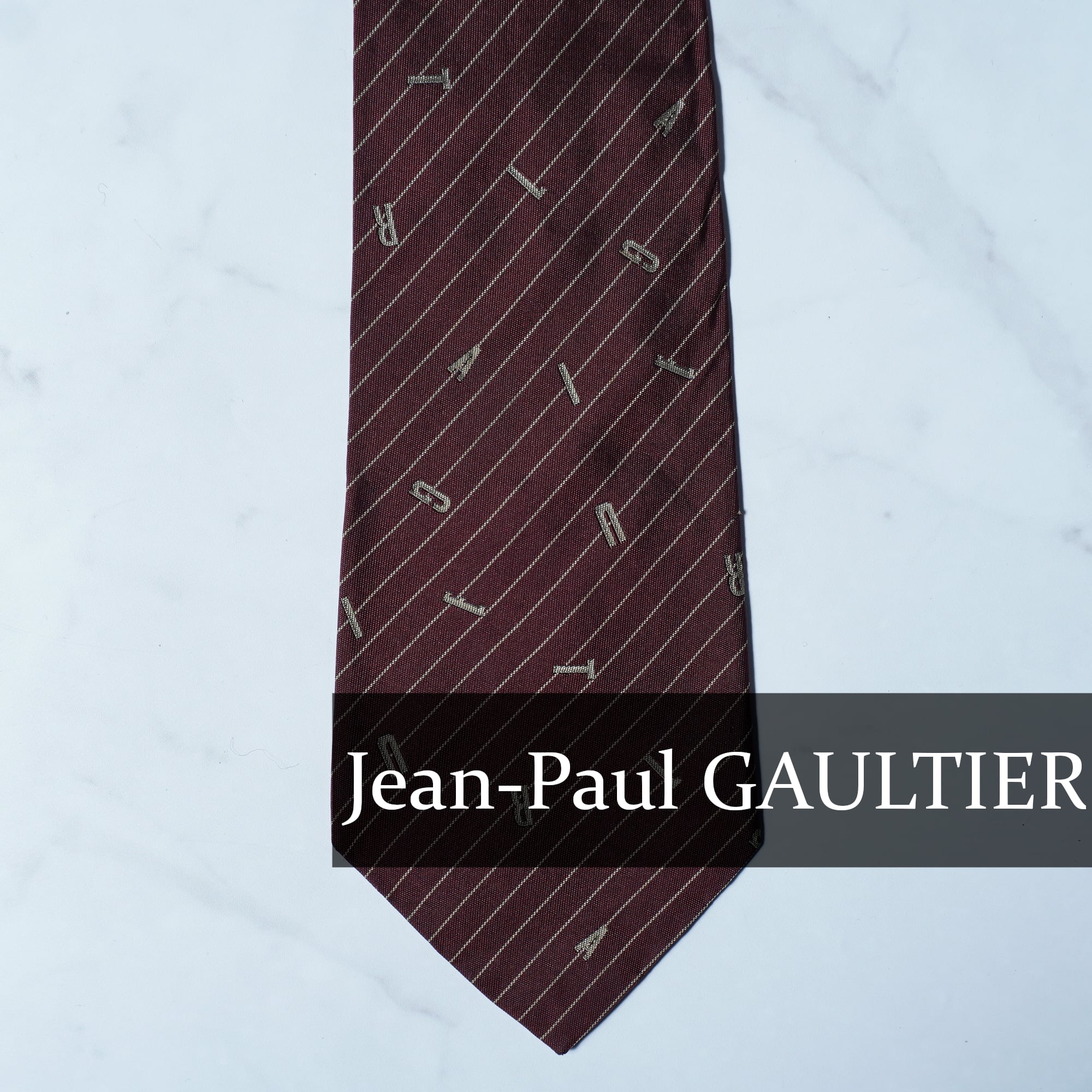 【Jean Paul GAULTIER】ジャンポールゴルチエ "SILK100%" ロゴアルファベットレジメンタル&ドット柄ネクタイ burgundy