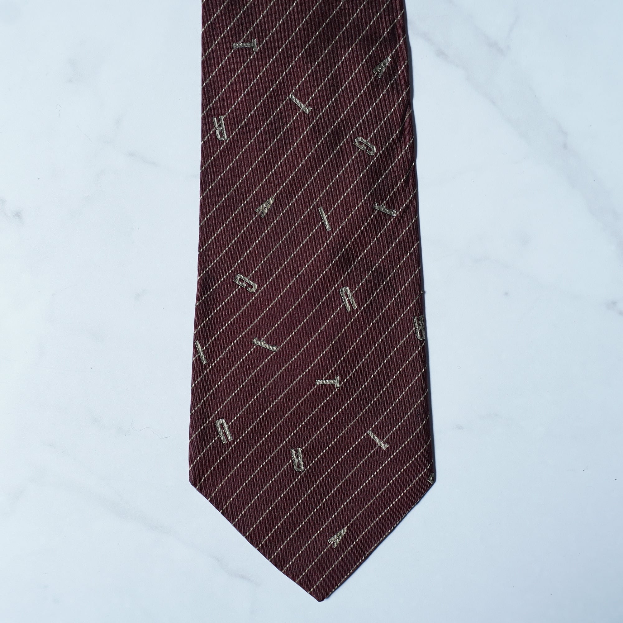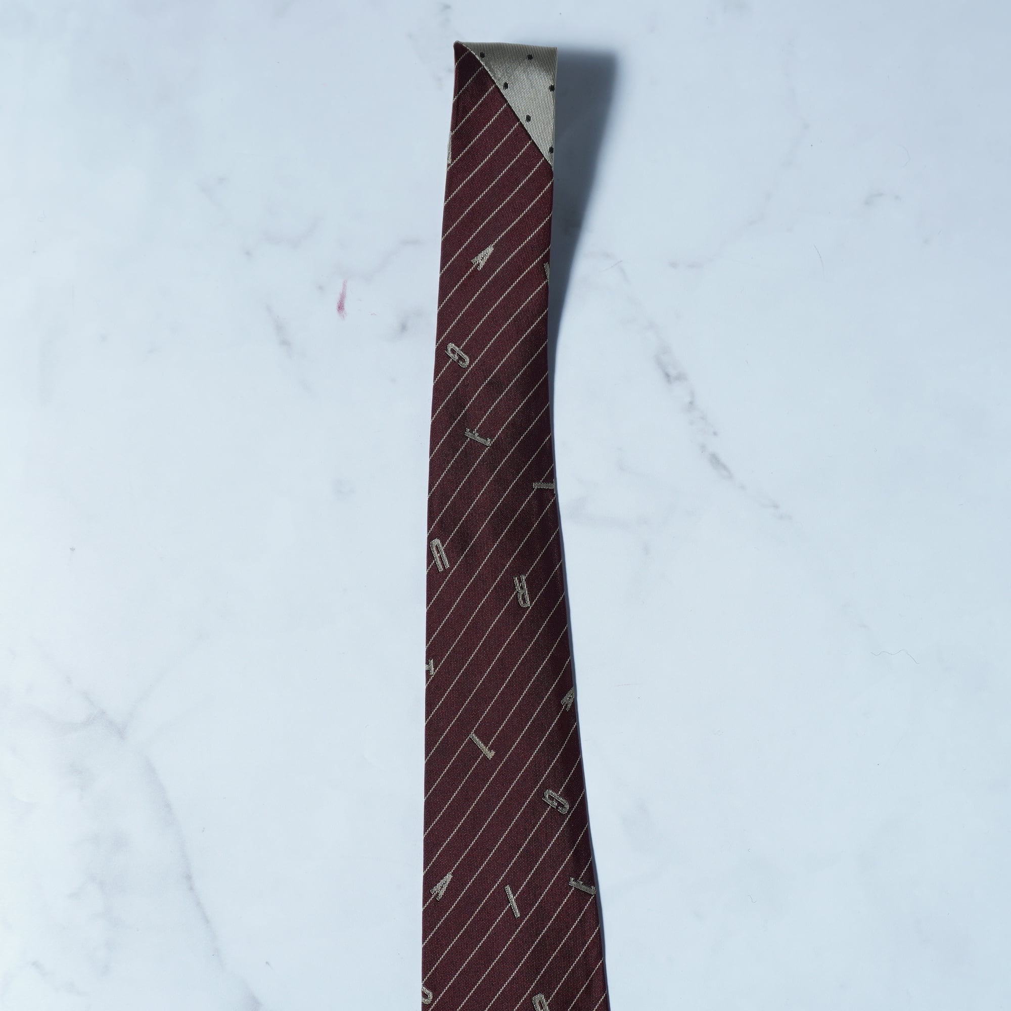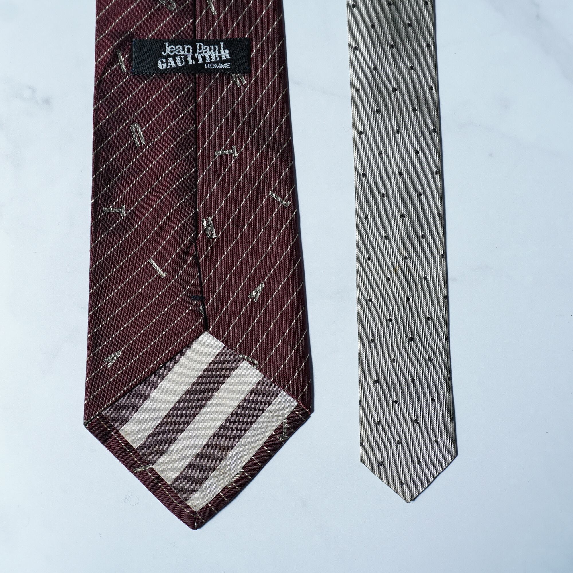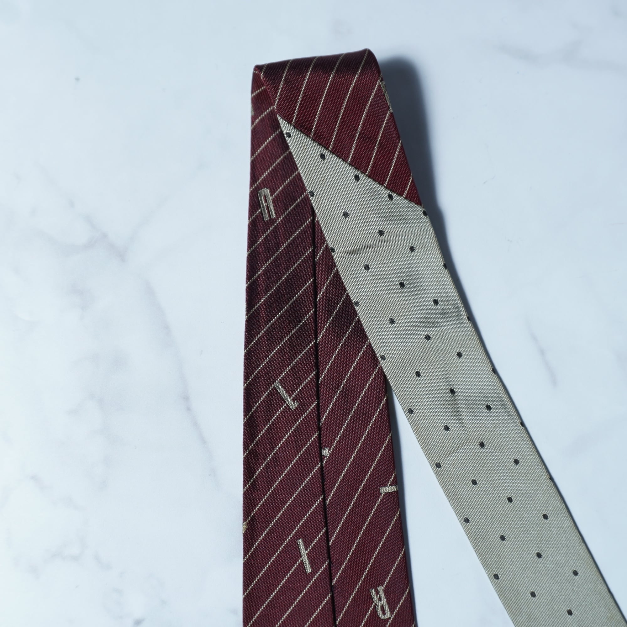 【Jean Paul GAULTIER】ジャンポールゴルチエ "SILK100%" ロゴアルファベットレジメンタル&ドット柄ネクタイ burgundy