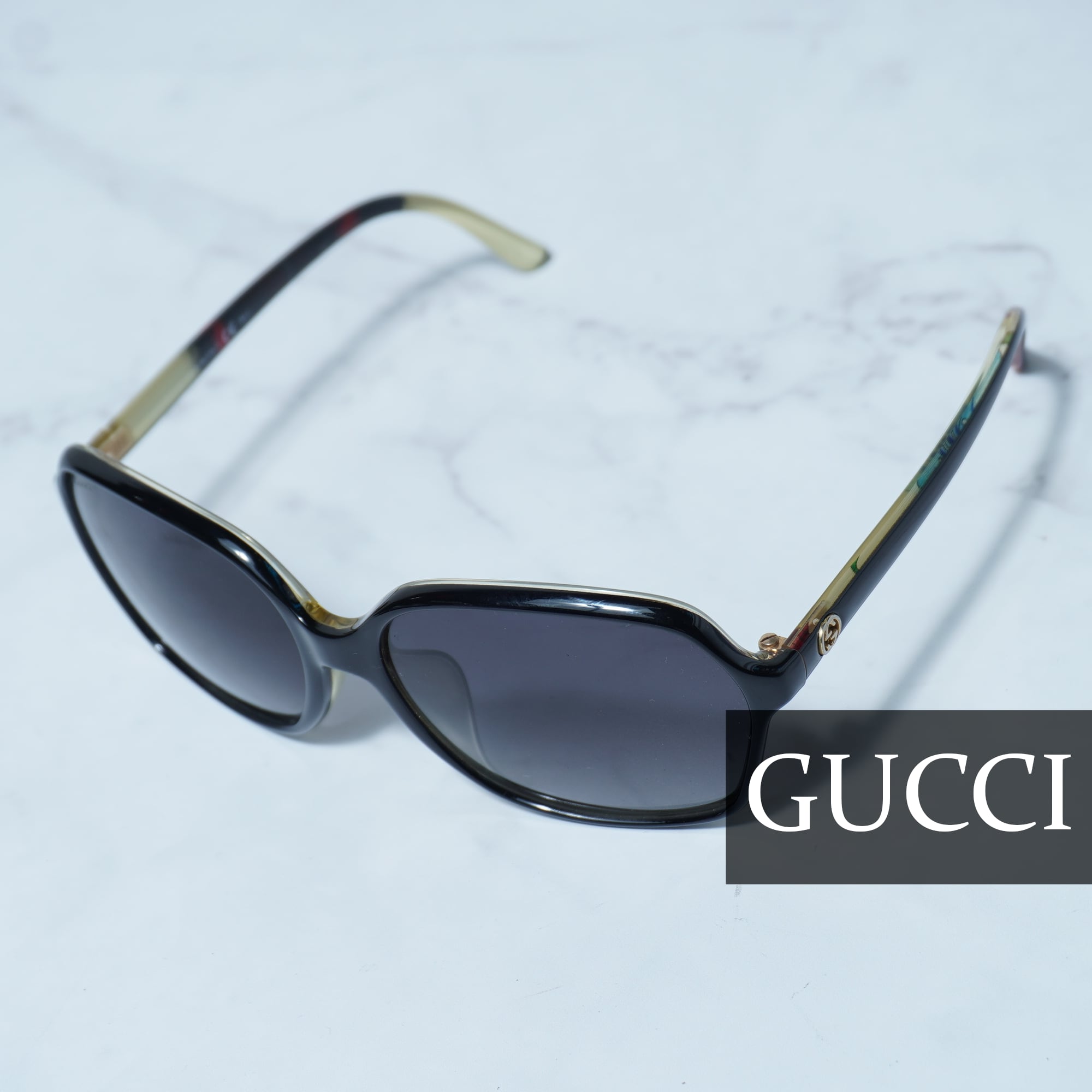 【GUCCI】インターロッキンGロゴ スクエアフレームサングラス black