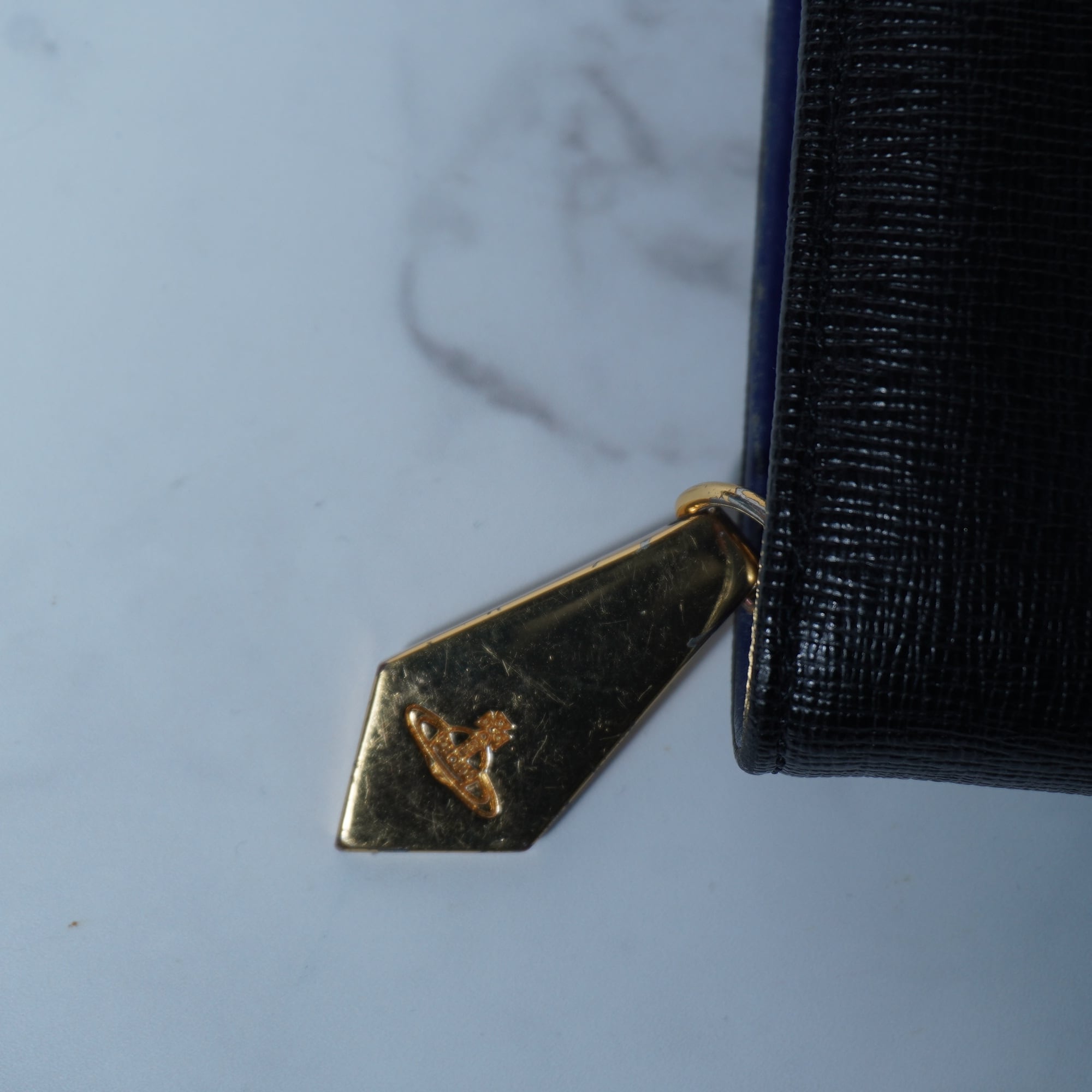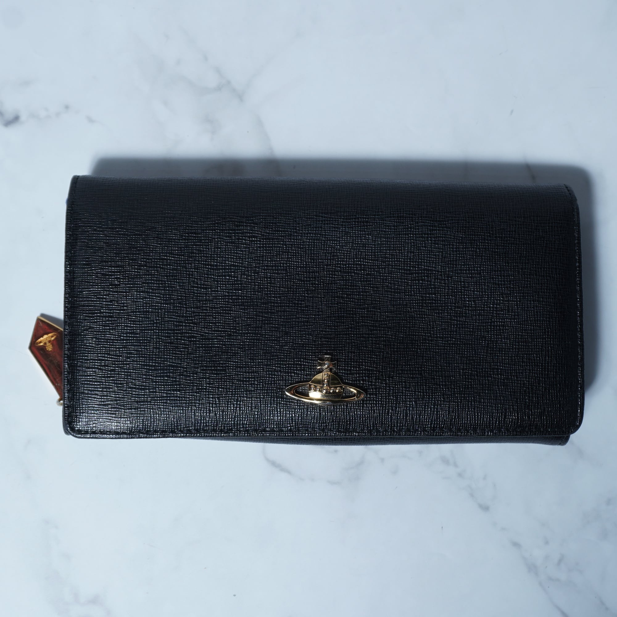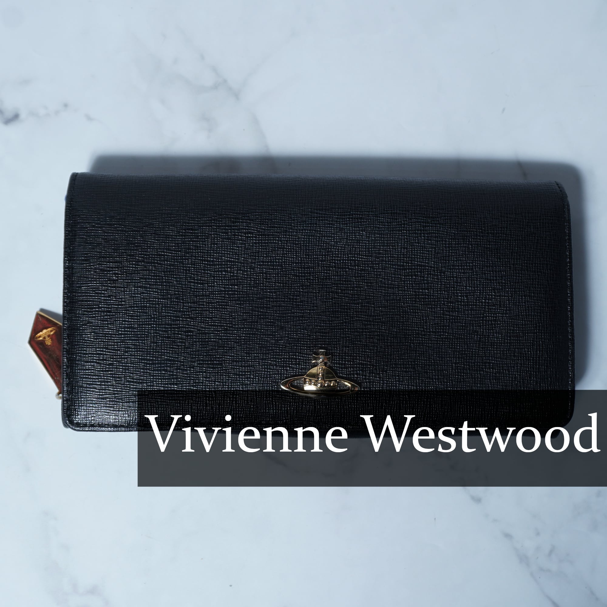 【Vivienne Westwood】ヴィヴィアンウエストウッド オーブロゴ 加工レザーハイカラーロングウォレット black