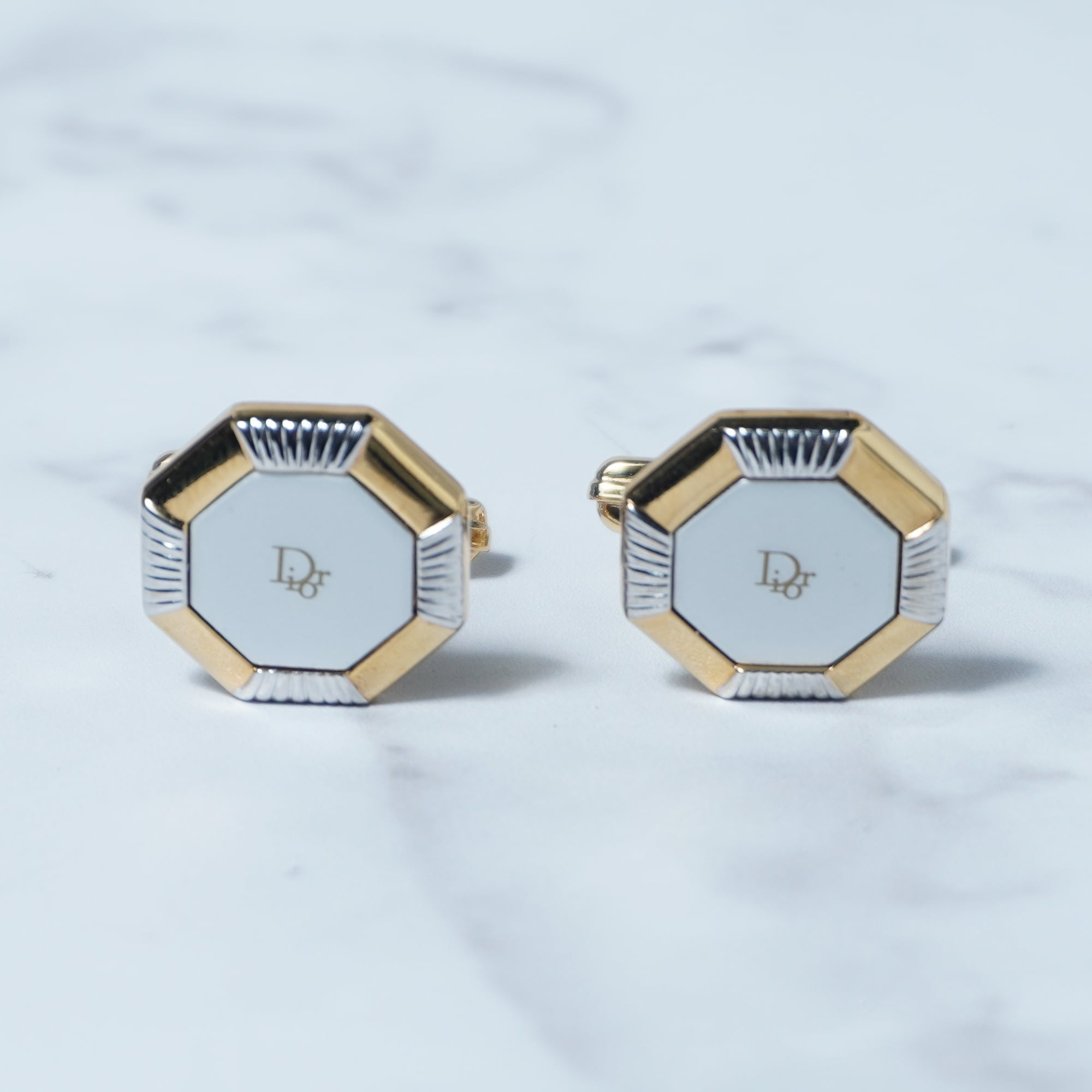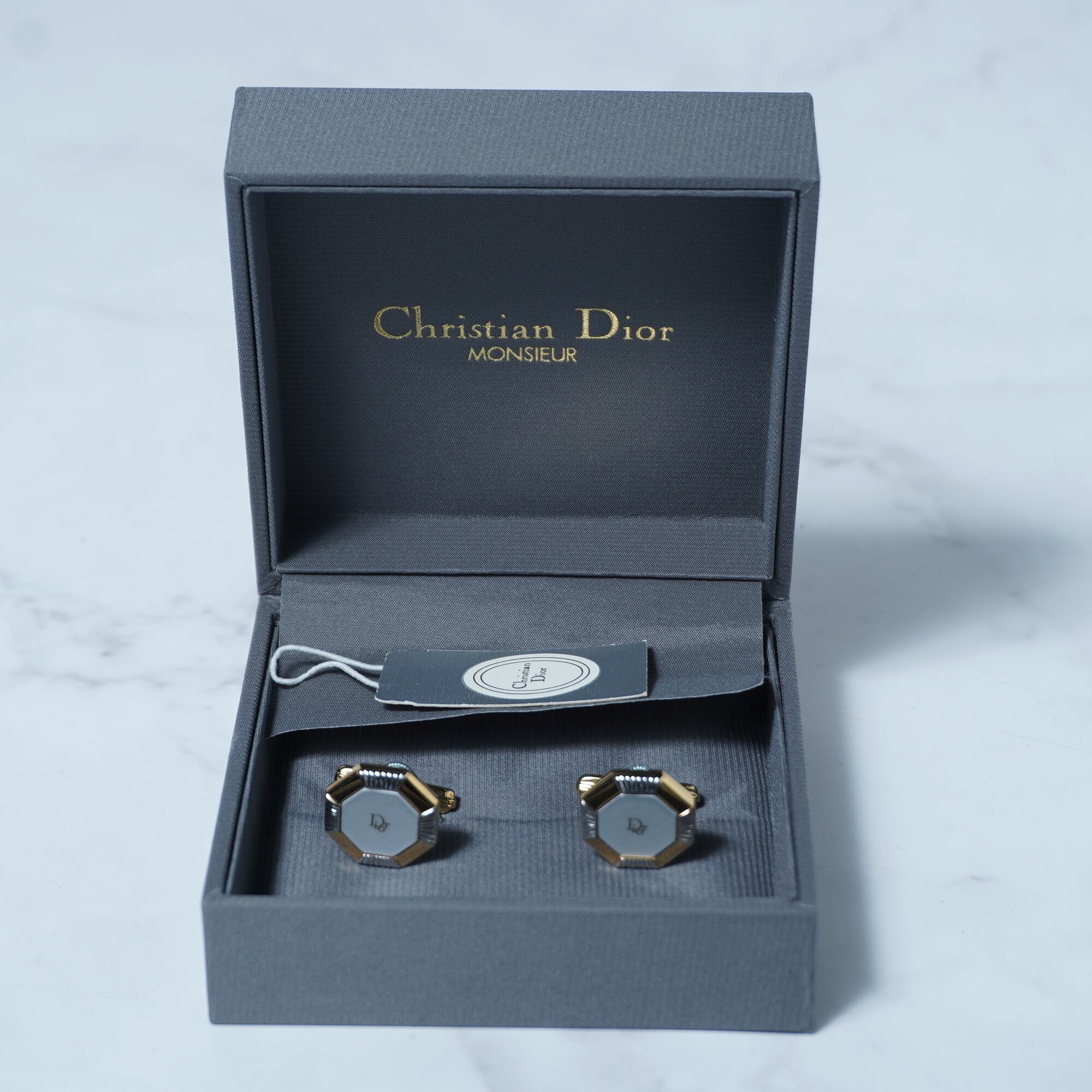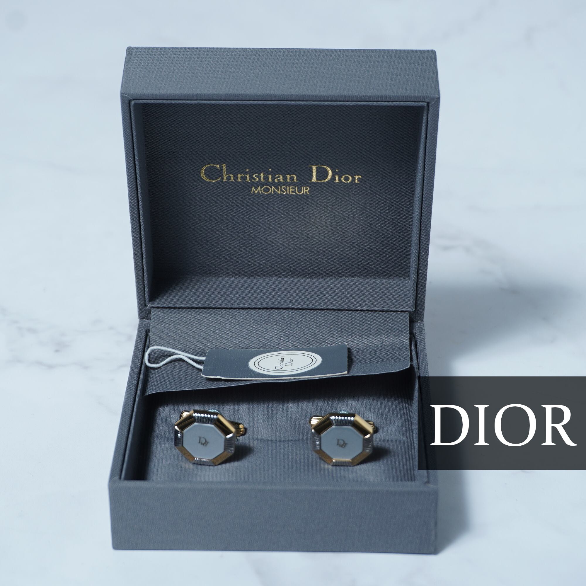 【Christian Dior】クリスチャンディオール ”トロッターロゴ” カフスピン gold&silver 箱付