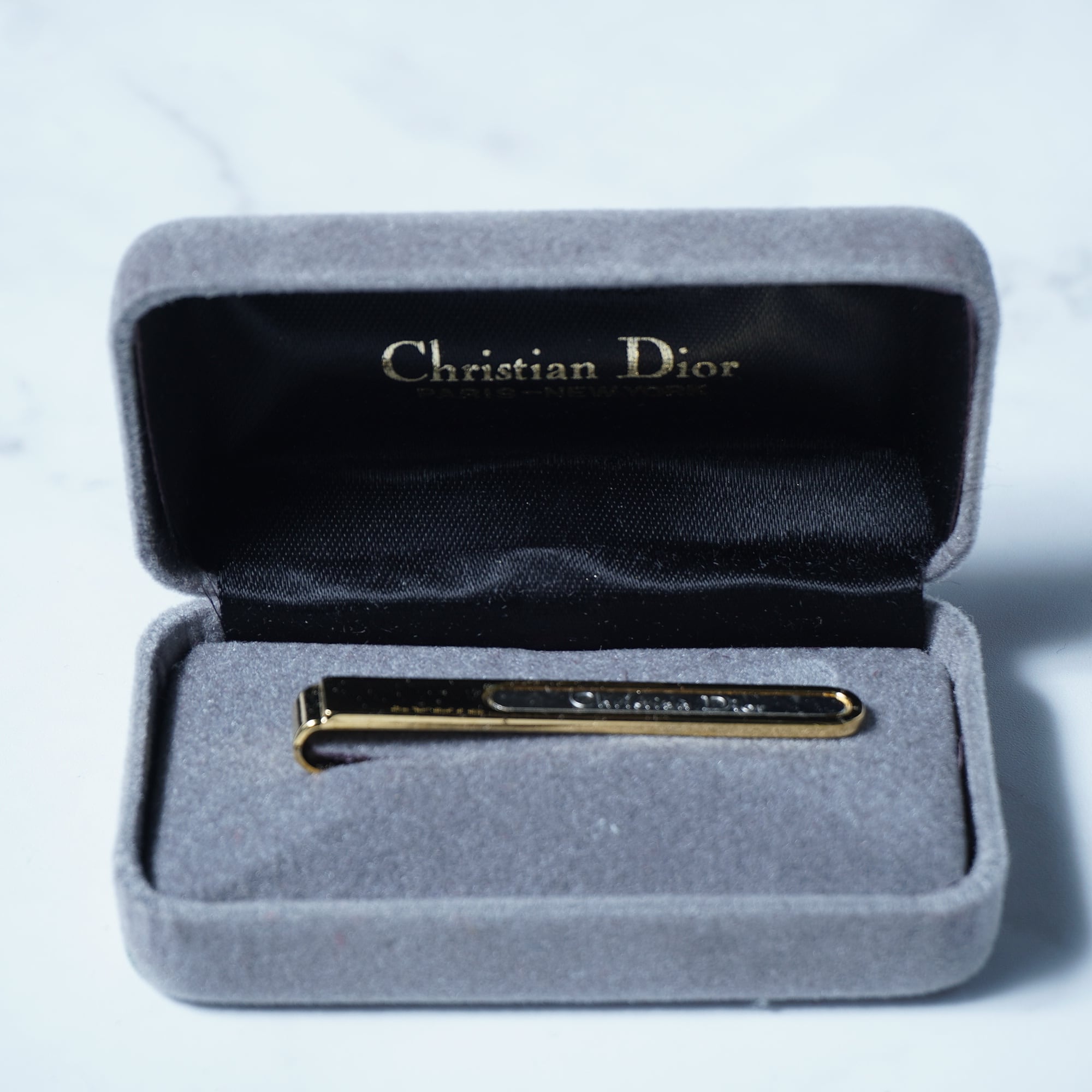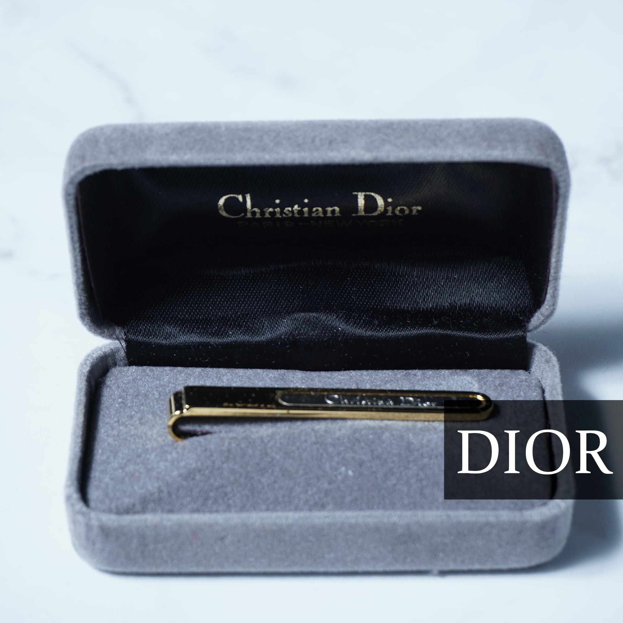 【Christian Dior】クリスチャンディオール ”ロゴ入” ネクタイピン 箱付 silver&gold