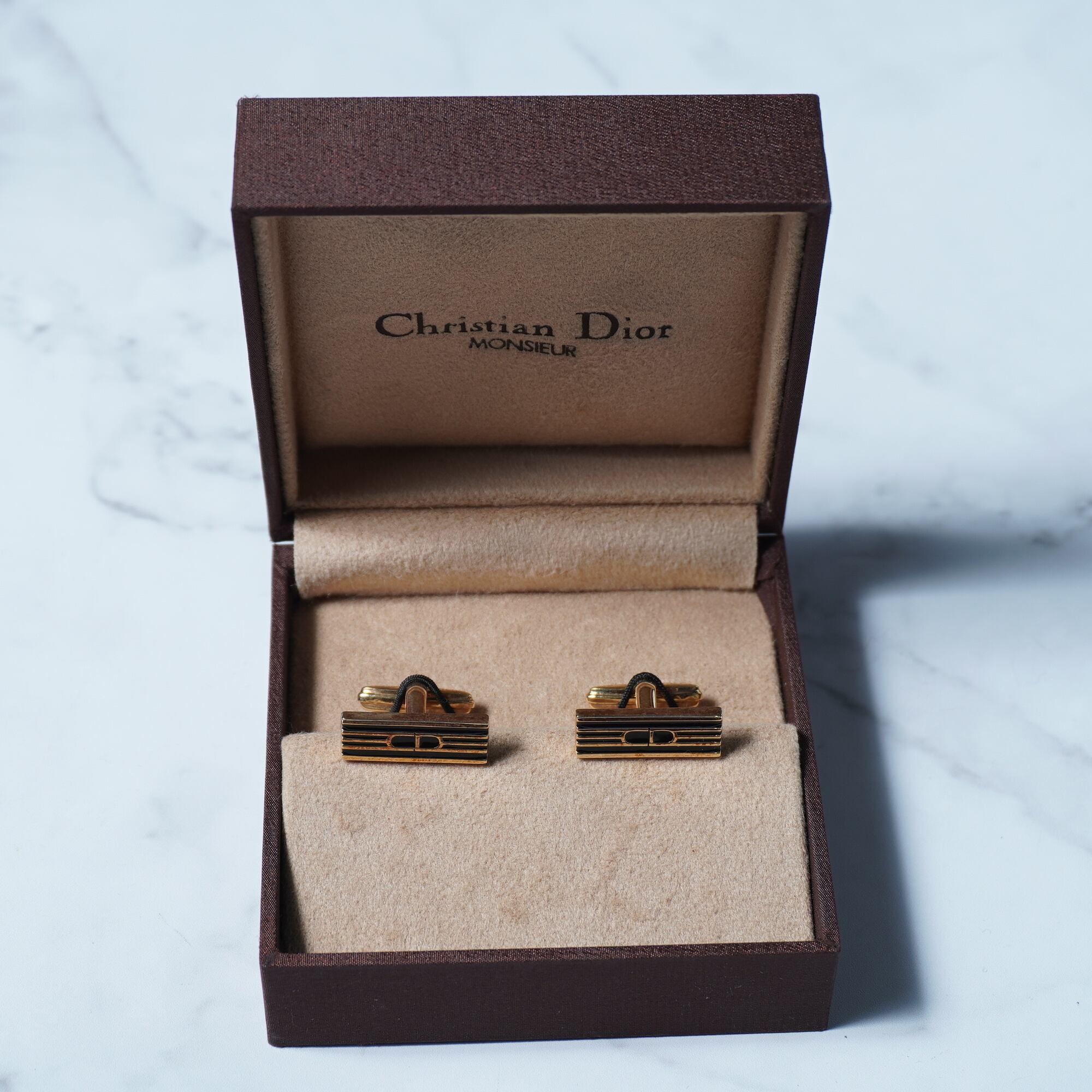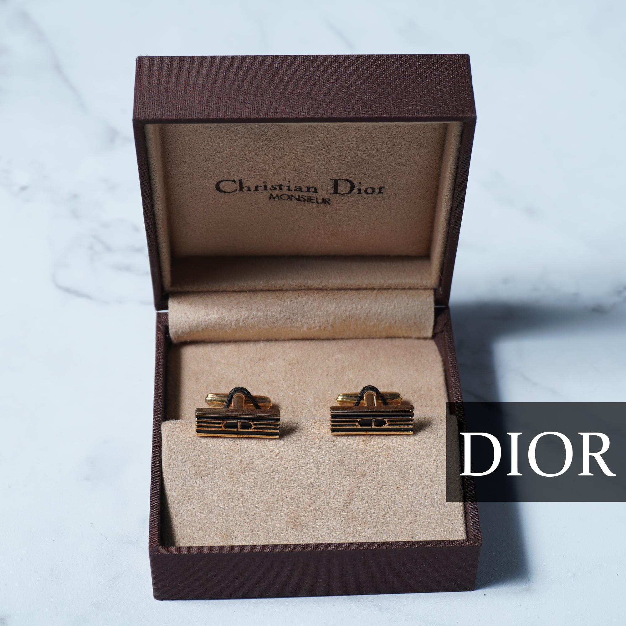 【Christian Dior】クリスチャンディオール "CDロゴ" カフスボタン 箱付 gold&black